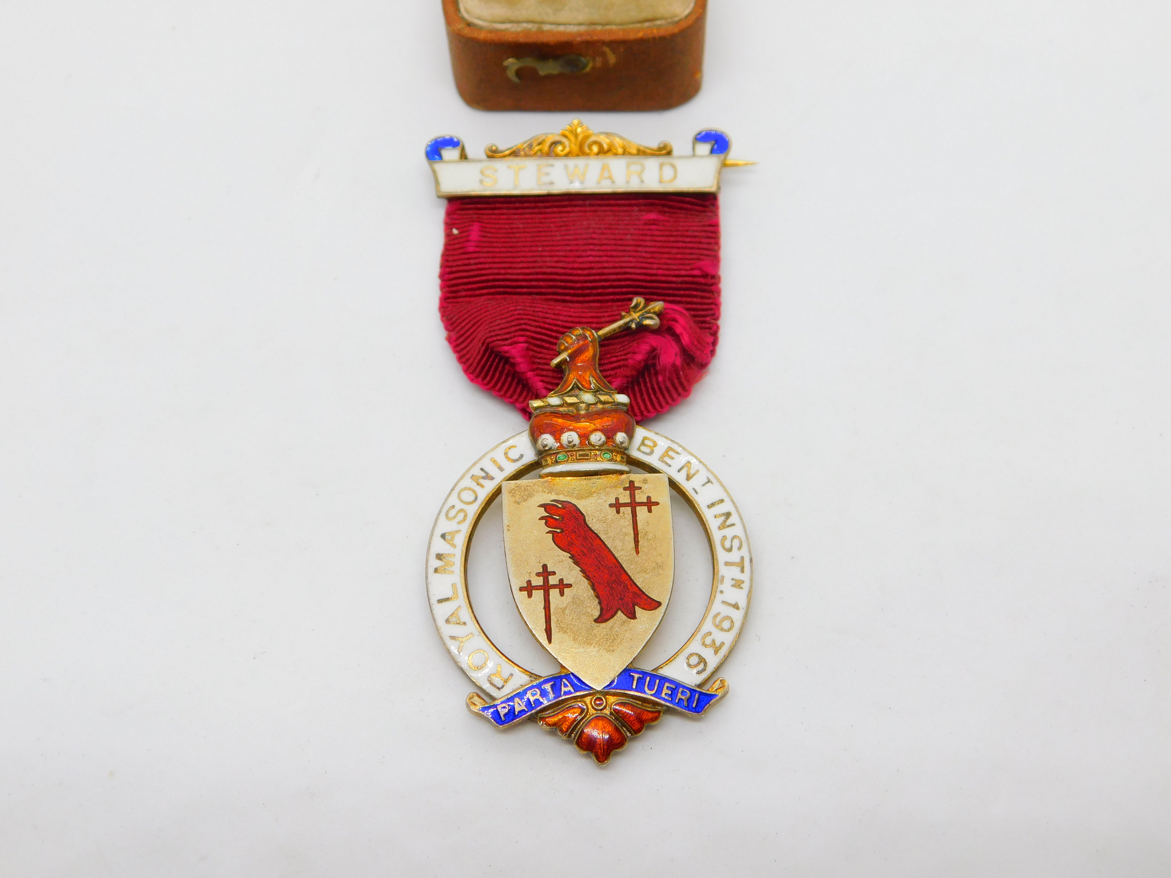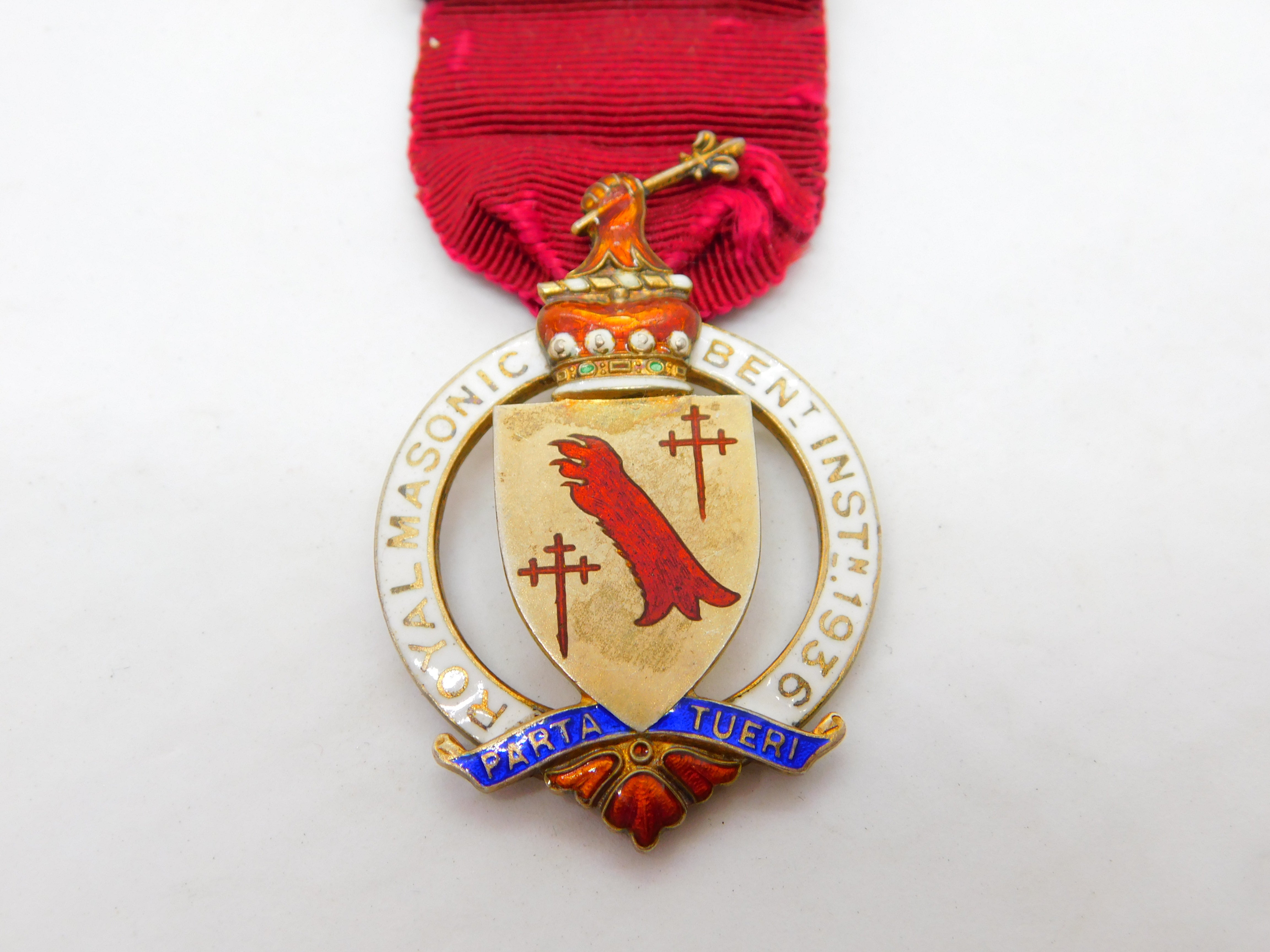 Details: A fantastic and wonderfully designed antique art deco sterling silver gilt & colourful enamel Masonic jewel steward medal for the Royal Masonic Benevolent Institute hallmarked London 1936 to the reverse with original ribbon and perfect enamel. This is a wonderful item that would make a perfect gift or addition to any collection. The BOX pictured is for PRESENTATION ONLY and is NOT included in the listings but used to frame the pictures unless specifically stated otherwise.