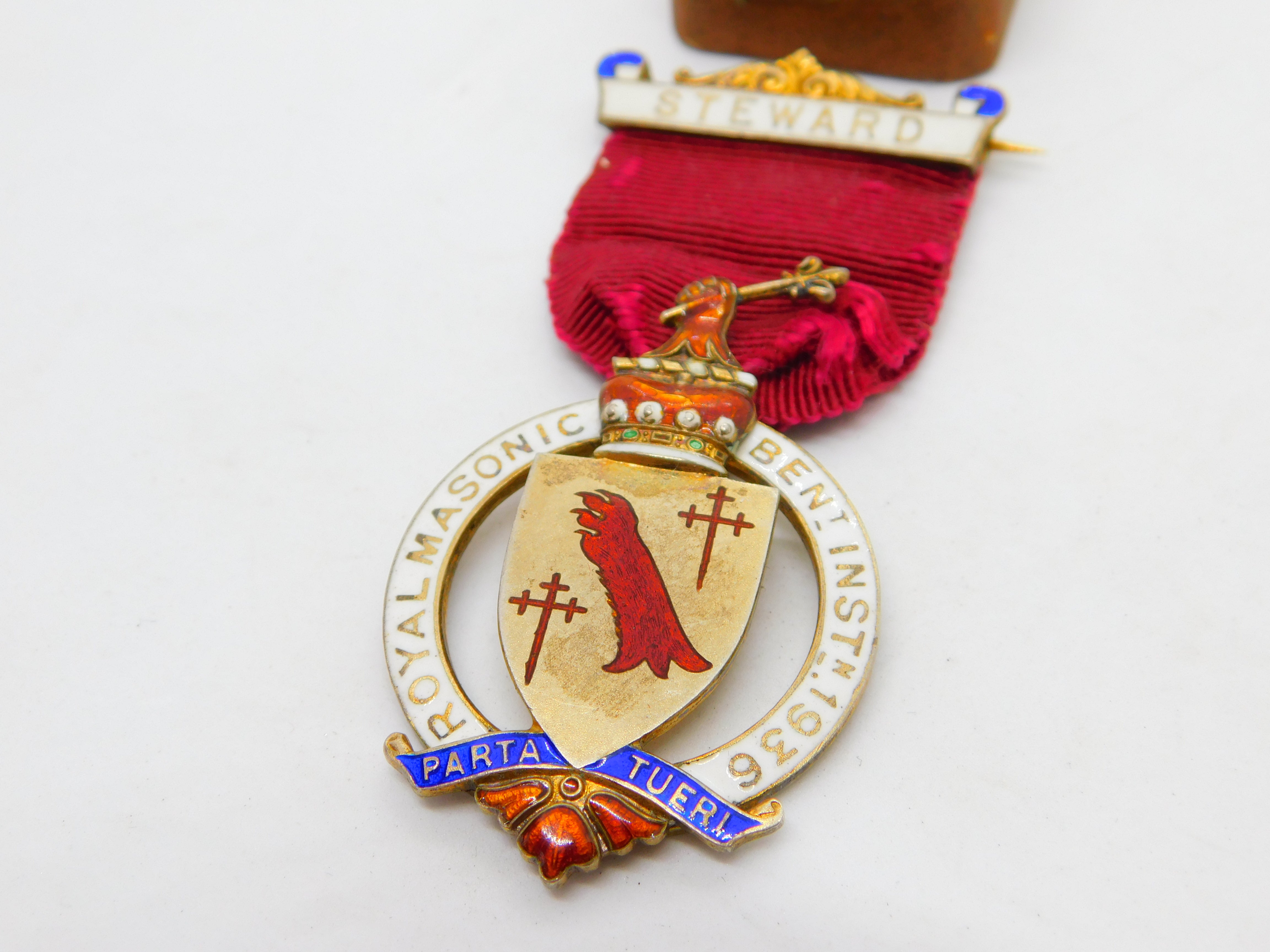 Sterling Silver Gilt Enamel Masonic Jewel Steward Medal 1936 Antique London