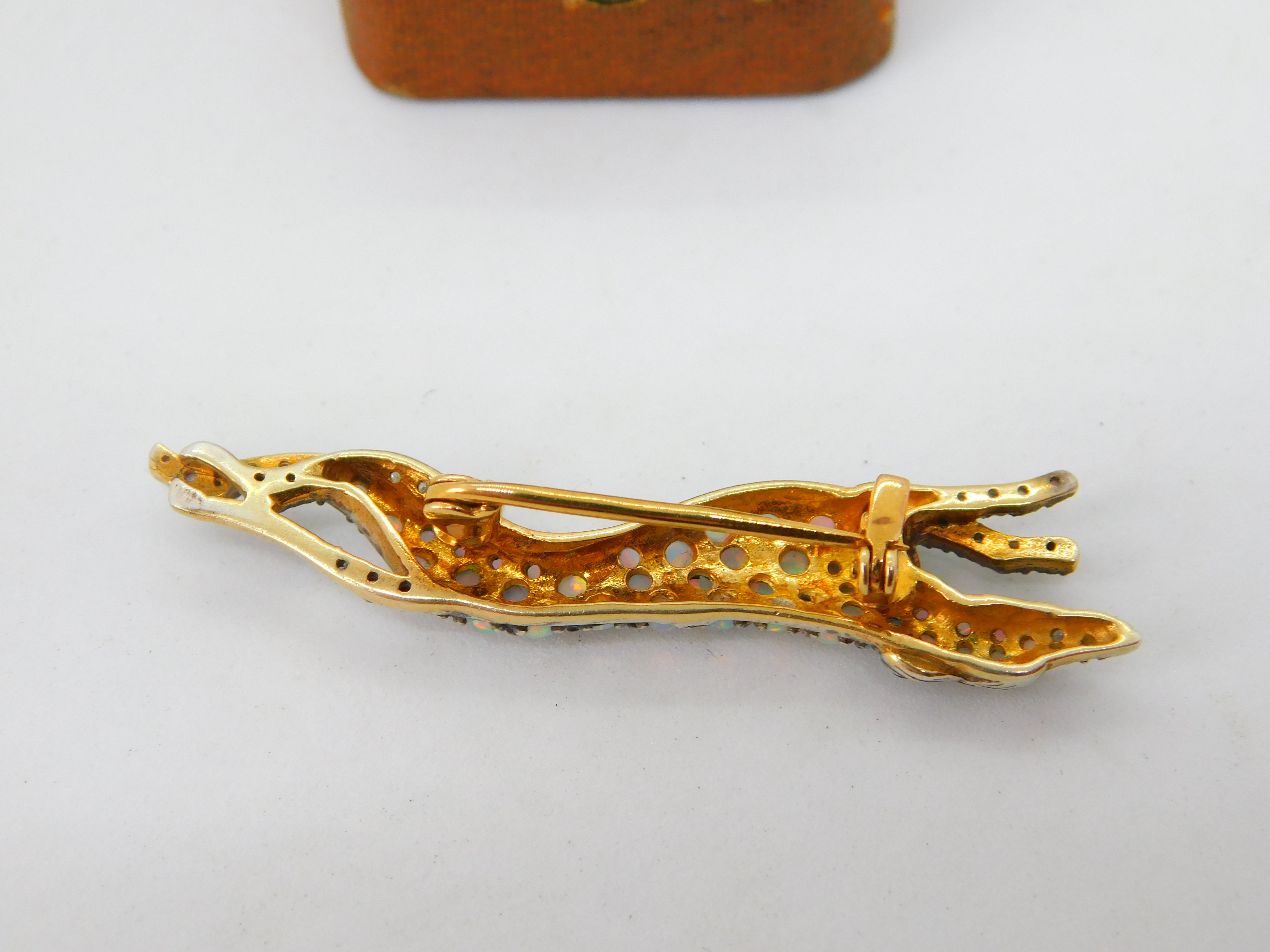 Sterling Silver Gilt Pave Set Opal & Diamond Running Greyhound Brooch Antique