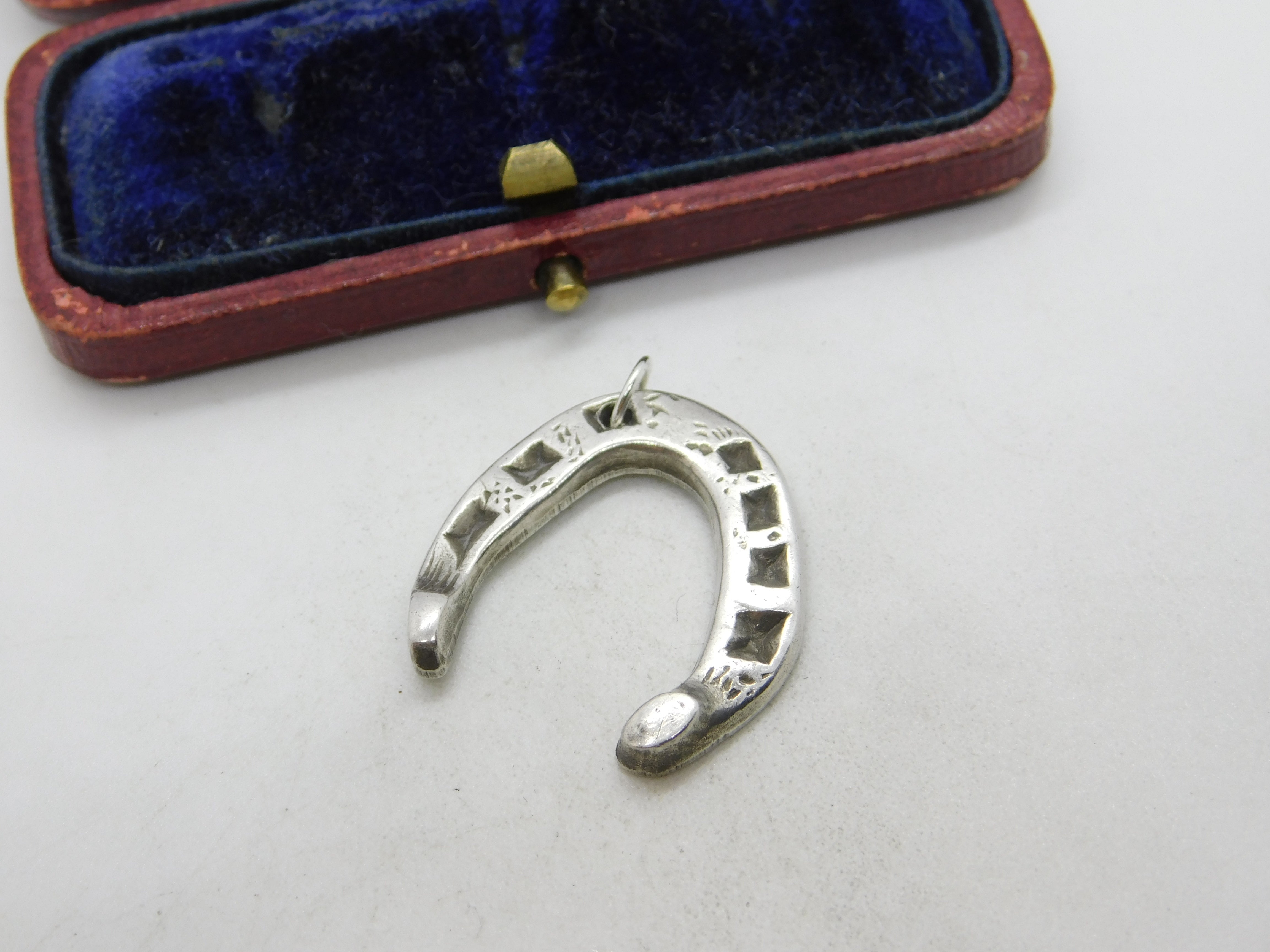 Sterling Silver Good Luck Horseshoe Fob Pendant 1932 Birmingham Antique