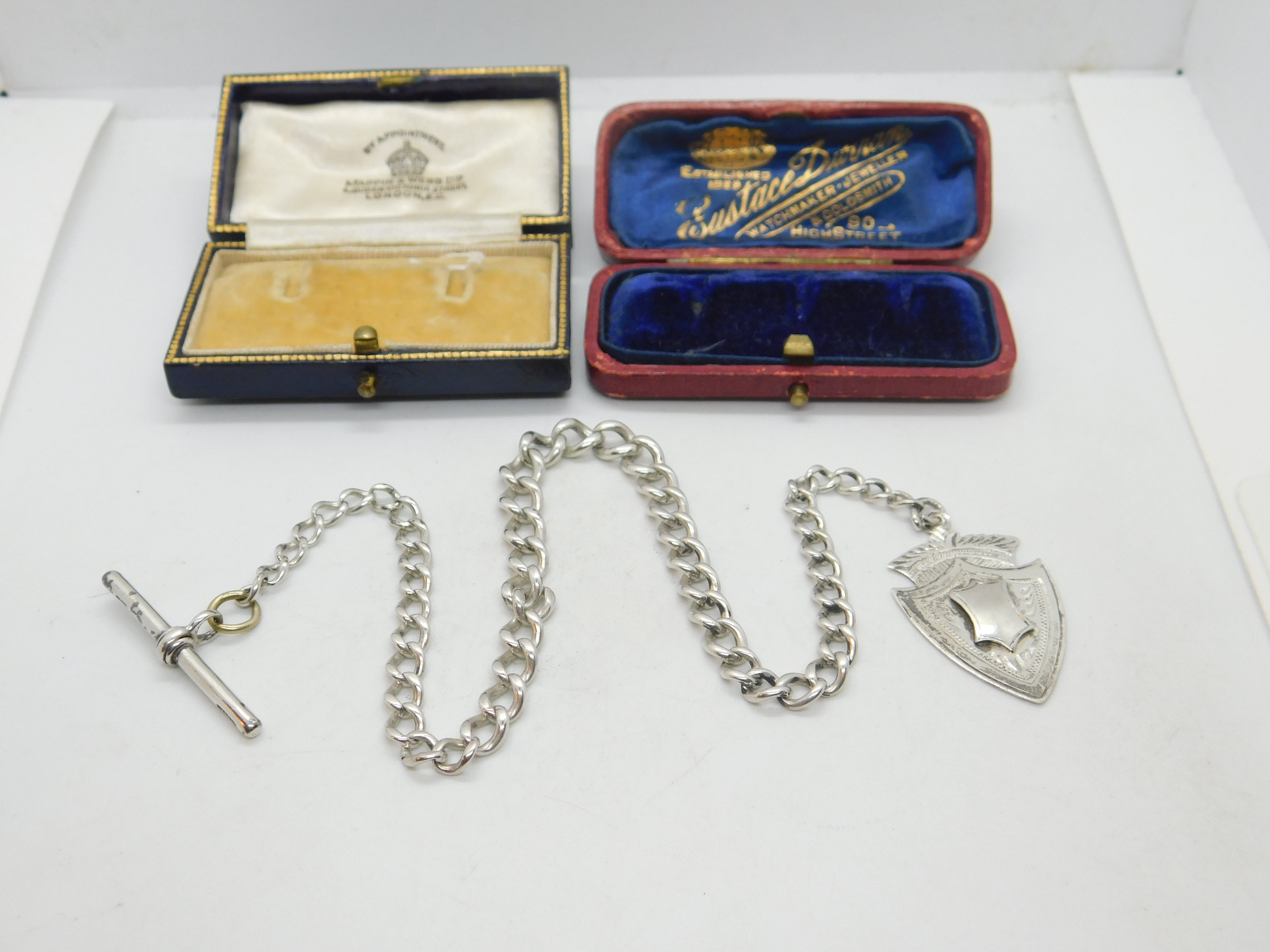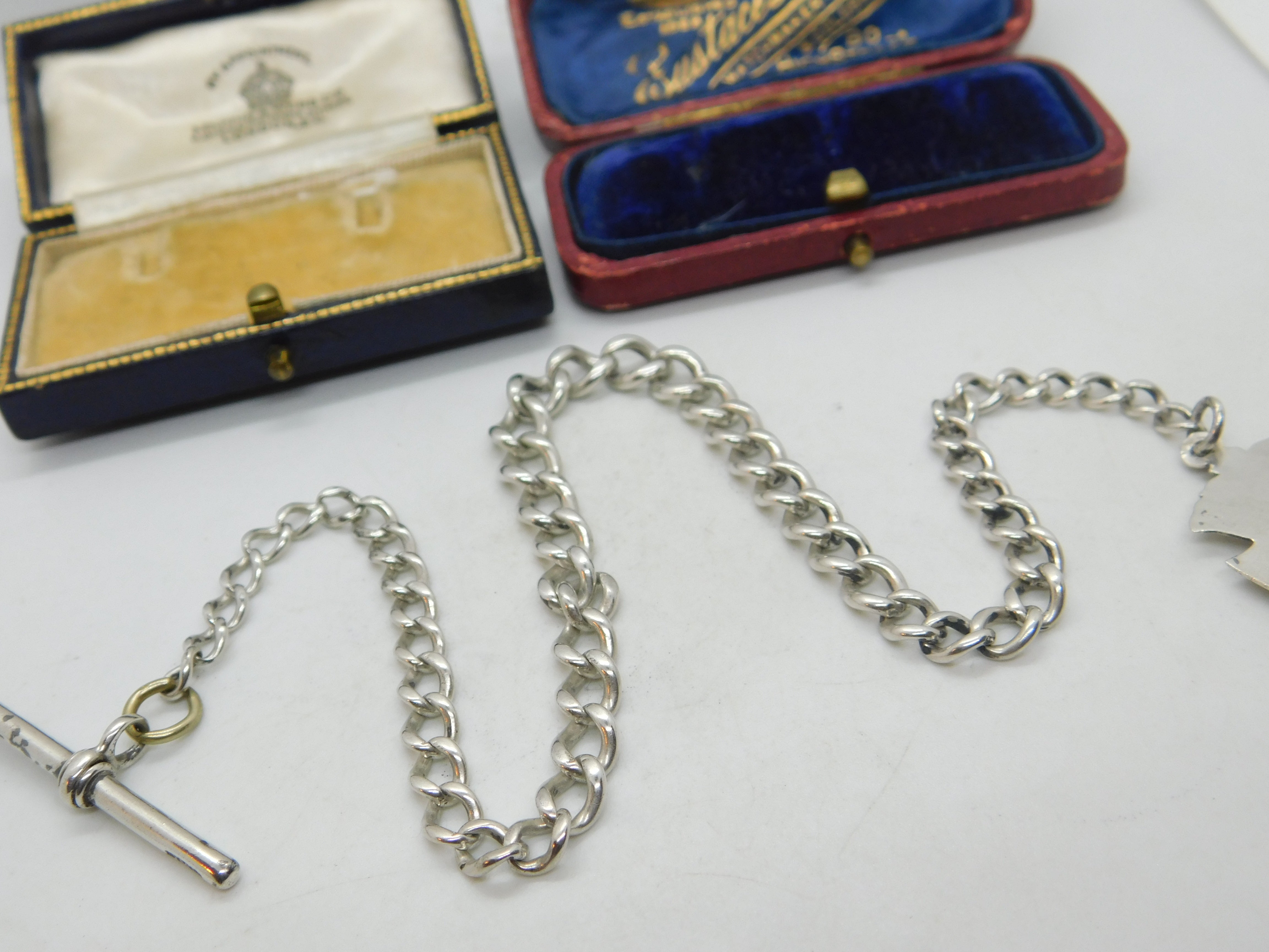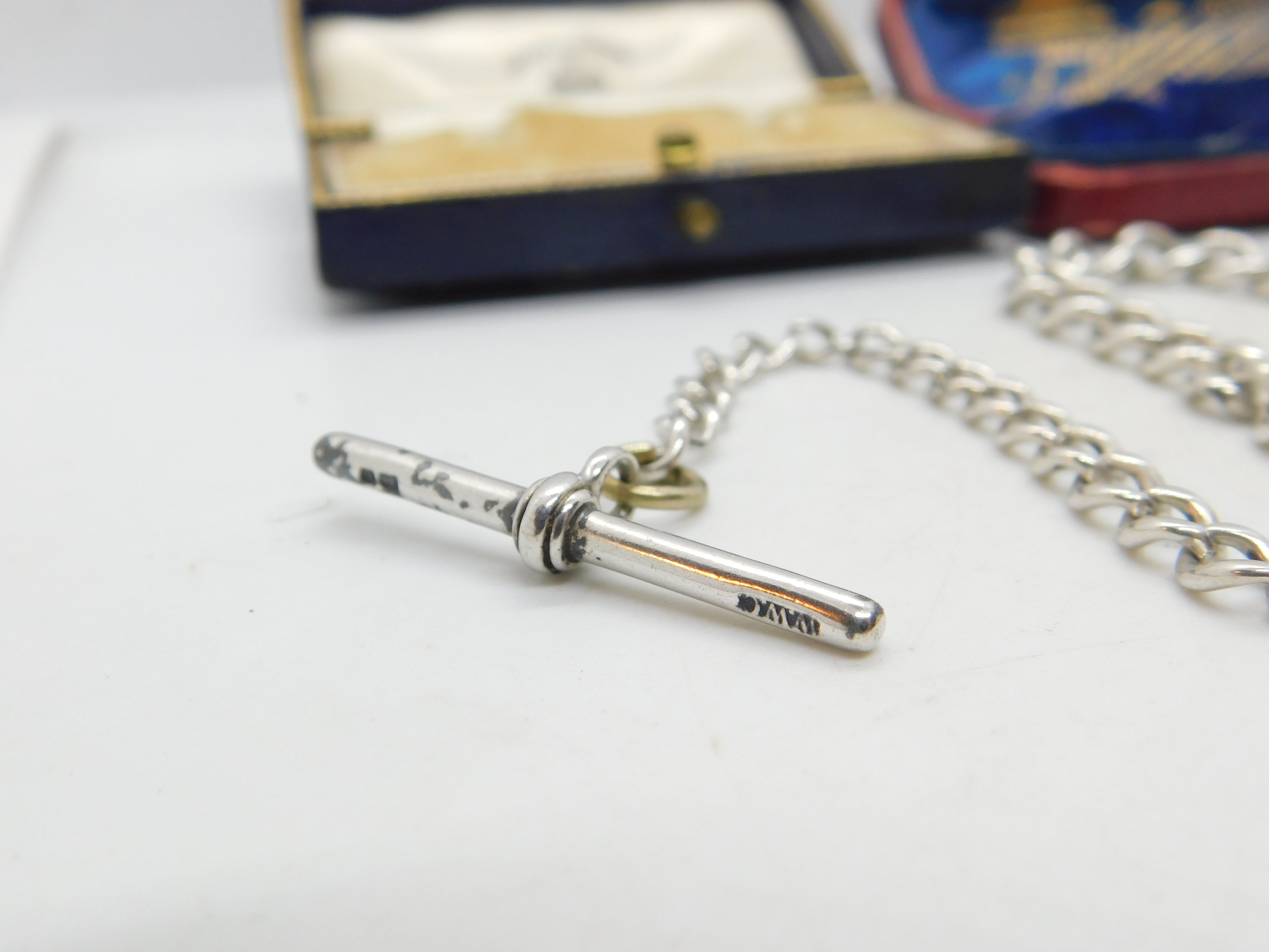 Details: A fantastic and well designed antique Victorian sterling silver graduating Albert watch chain with fob and t-bar hallmarked Birmingham 1897 to the t-bar with a later fob attached hallmarked Birmingham 1930.This is a wonderful item that would make a perfect gift or addition to any collection. The BOX pictured is for PRESENTATION ONLY and is NOT included in the listings but used to frame the pictures unless specifically stated otherwise.