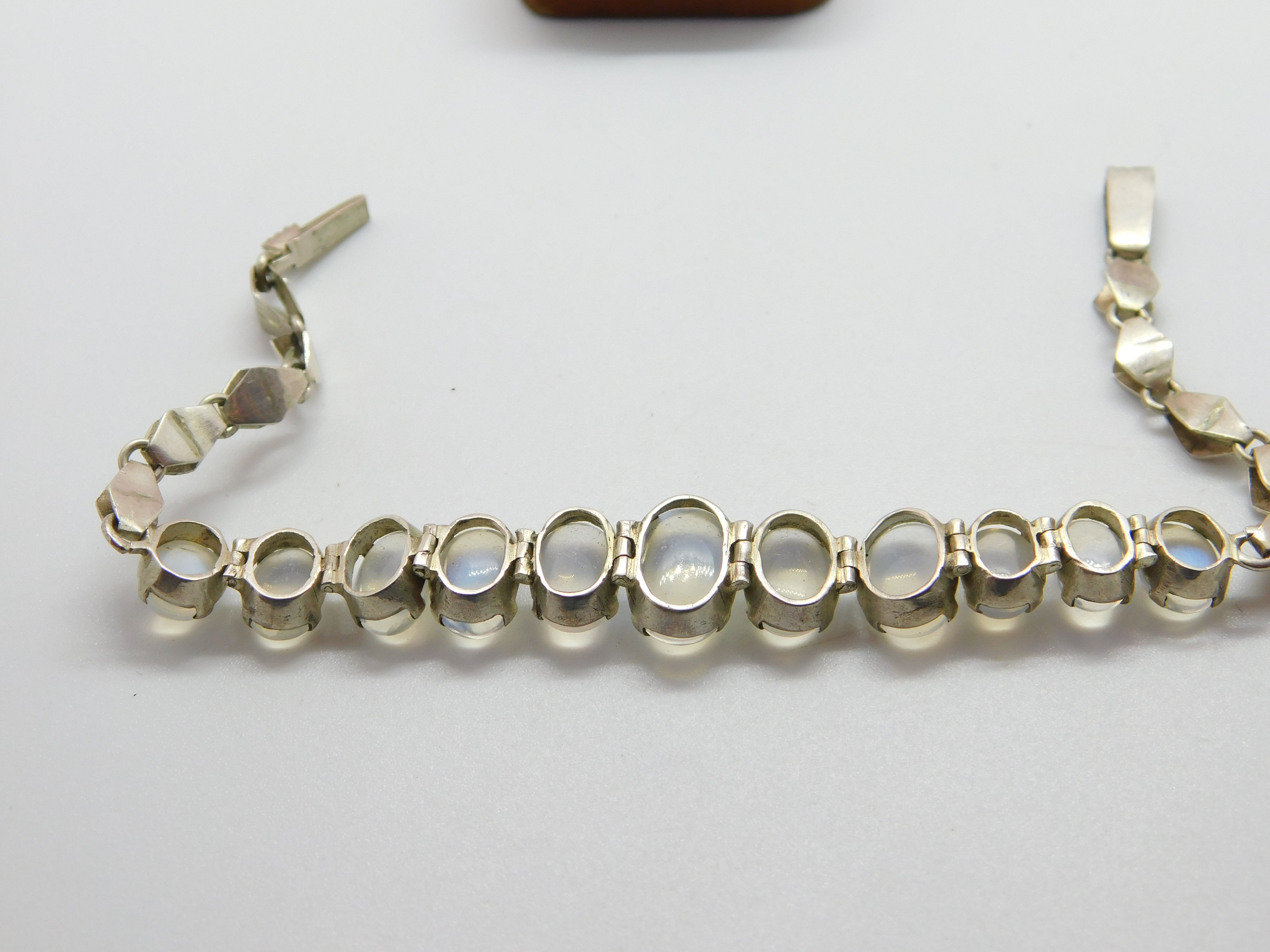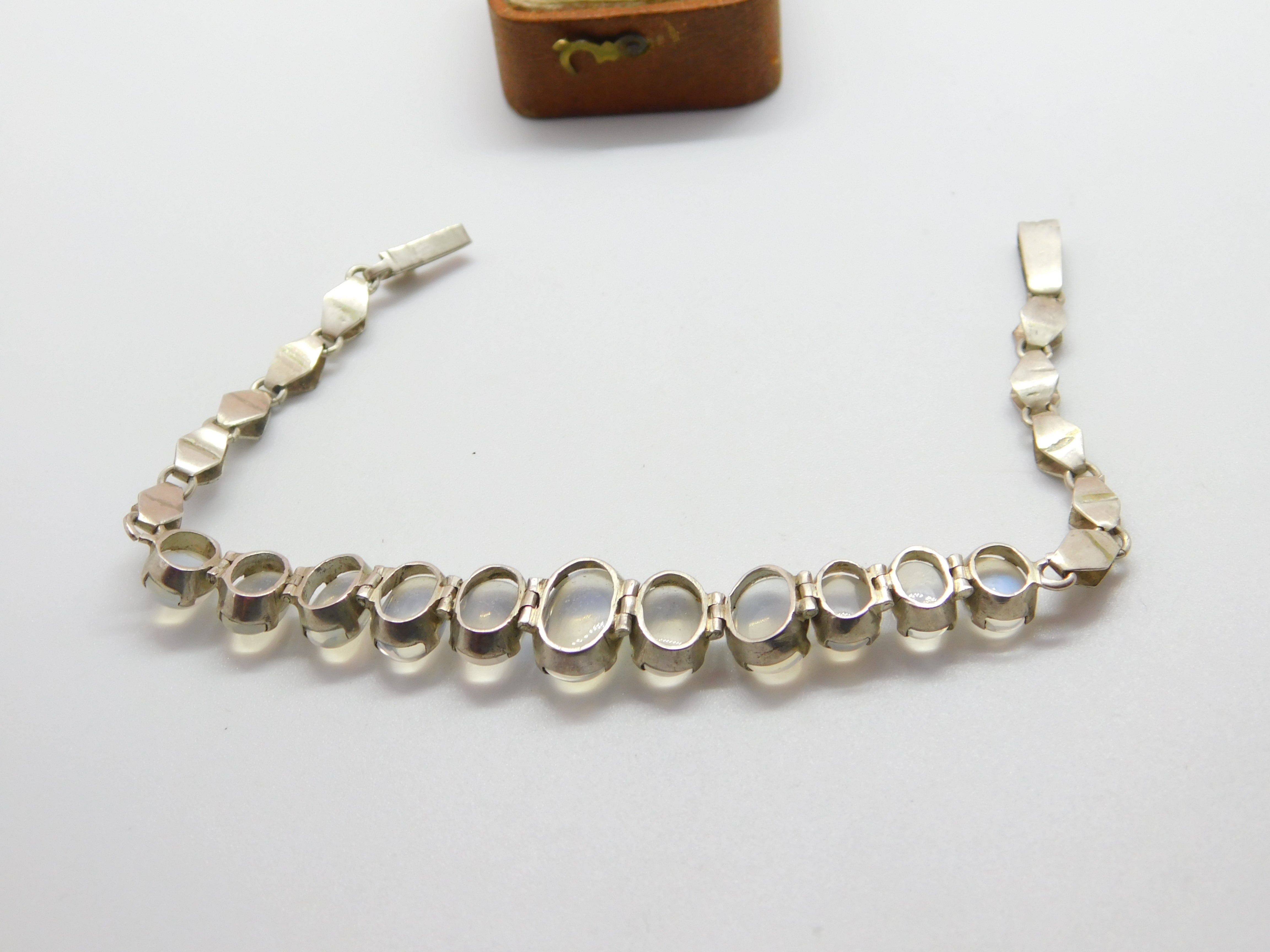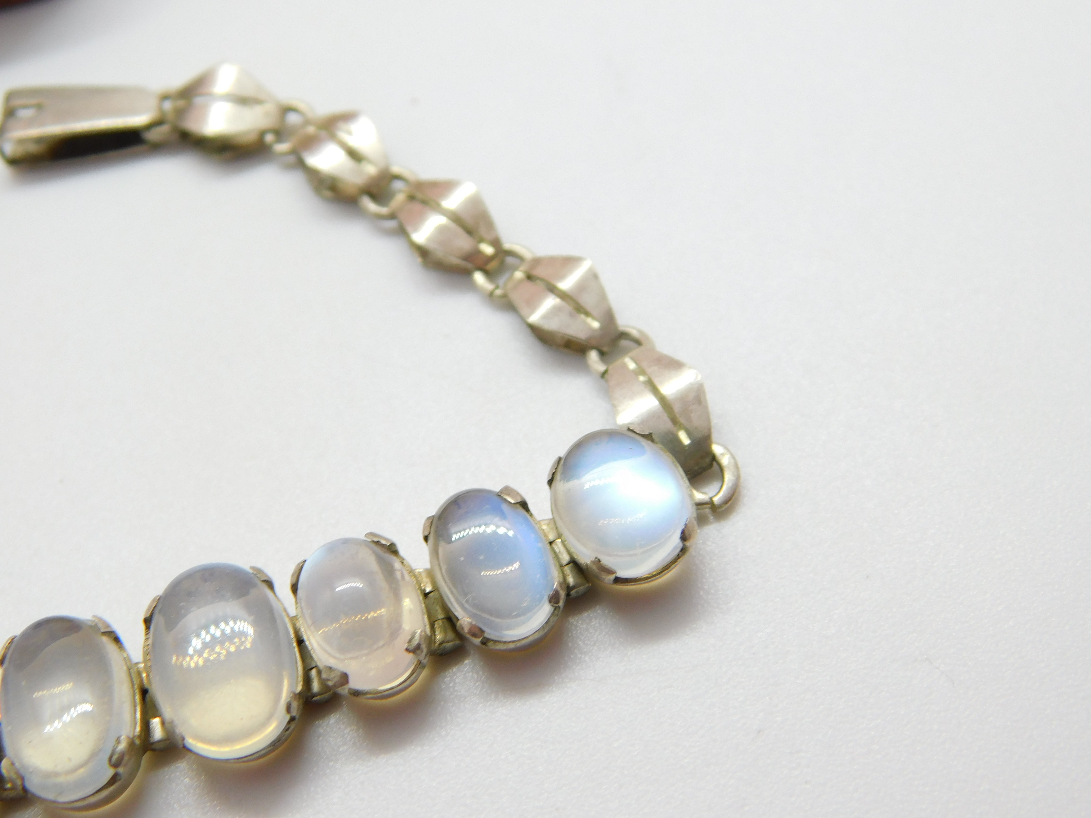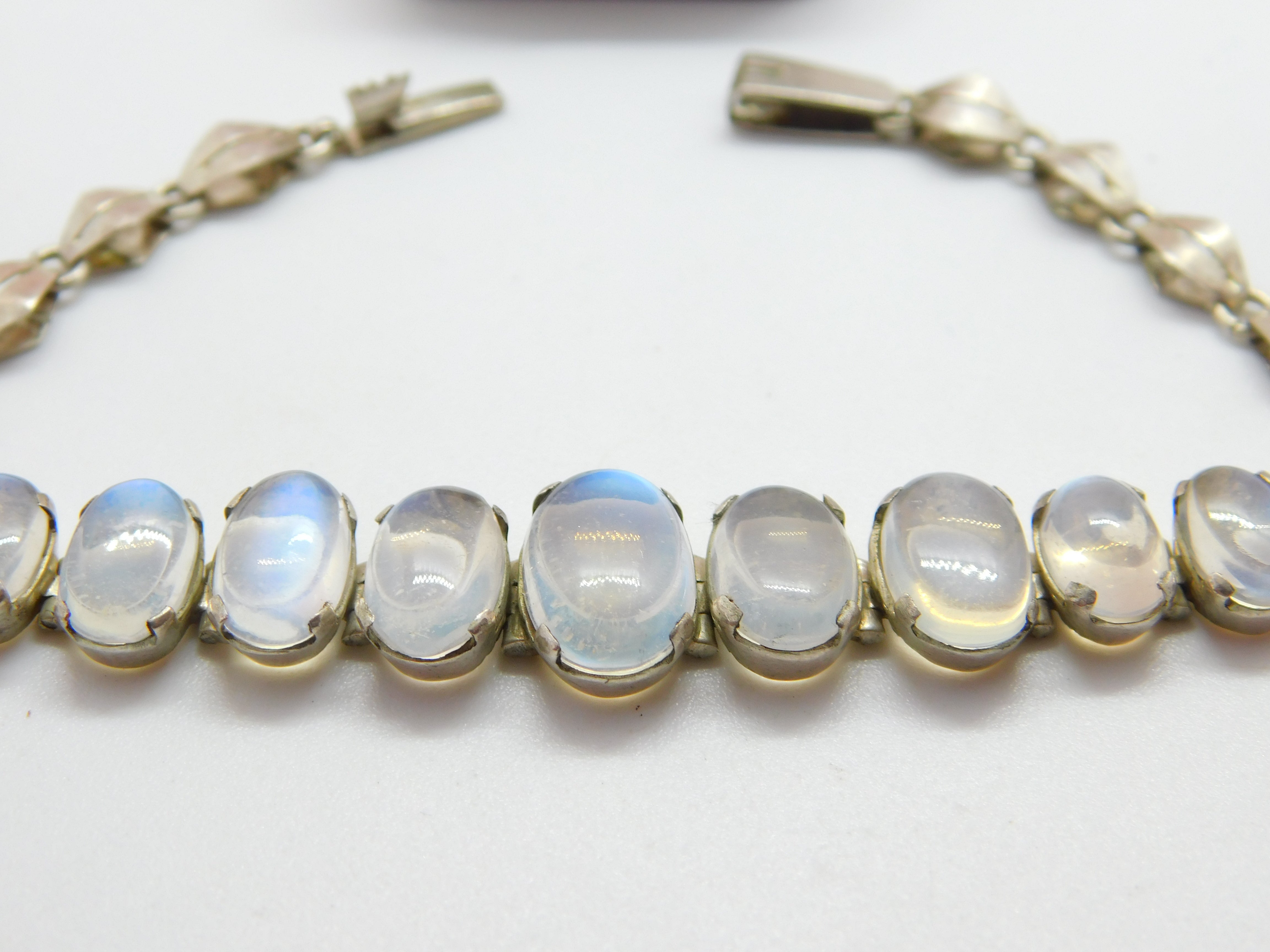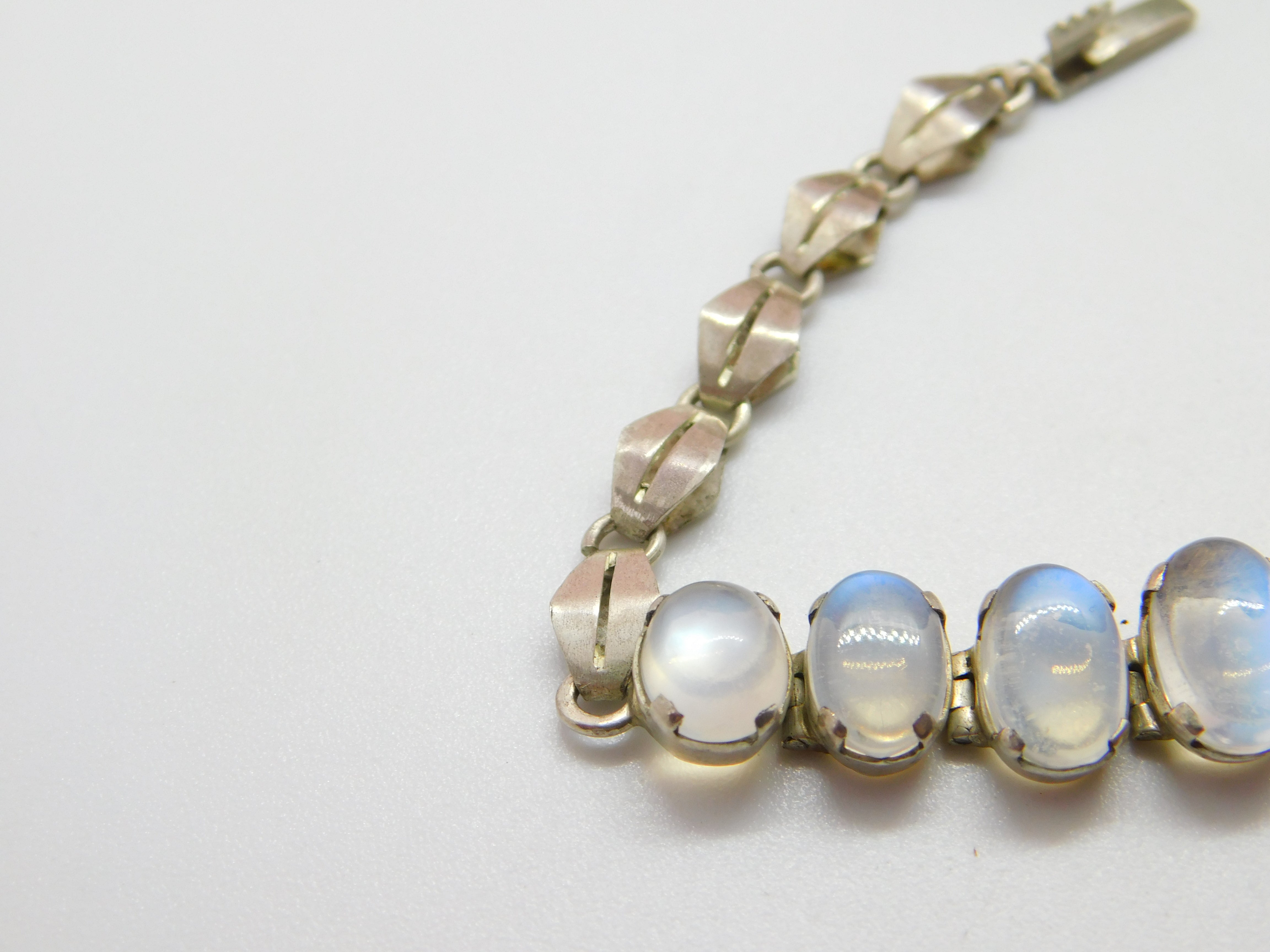 Sterling Silver Graduating Cabochon Moonstone Set Bracelet Antique c1920 Deco
