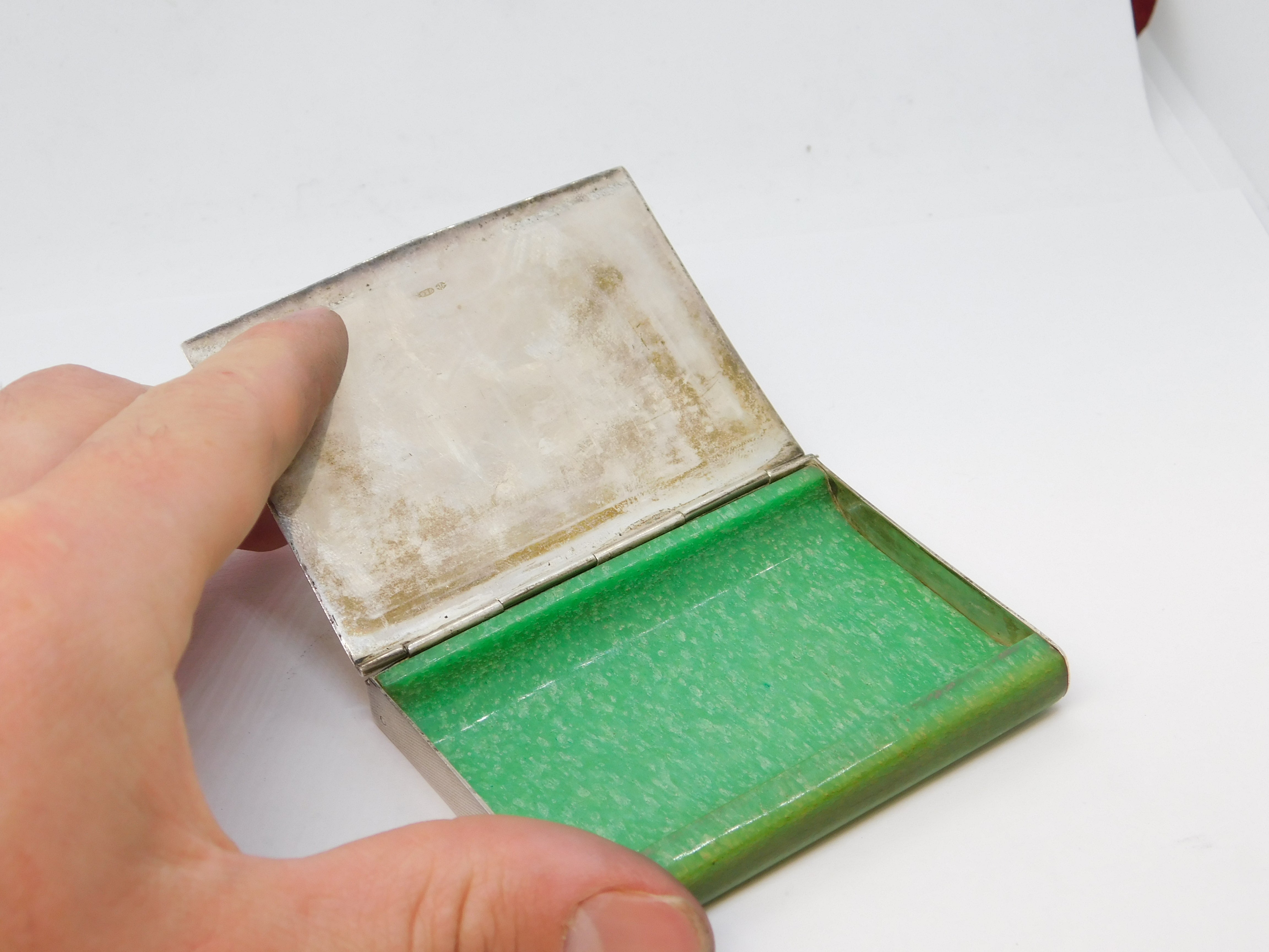Sterling Silver & Green Bakelite Set Cigarette Case Antique 1928 London