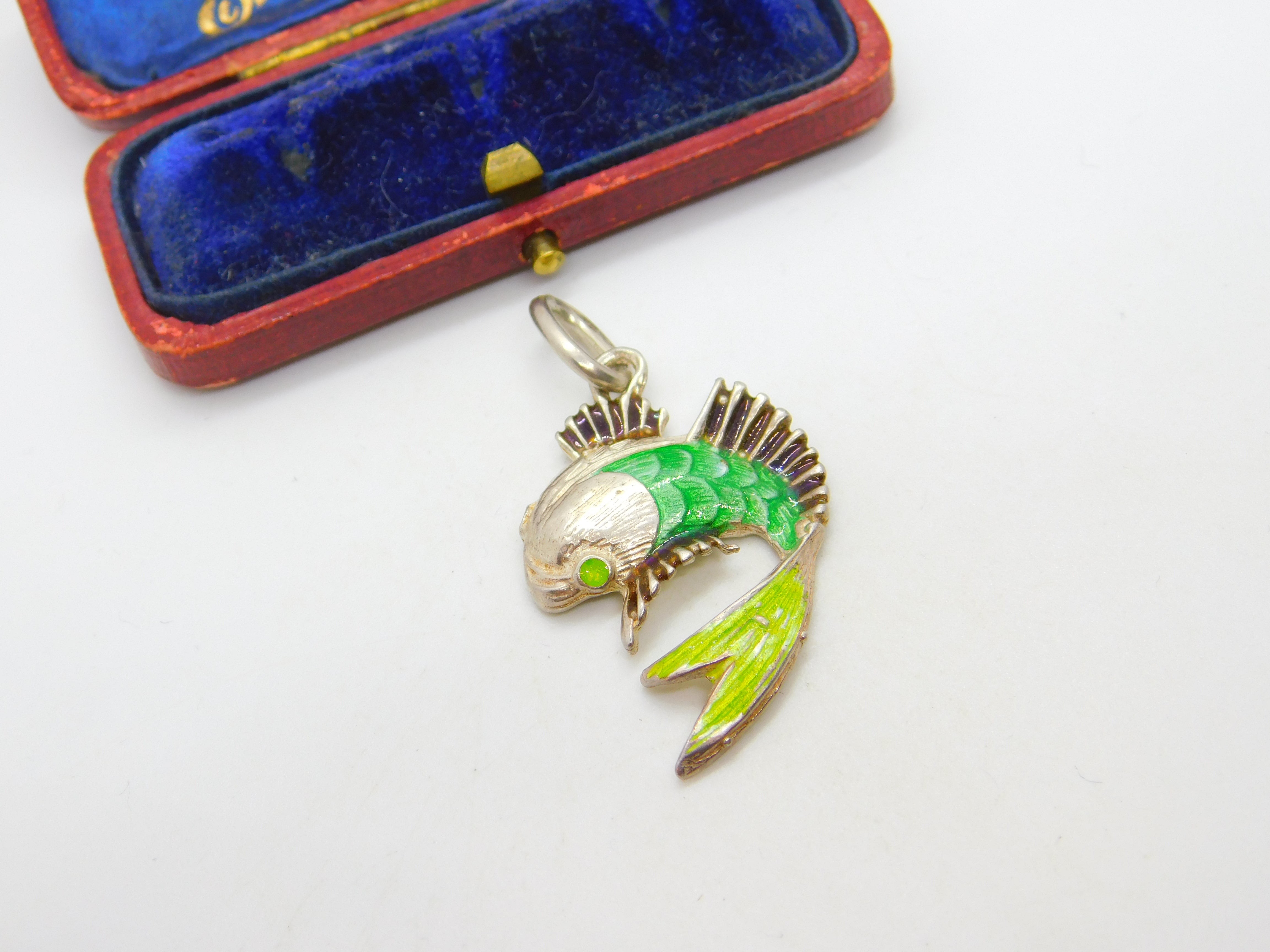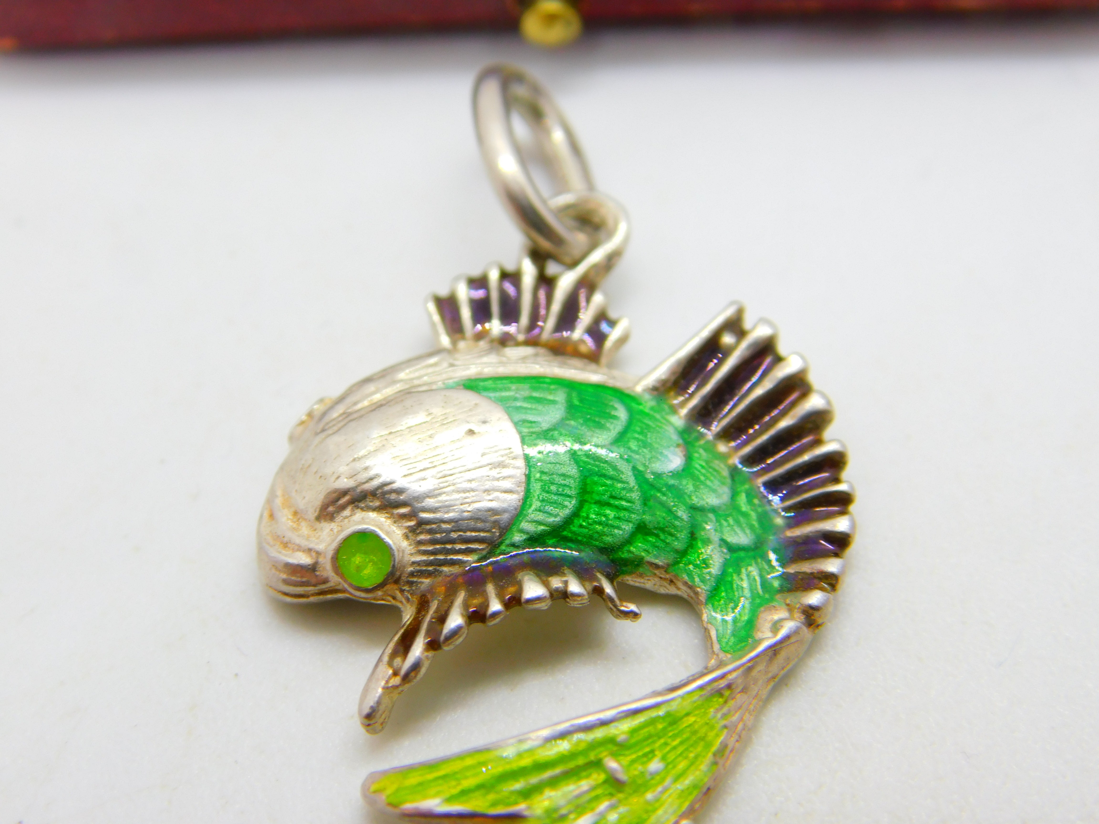 Sterling Silver & Green Enamel Tropical Fish Pendant Vintage c1980