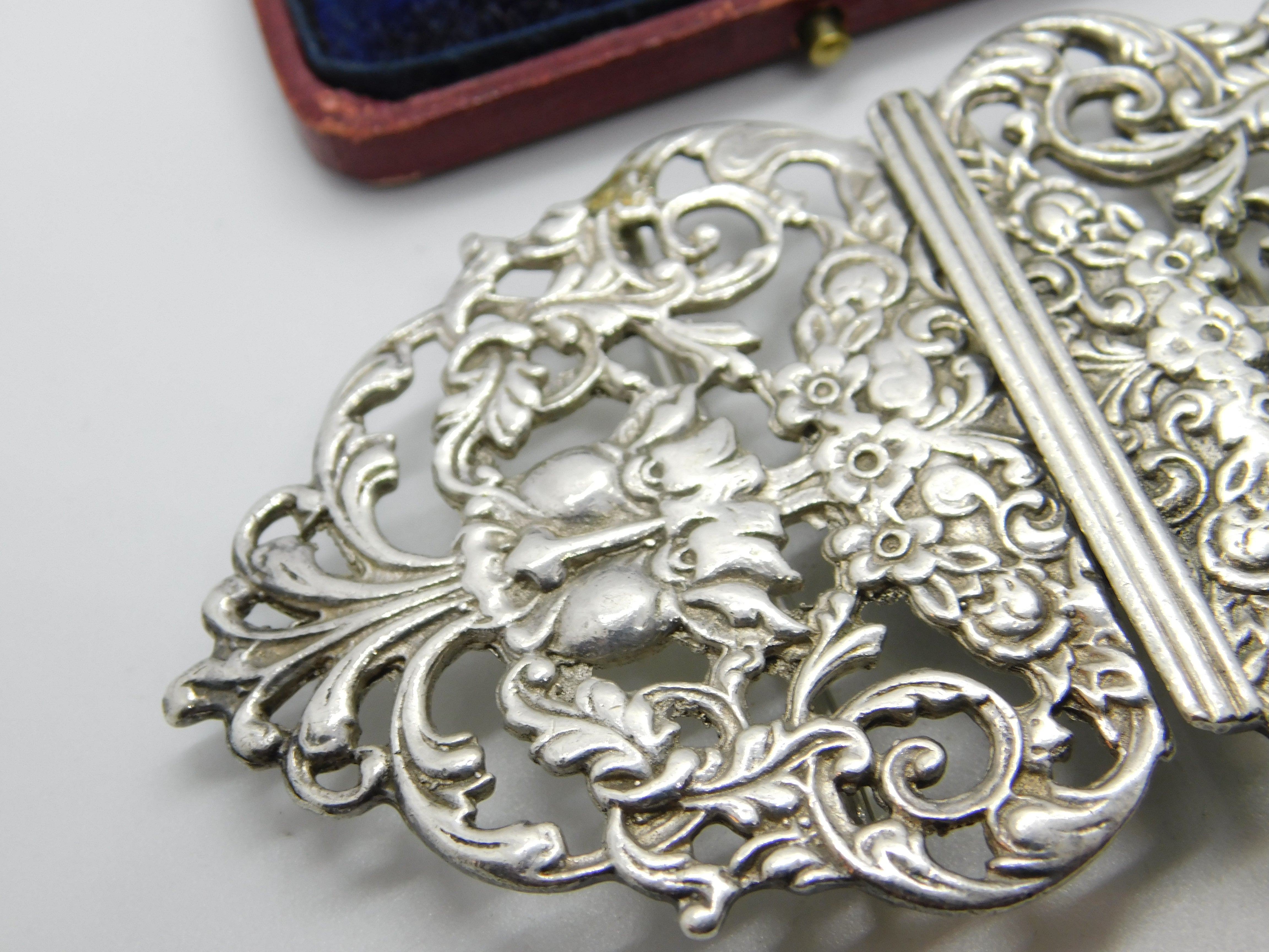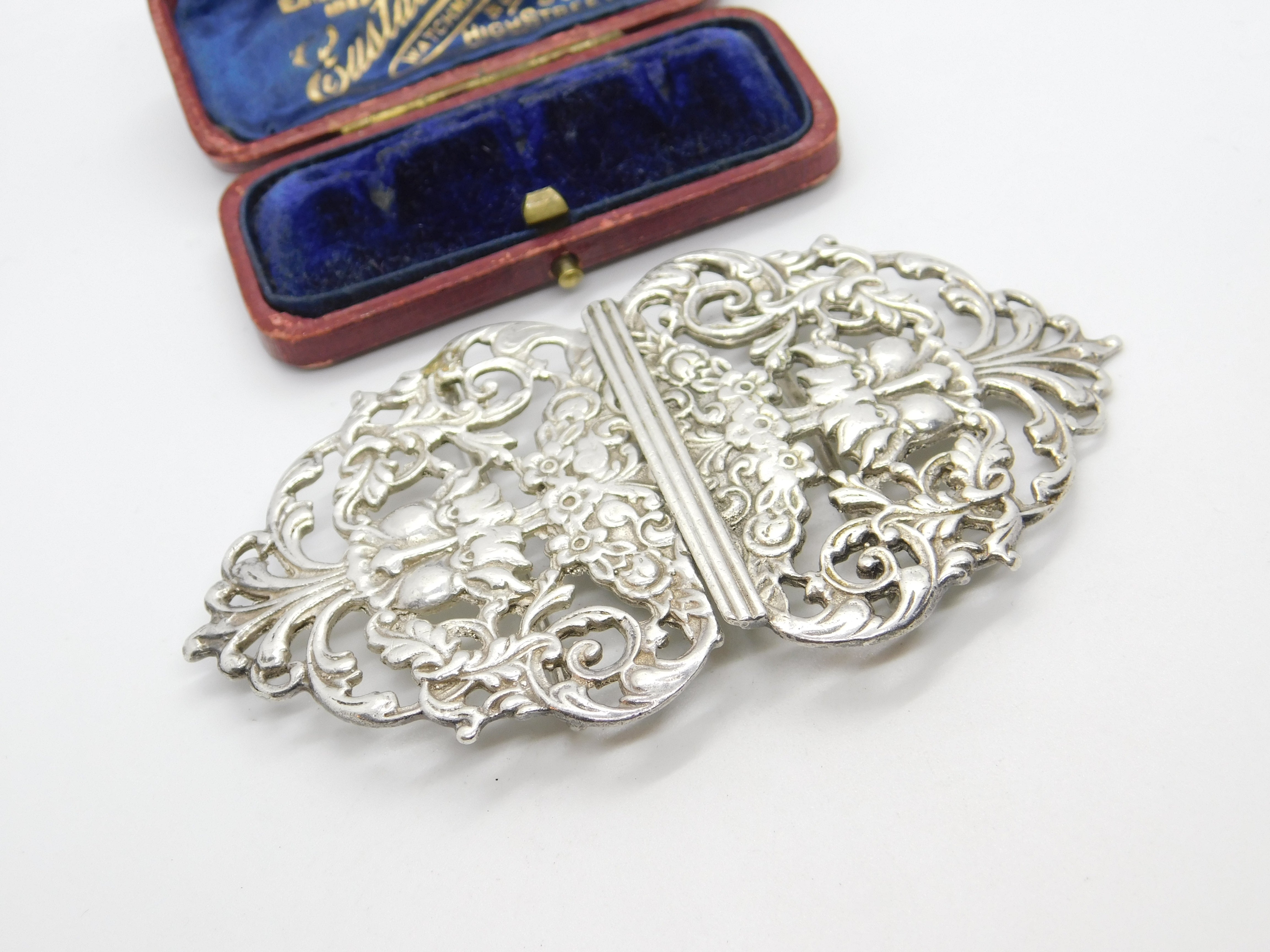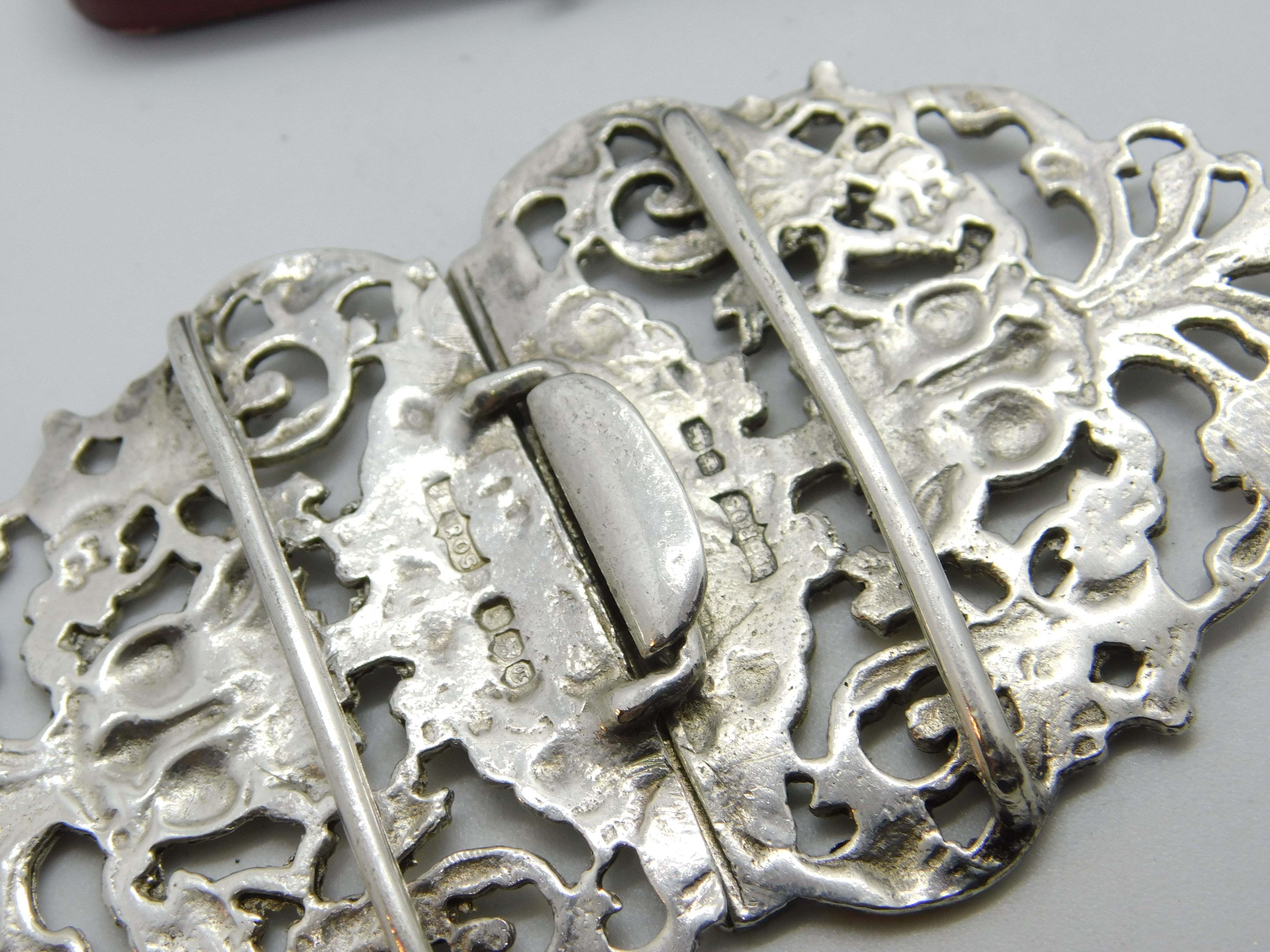 Sterling Silver Green Man Pattern Nurses Buckle Vintage 1973 Sheffield