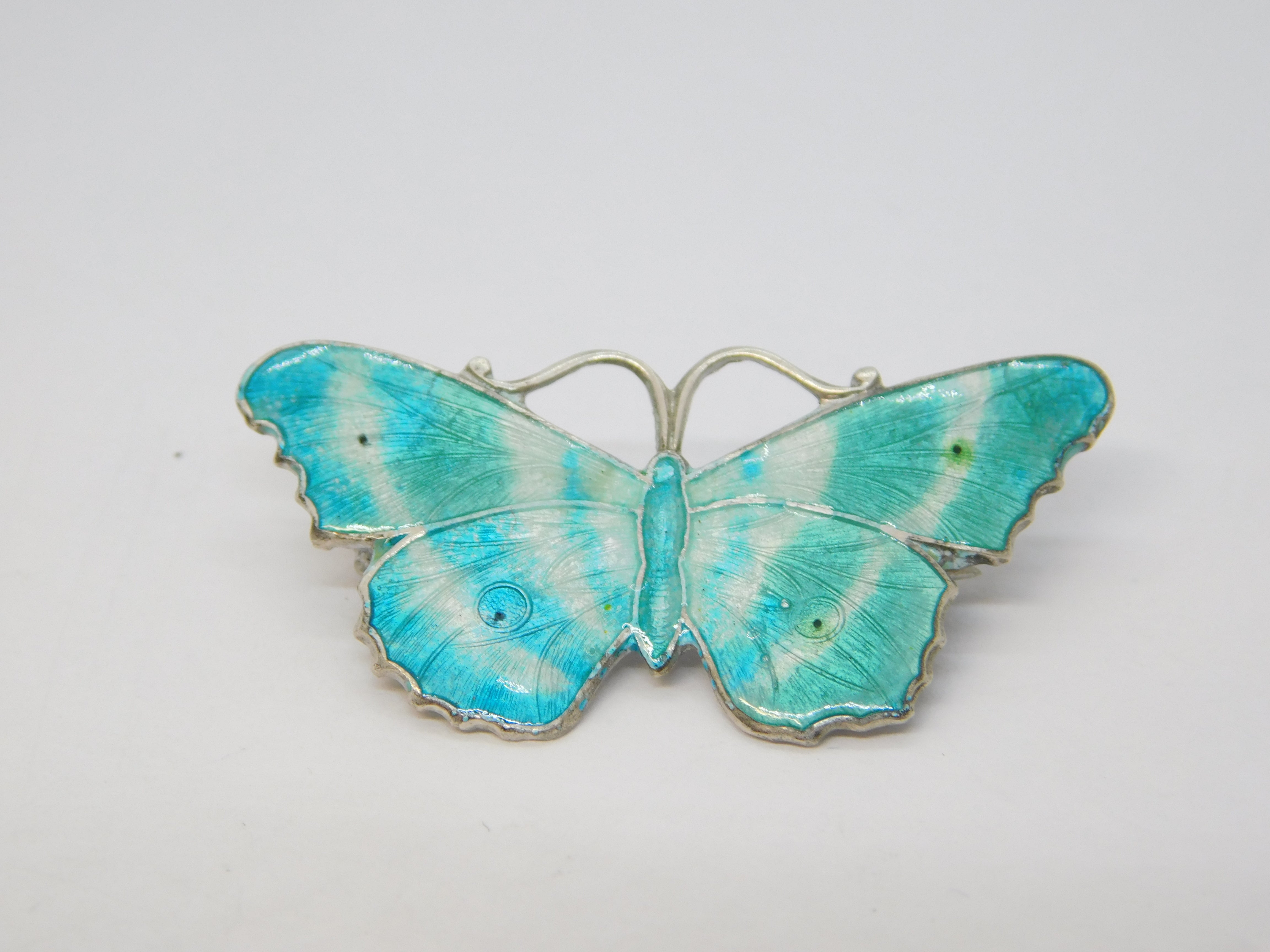 Sterling Silver Guilloche Enamel Butterfly Brooch Antique 1912 Birmingham