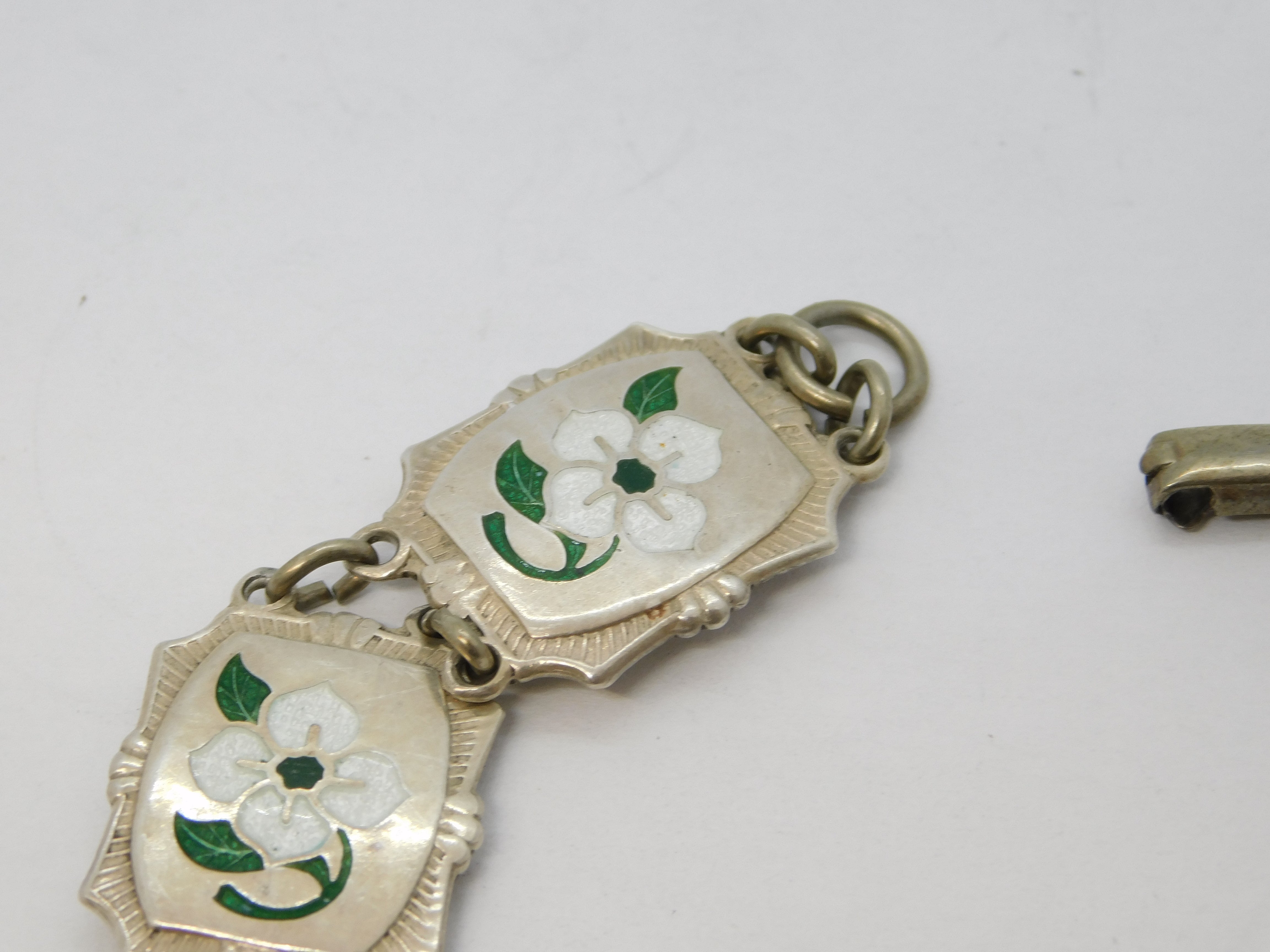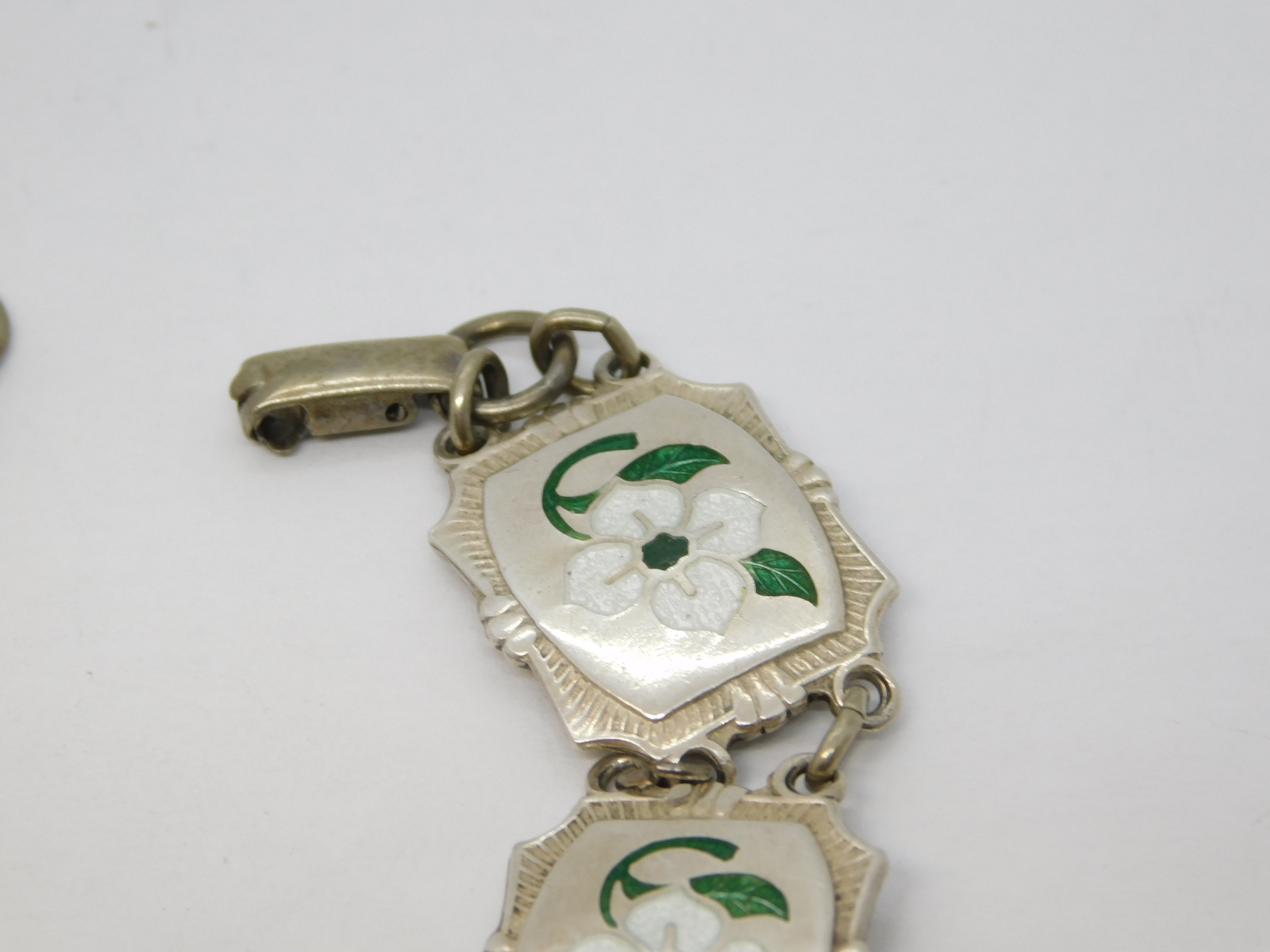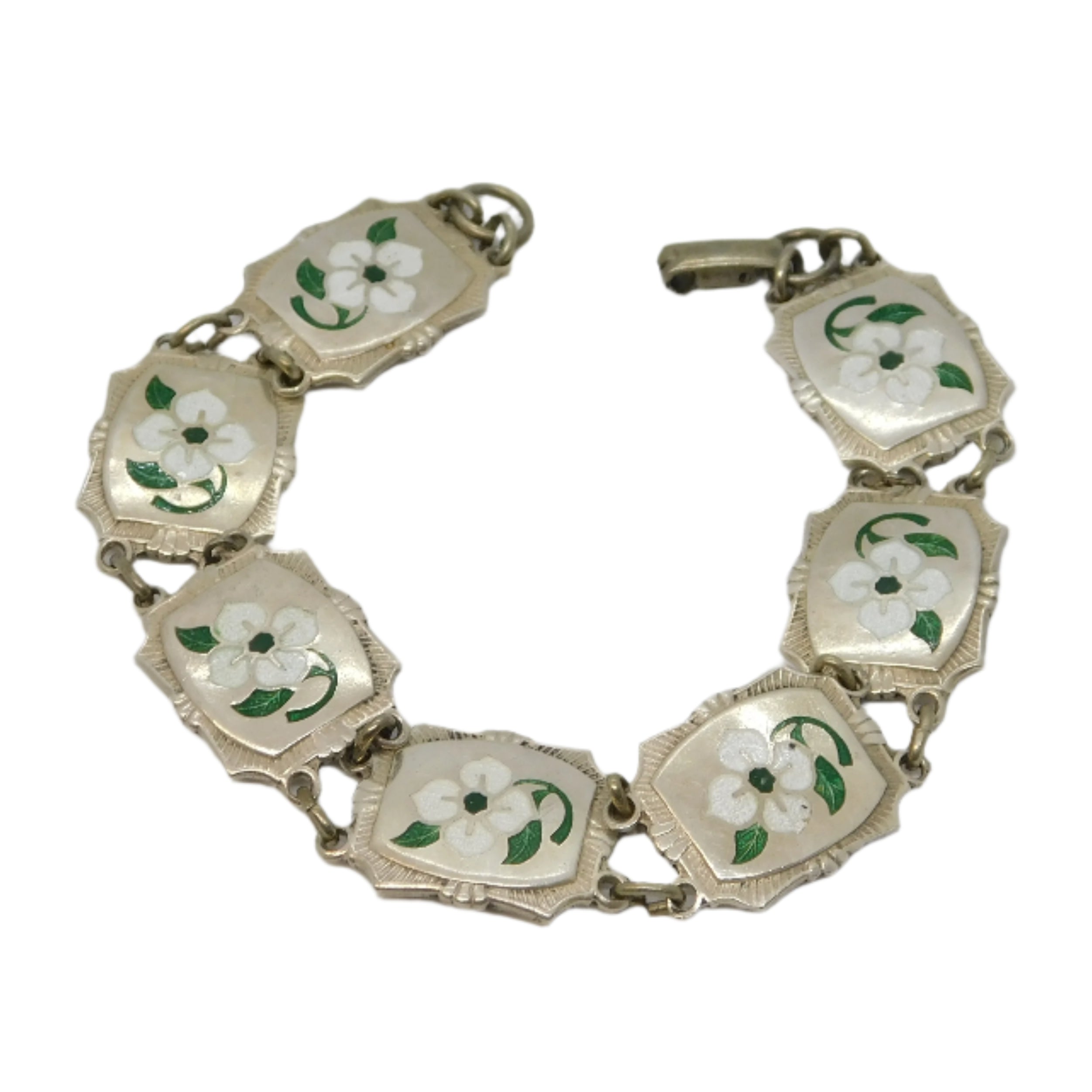 Sterling Silver Guilloche Enamel Floral Sweetheart Bracelet Antique c1920 Deco