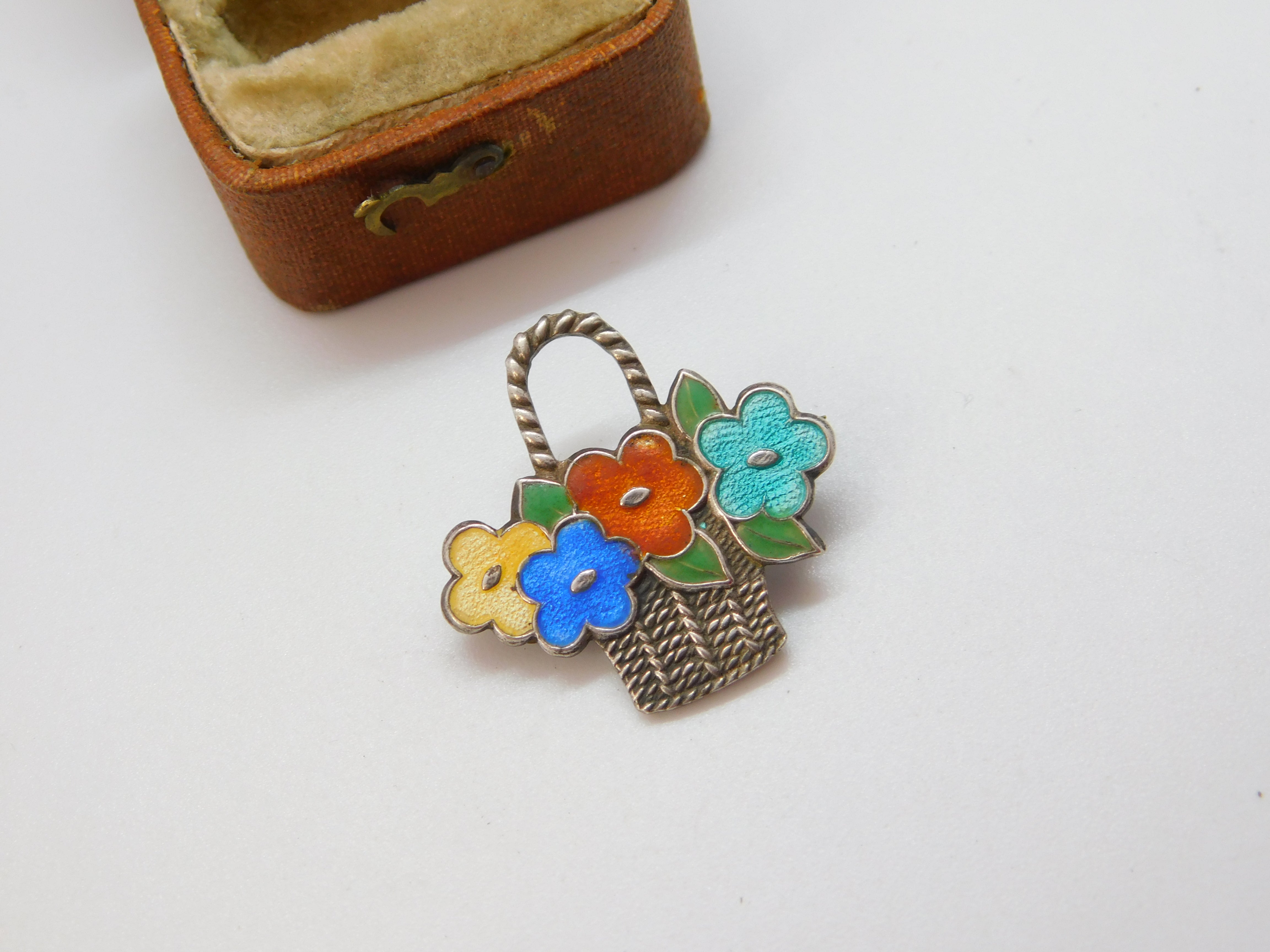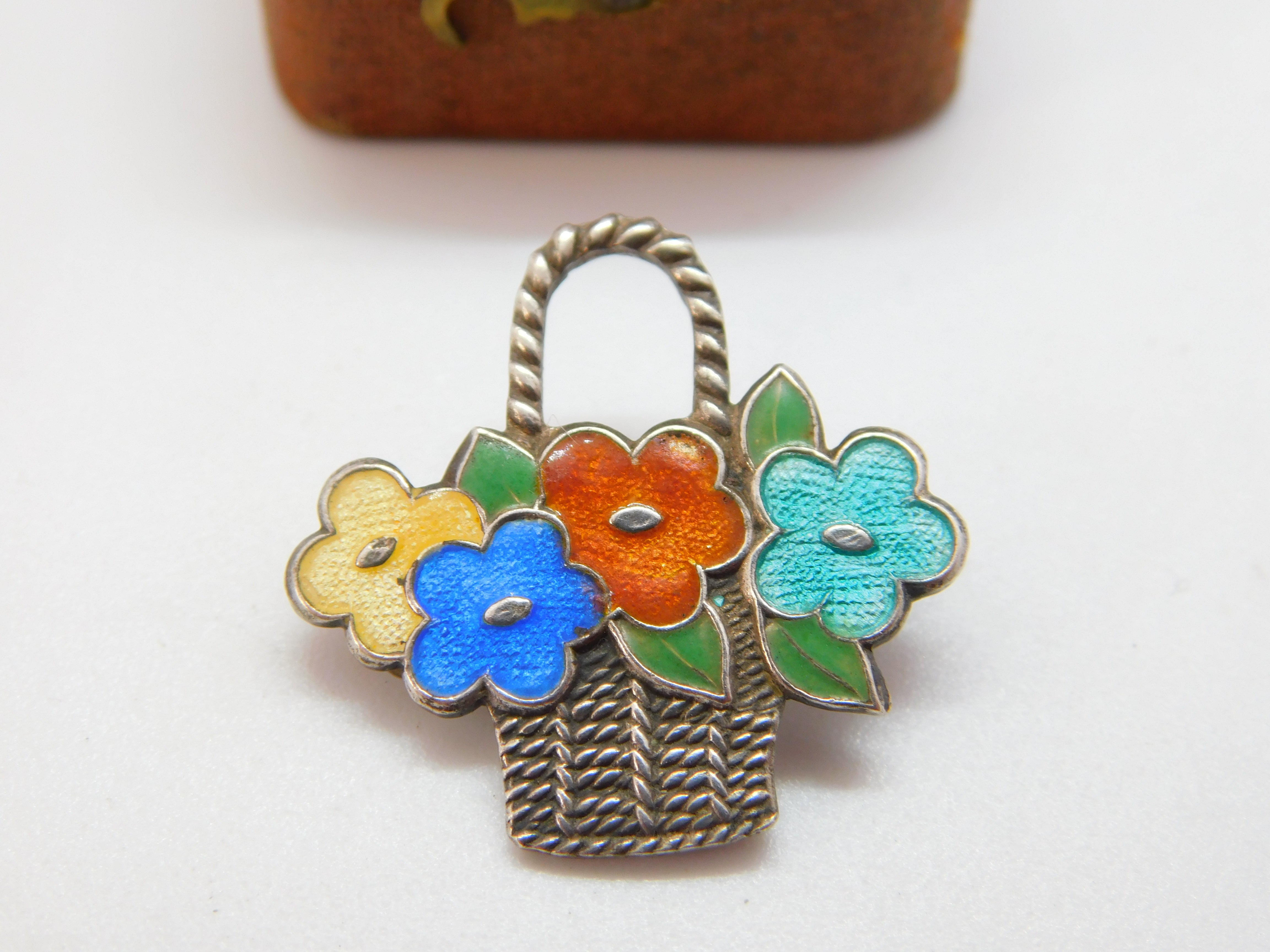 Details: A fantastic and wonderfully designed antique art deco sterling silver enamel basket of flowers brooch hallmarked to the reverse c1930. This is a wonderful item that would make a perfect gift or addition to any collection. The BOX pictured is for PRESENTATION ONLY and is NOT included in the listings but used to frame the pictures unless specifically stated otherwise.