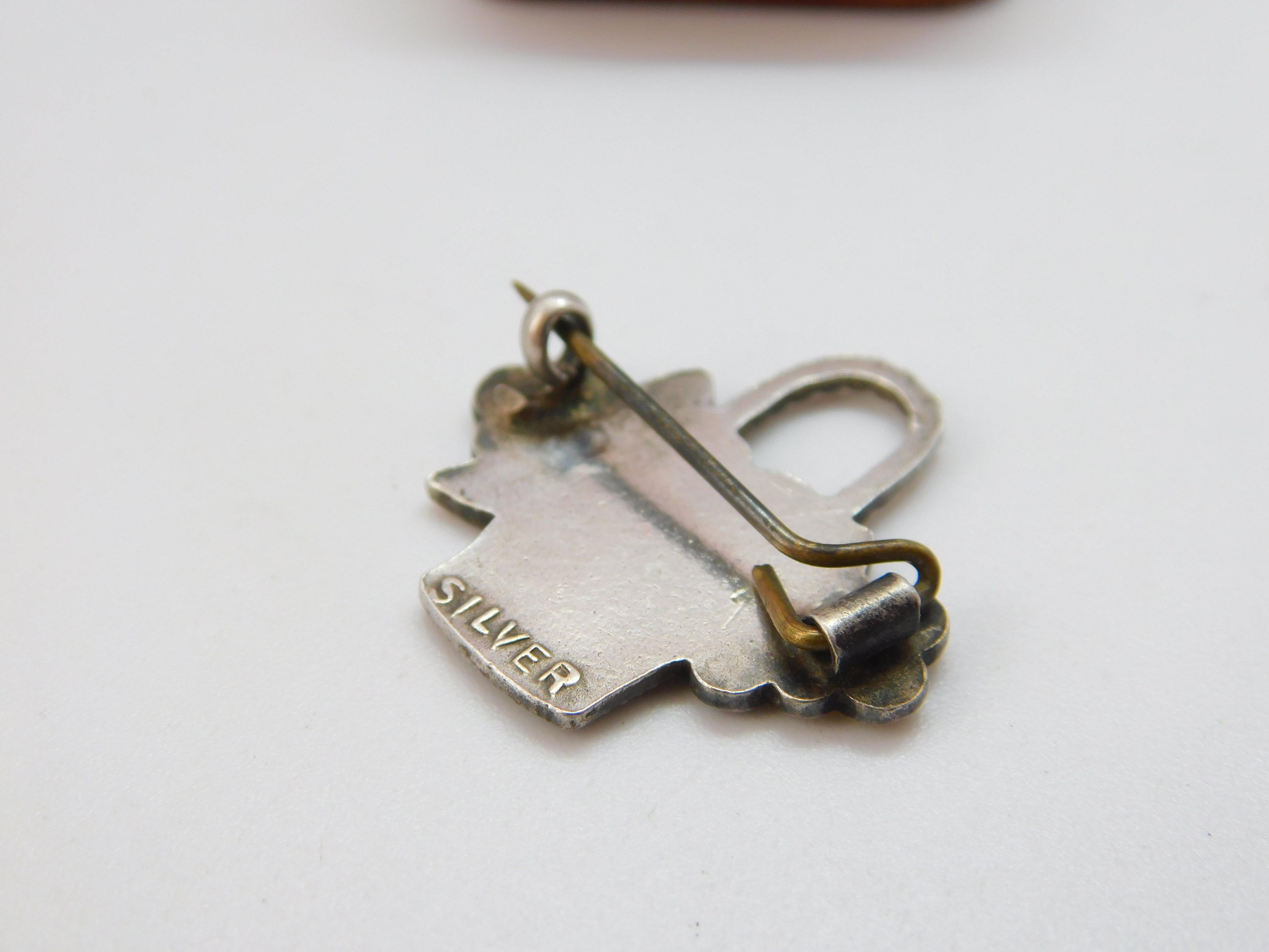 Sterling Silver Guilloche Enamel Flower Basket Brooch Antique c1930 Art Deco