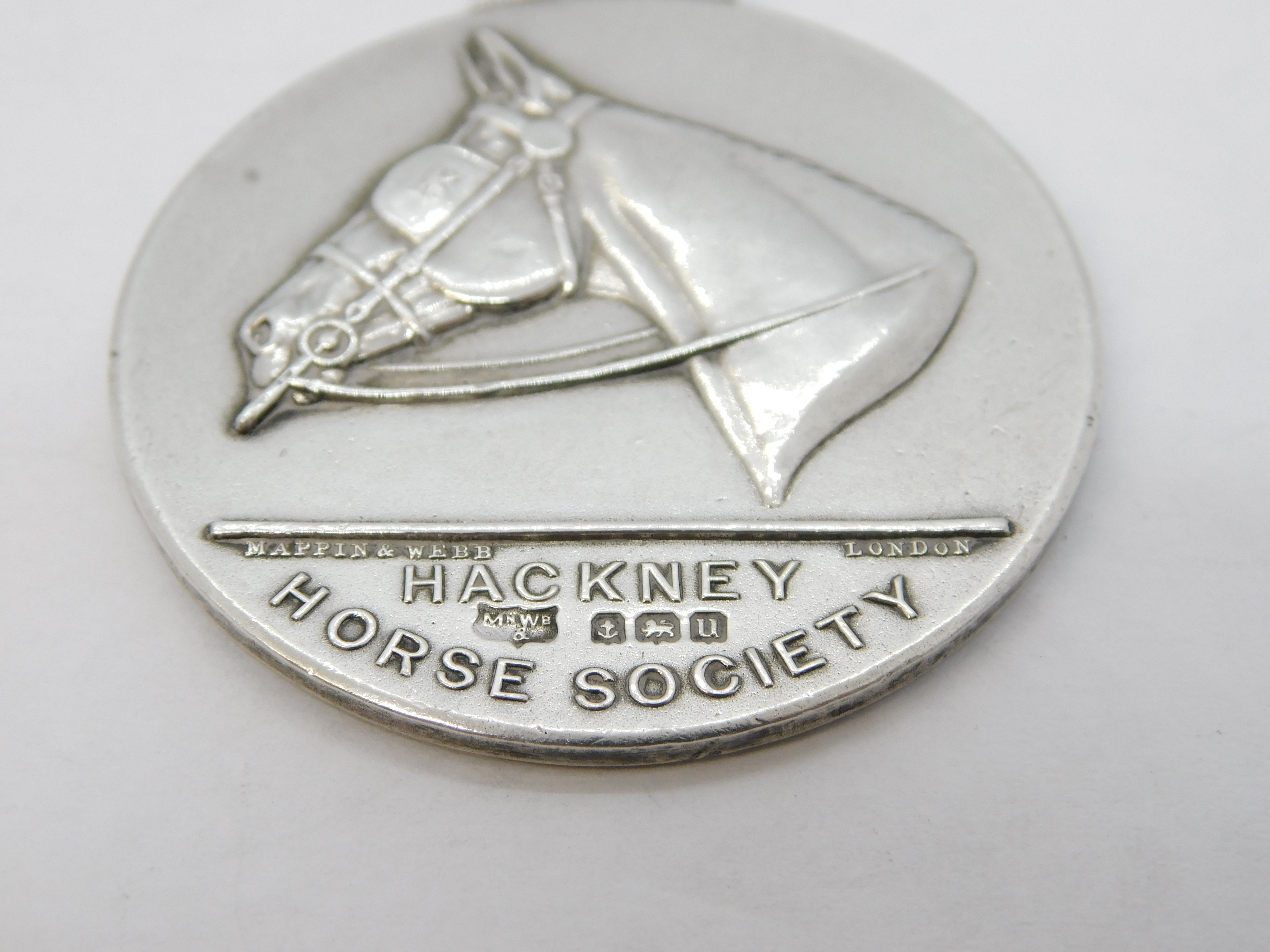 Details: A fantastic and wonderfully designed antique art deco sterling silver Hackney Horse Society medal with horse to the reverse and portrait of King George V to the front hallmarked Birmingham 1919 by Mappin & Webb. This is a wonderful item that would make a perfect gift or addition to any collection.