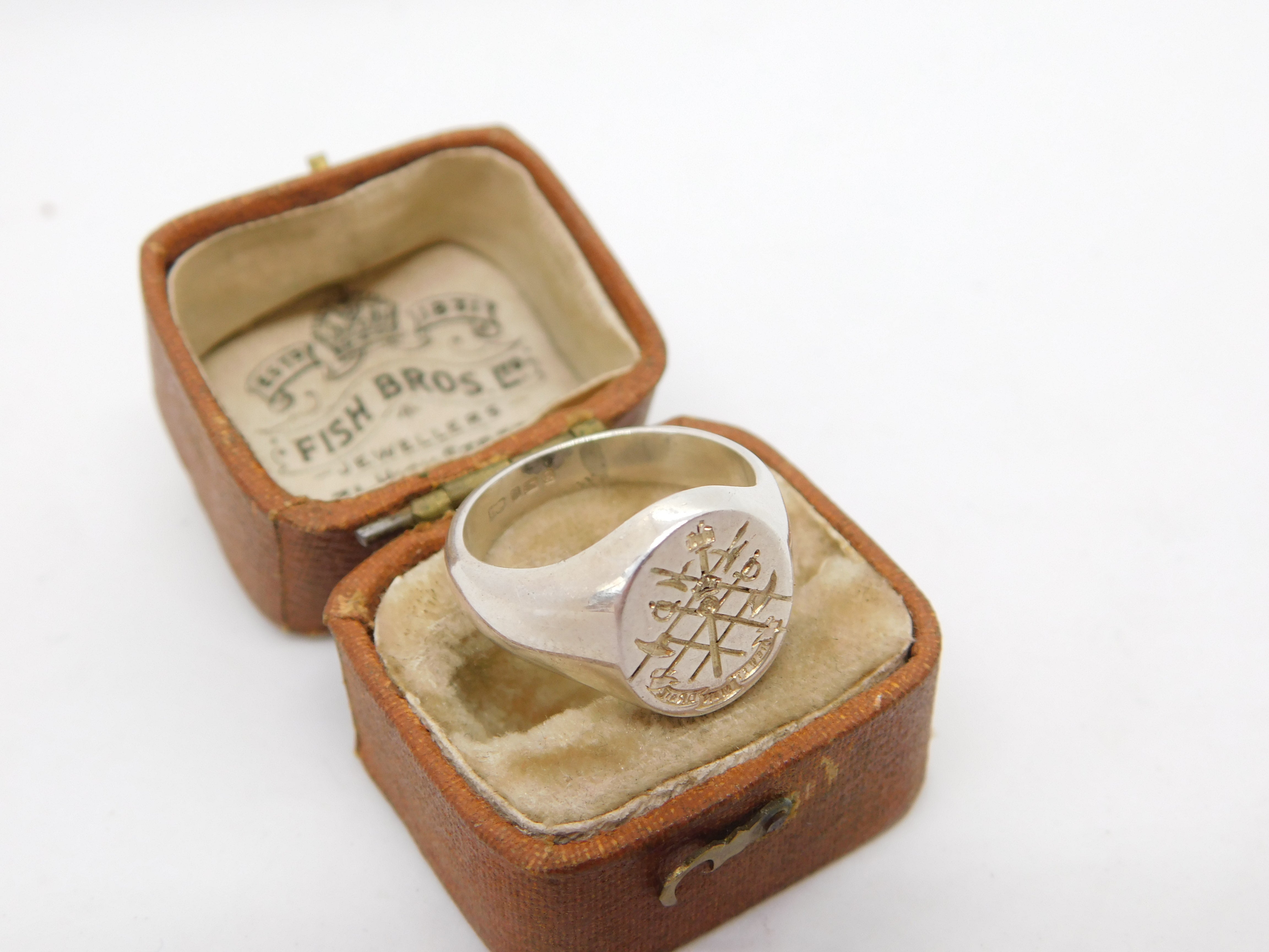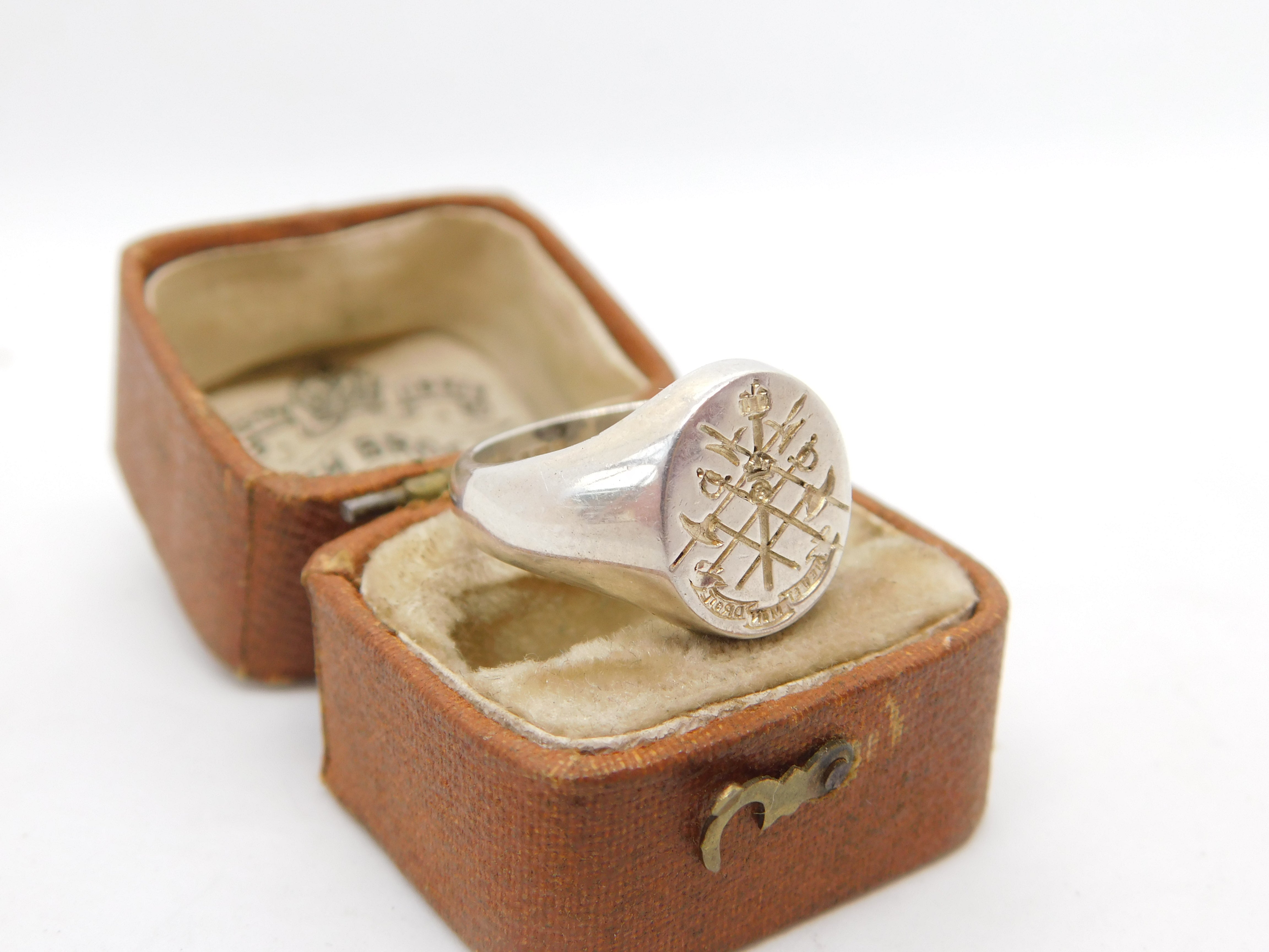 Sterling Silver Heraldic Intaglio Seal Signet Ring Vintage 1976 Birmingham