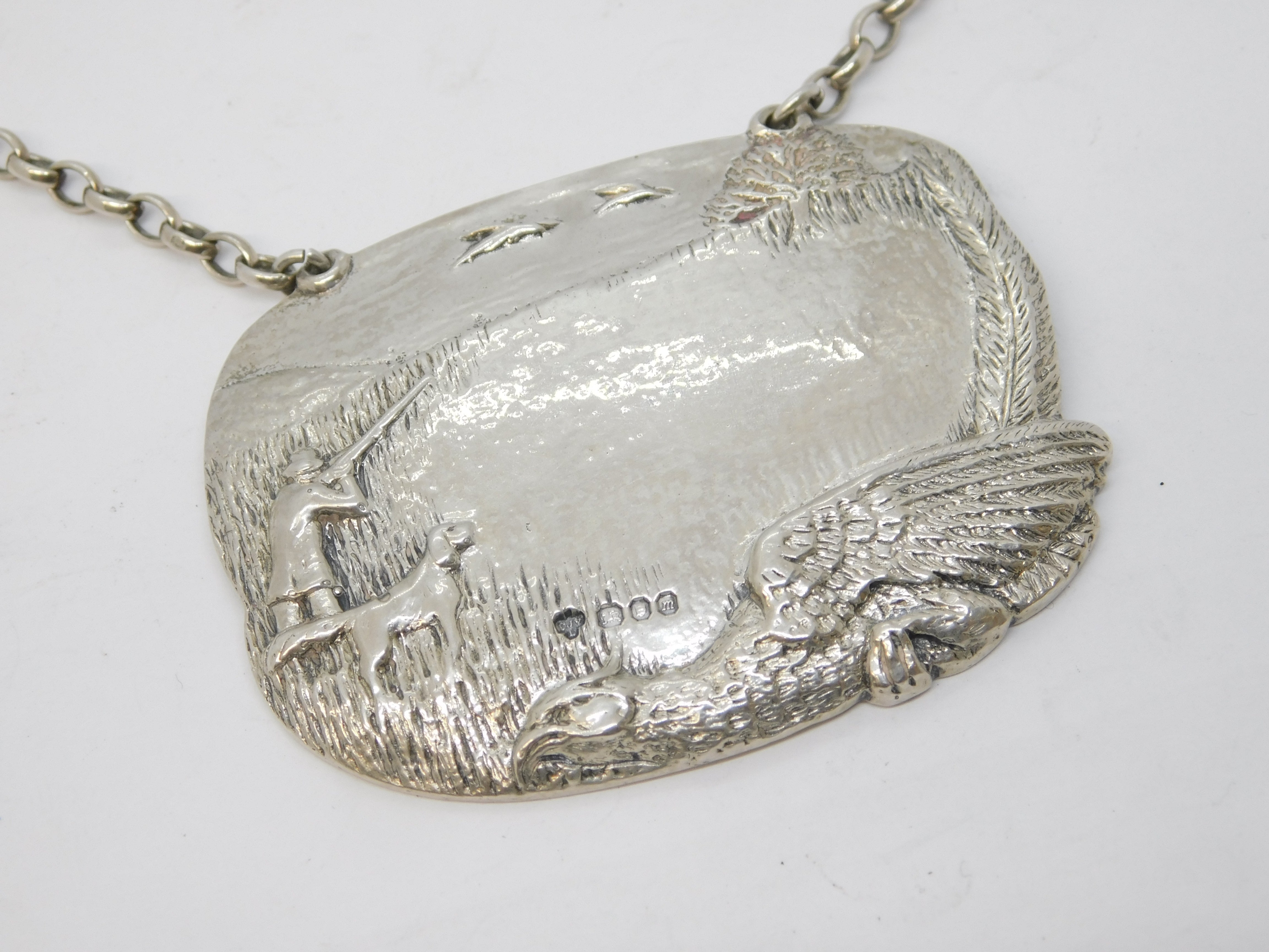 Sterling Silver Hunting Shooting Interest Decanter Label Vintage 1967 London