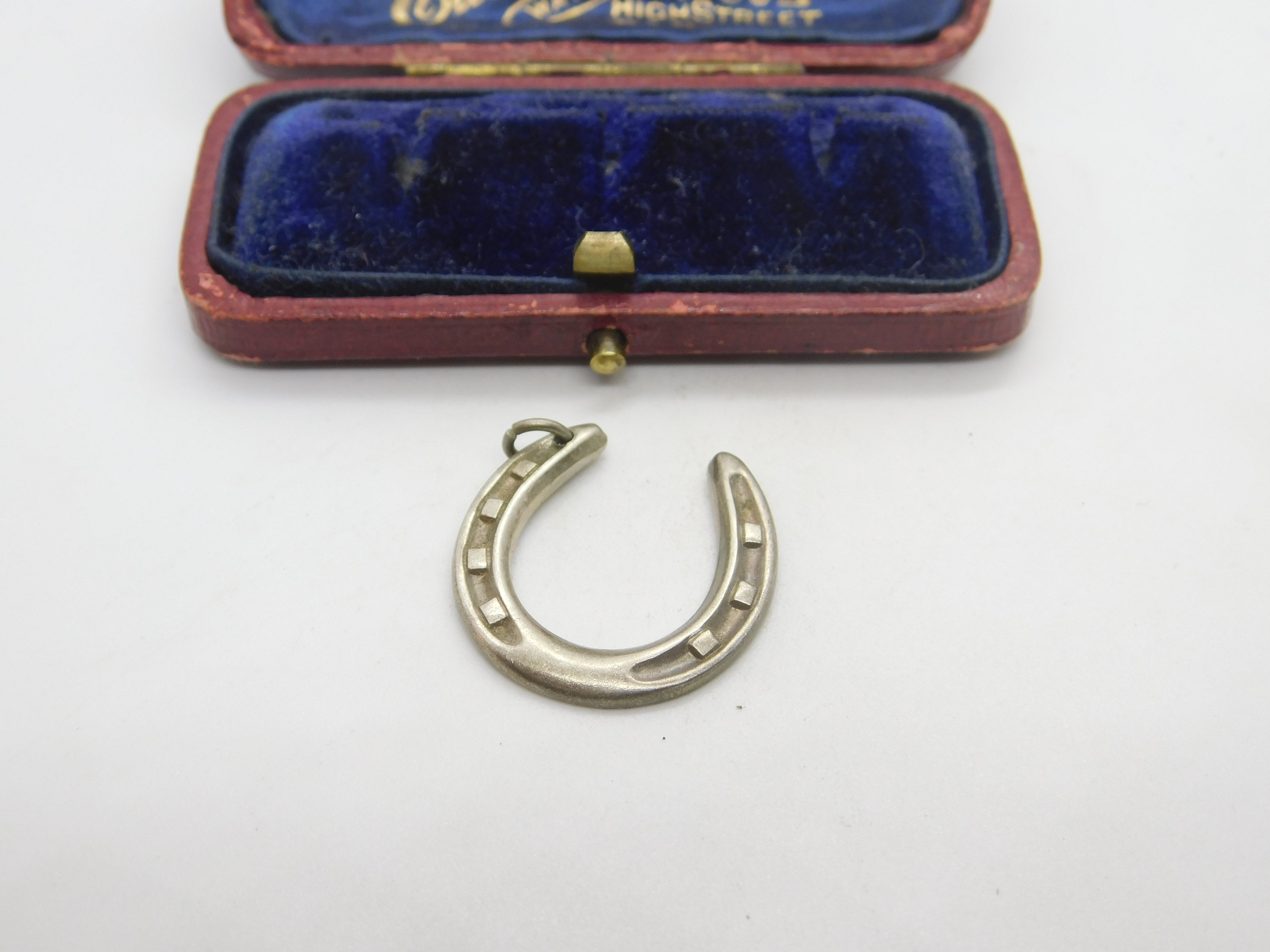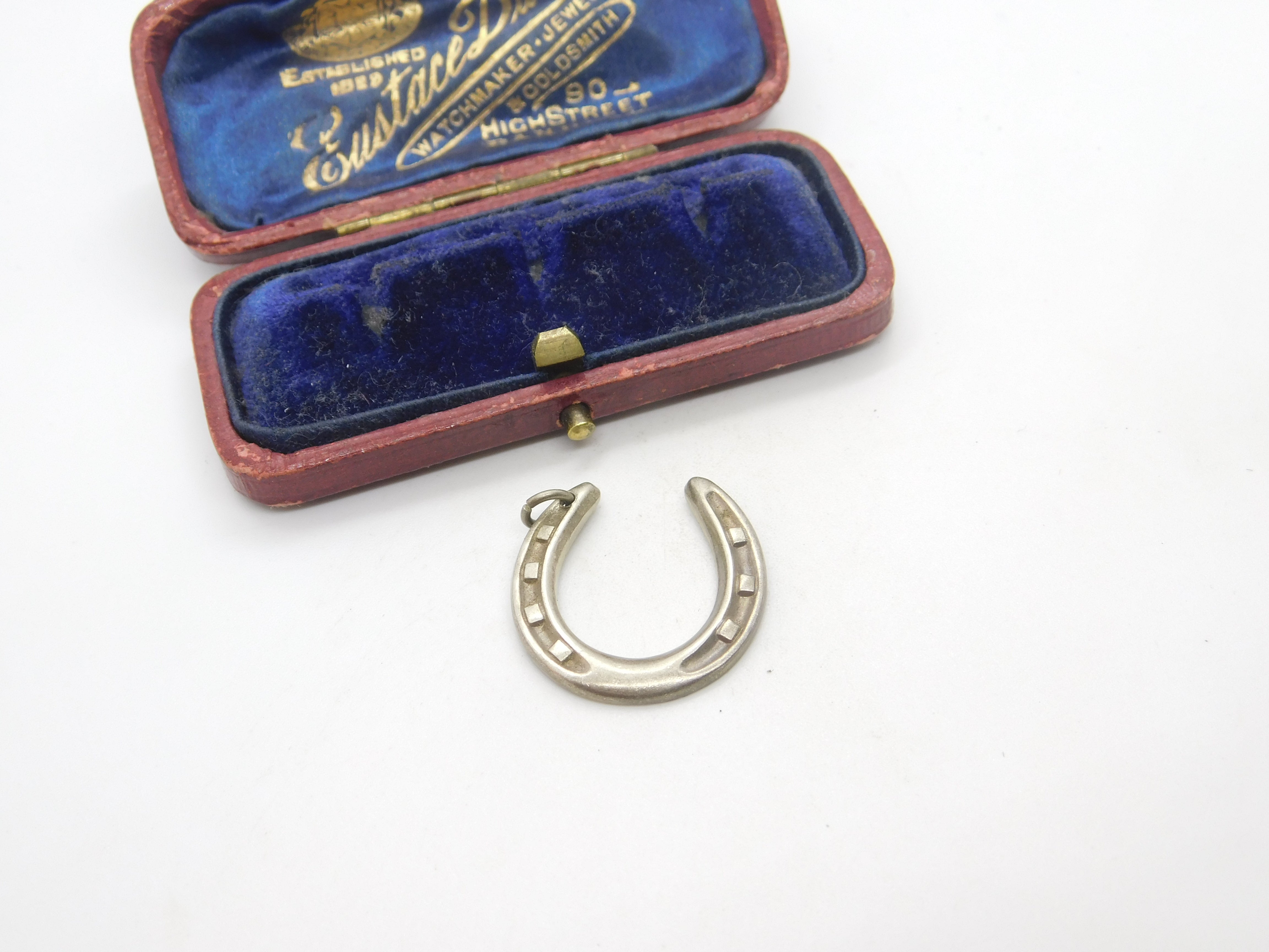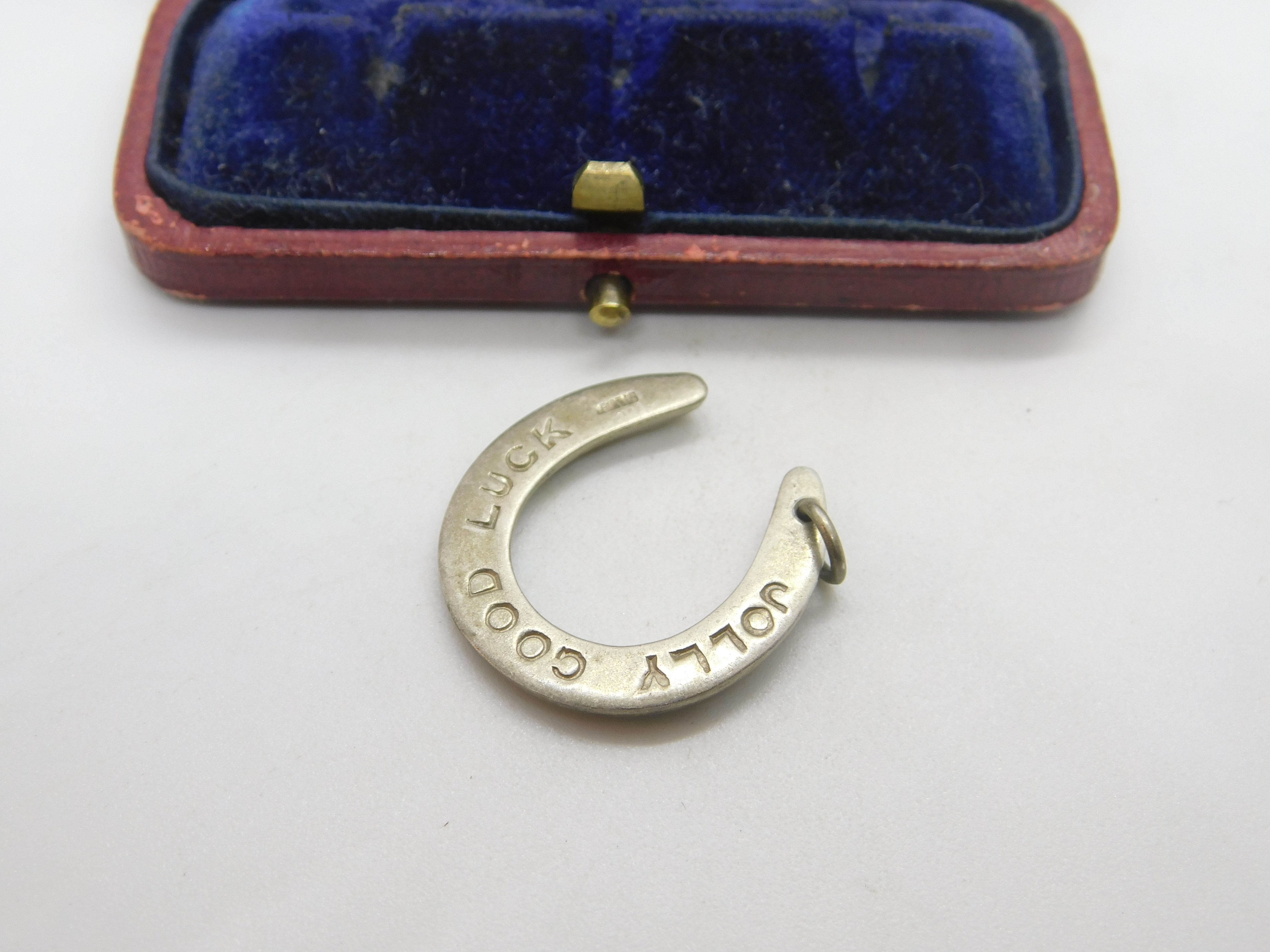 Sterling Silver 'Jolly Good Luck' Horseshoe Pendant Antique c1920 Art Deco