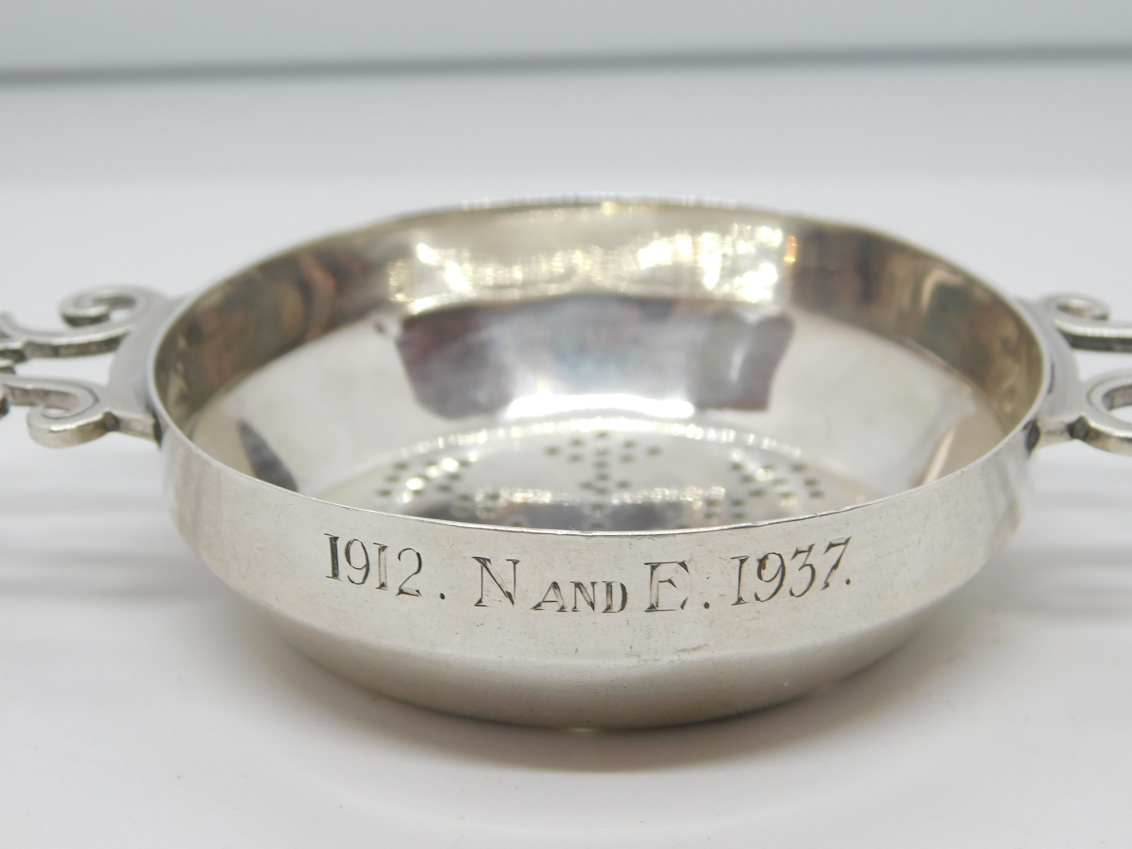 Sterling Silver King George IV Coronation Tea Strainer Antique 1936 Sheffield