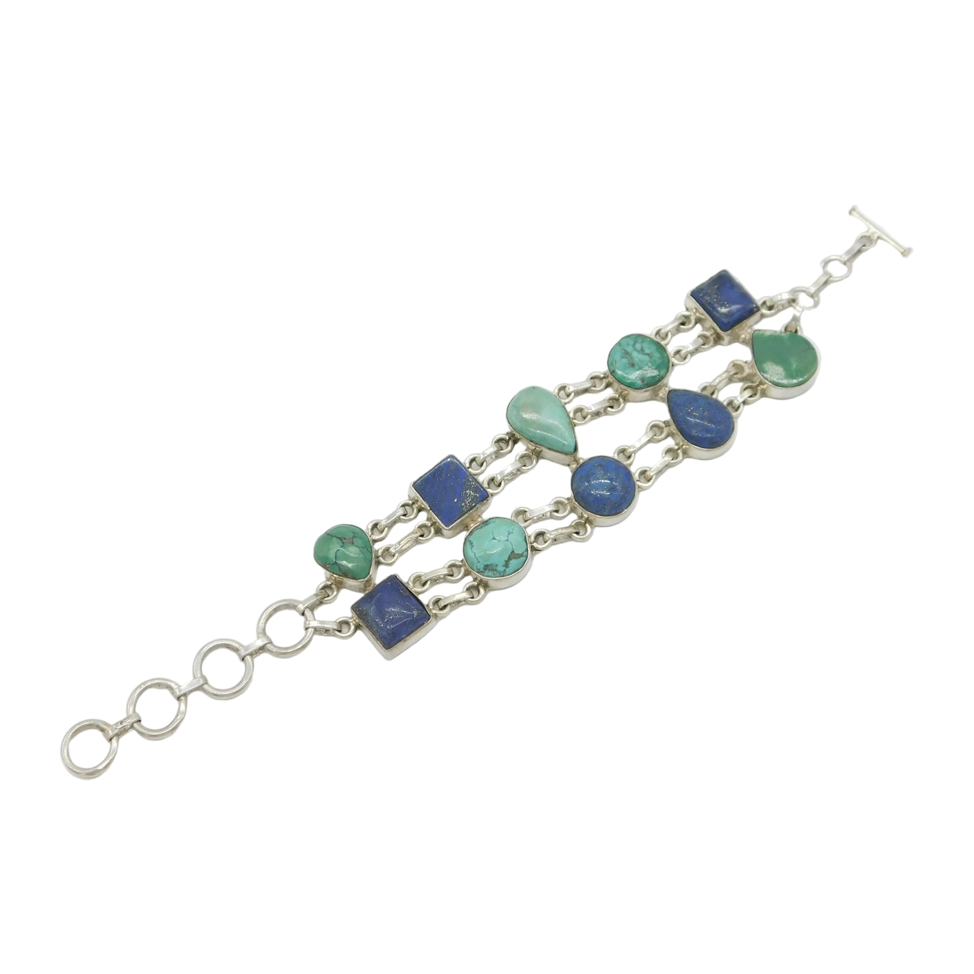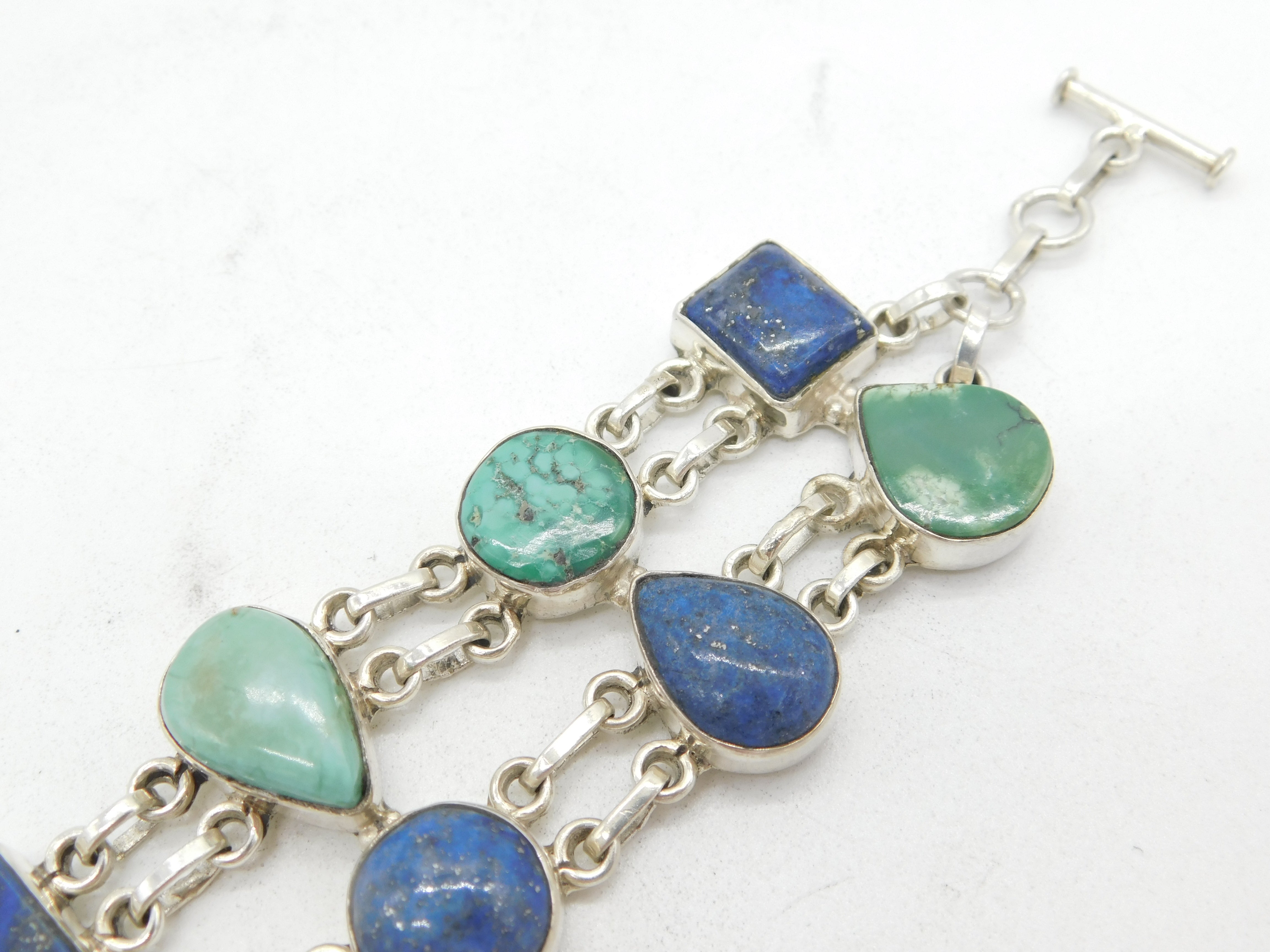 Sterling Silver Large Lapis Lazuli & Turquoise Dress Bracelet Vintage c1980