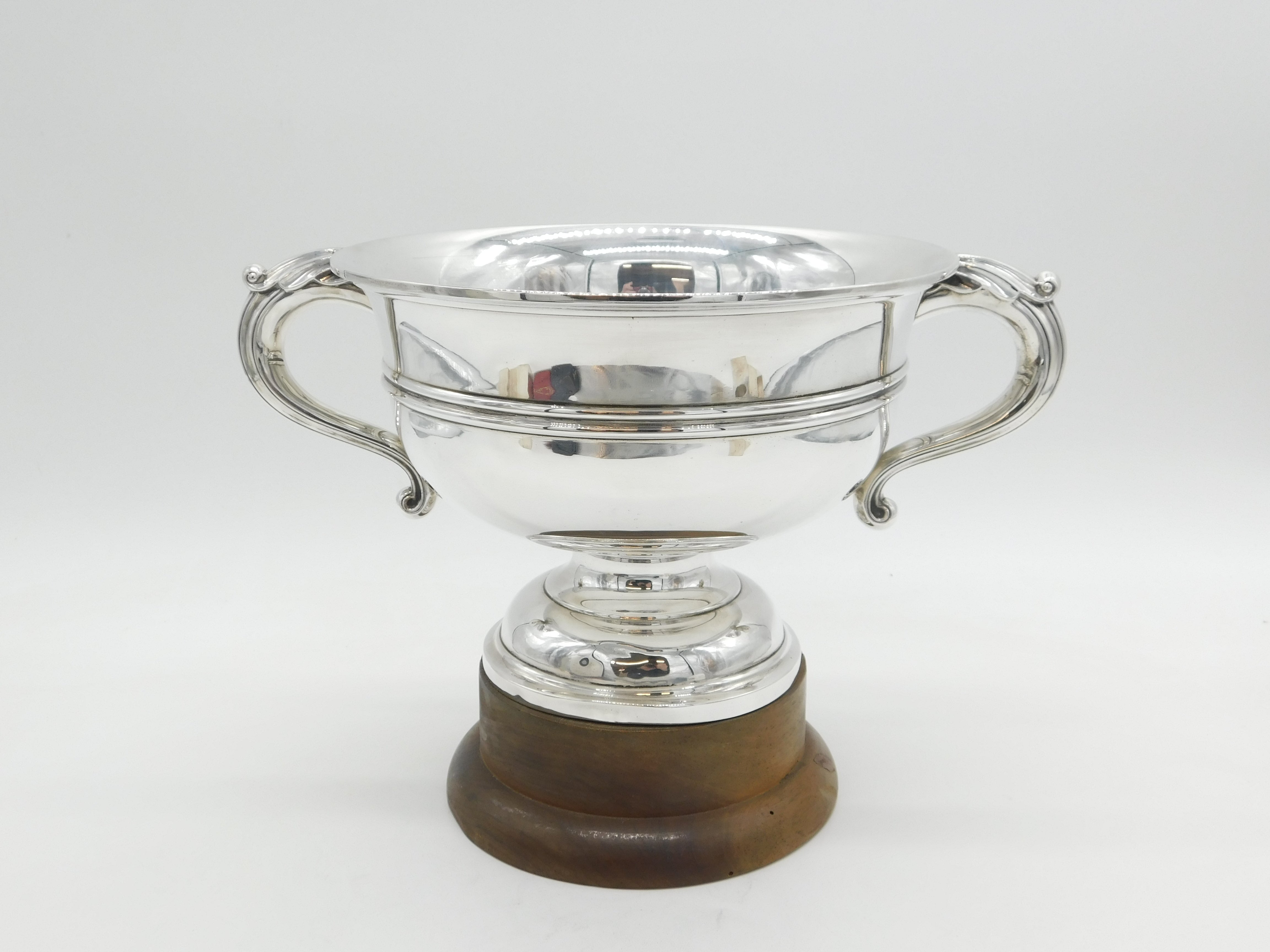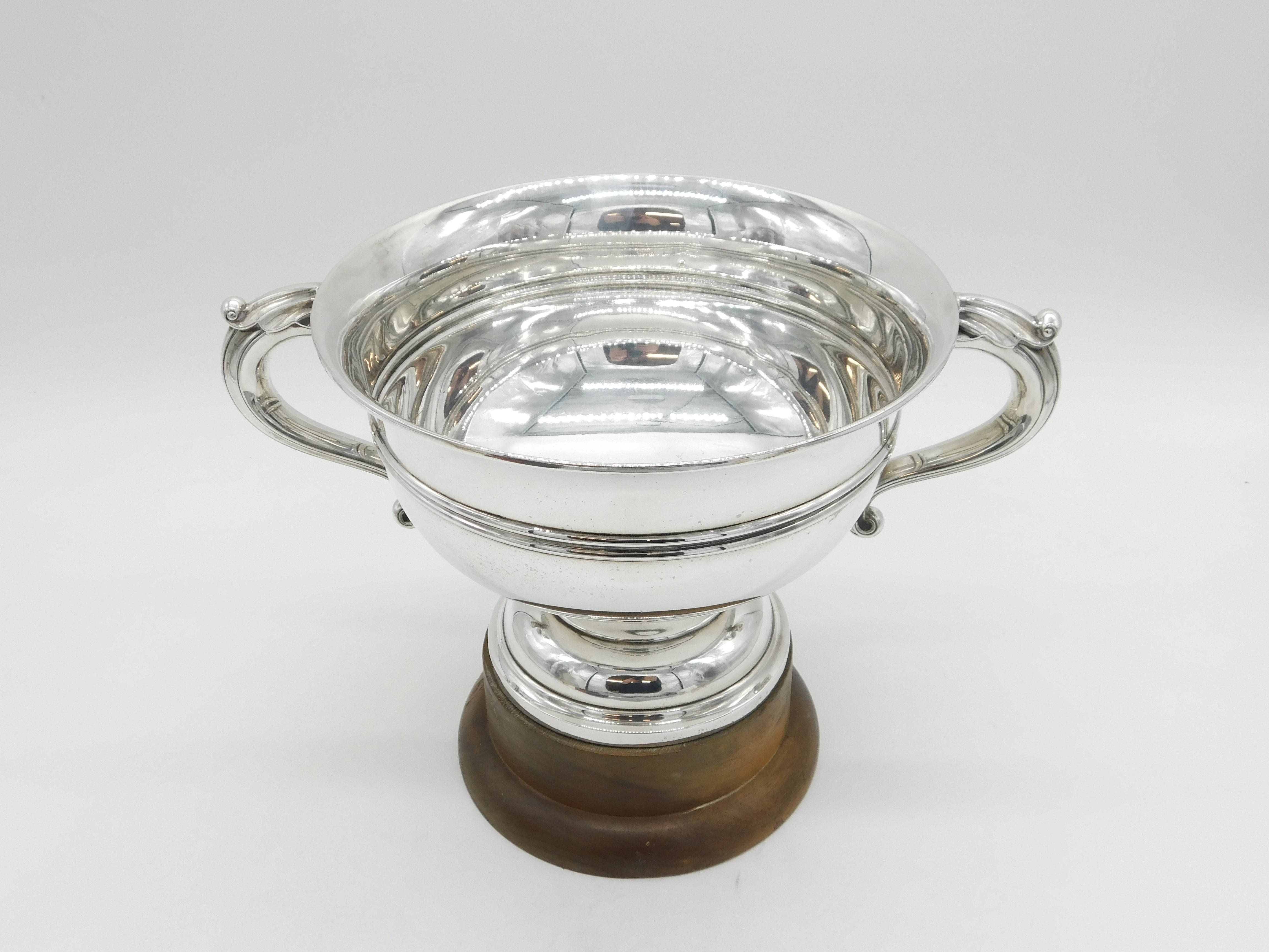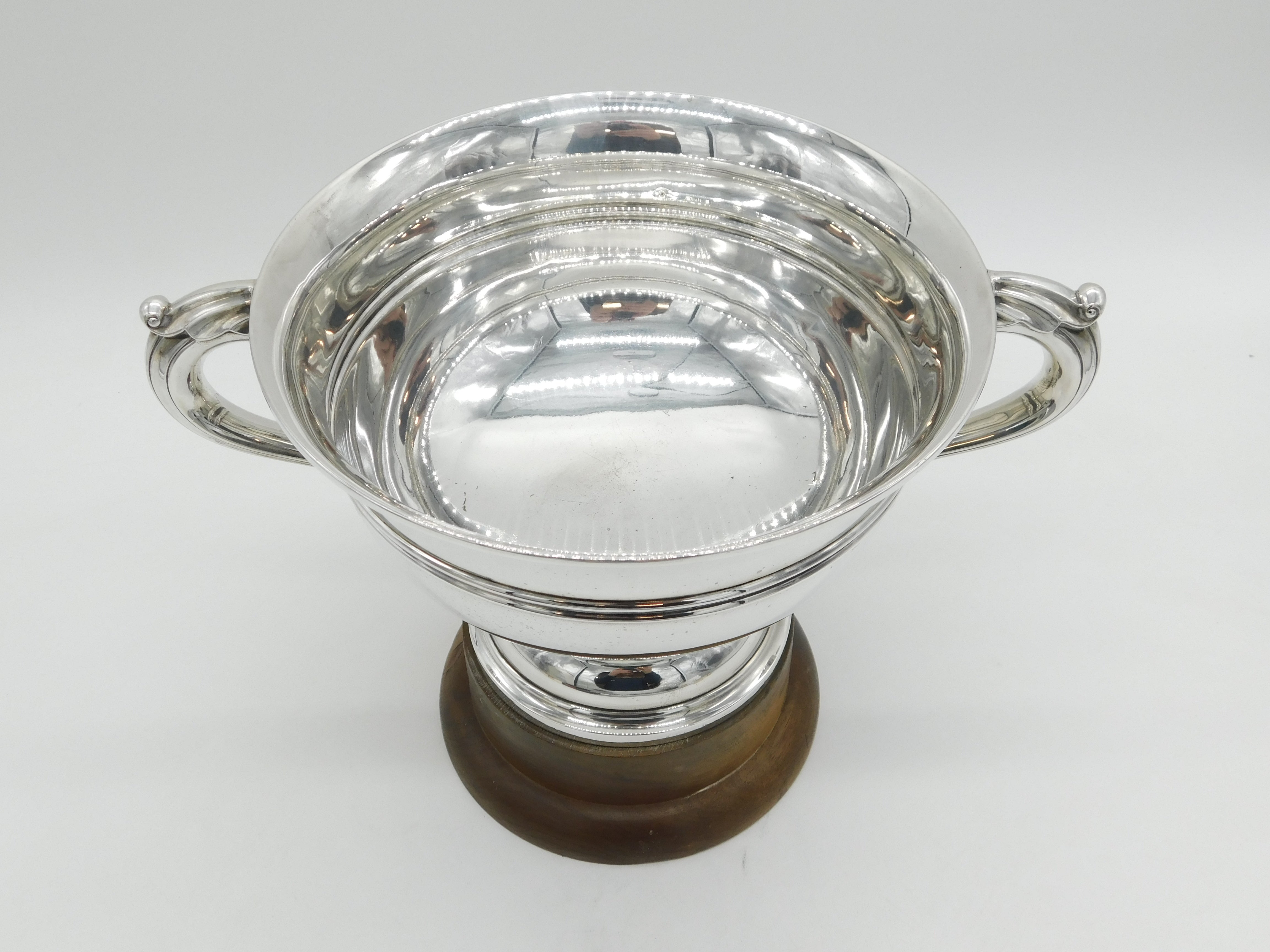 Details: A fantastic and wonderfully designed antique art deco large sterling silver two-handed sporting trophy with superb detailing to include lovely wooden base and no prior engraving so perfect for a sporting or other event, bold hallmarks Sheffield 1922 by Walker & Hall. This is a wonderful item that would make a perfect gift or addition to any collection.