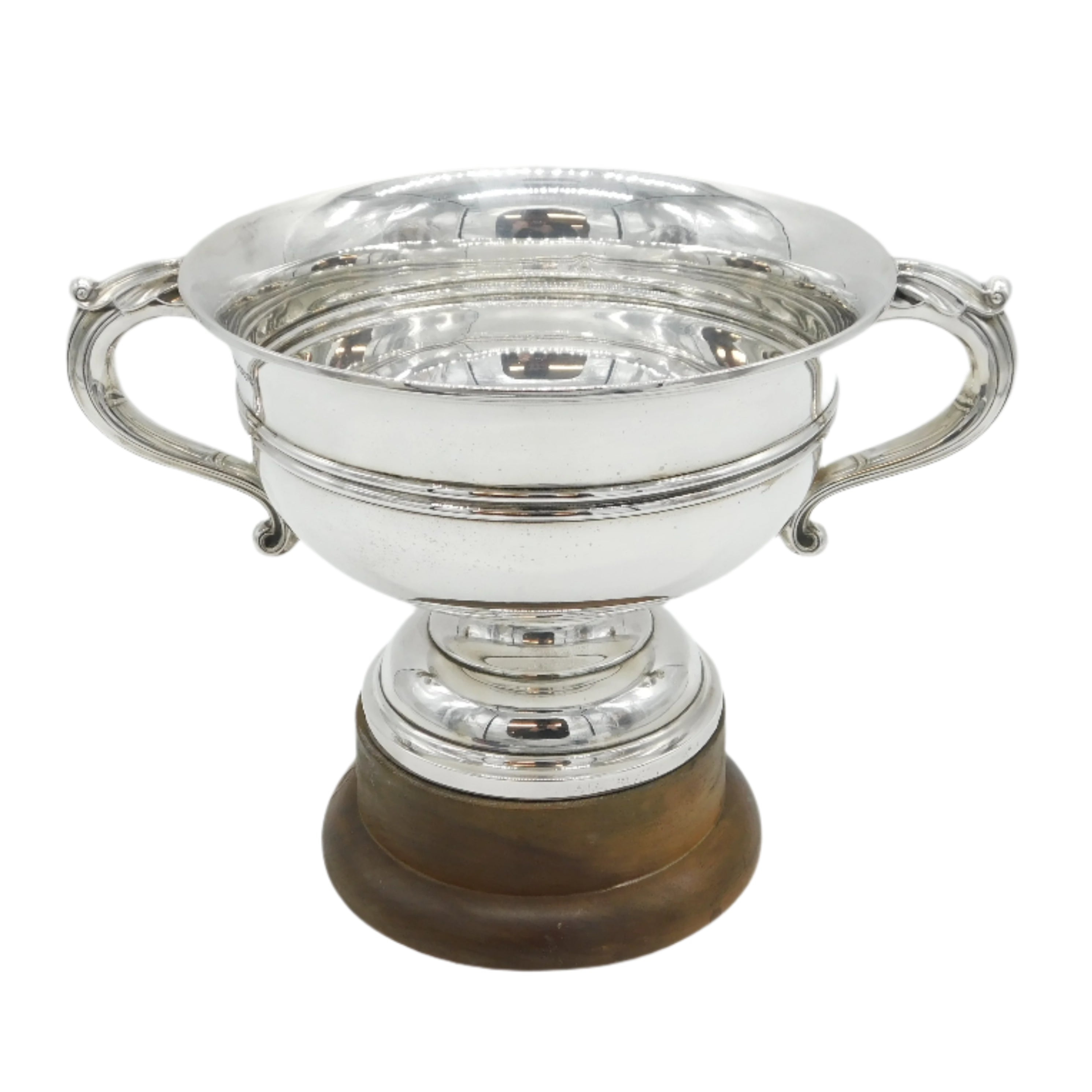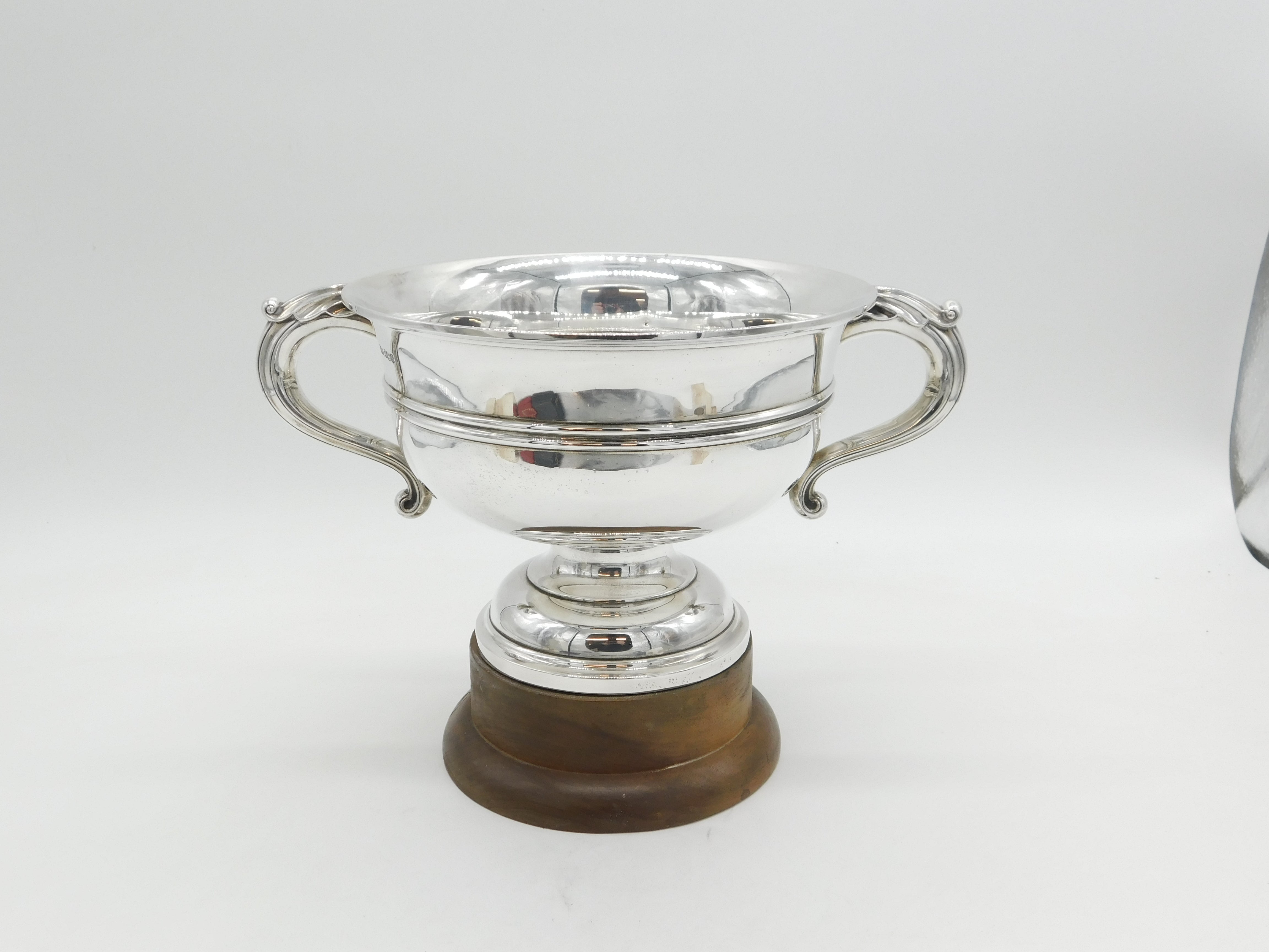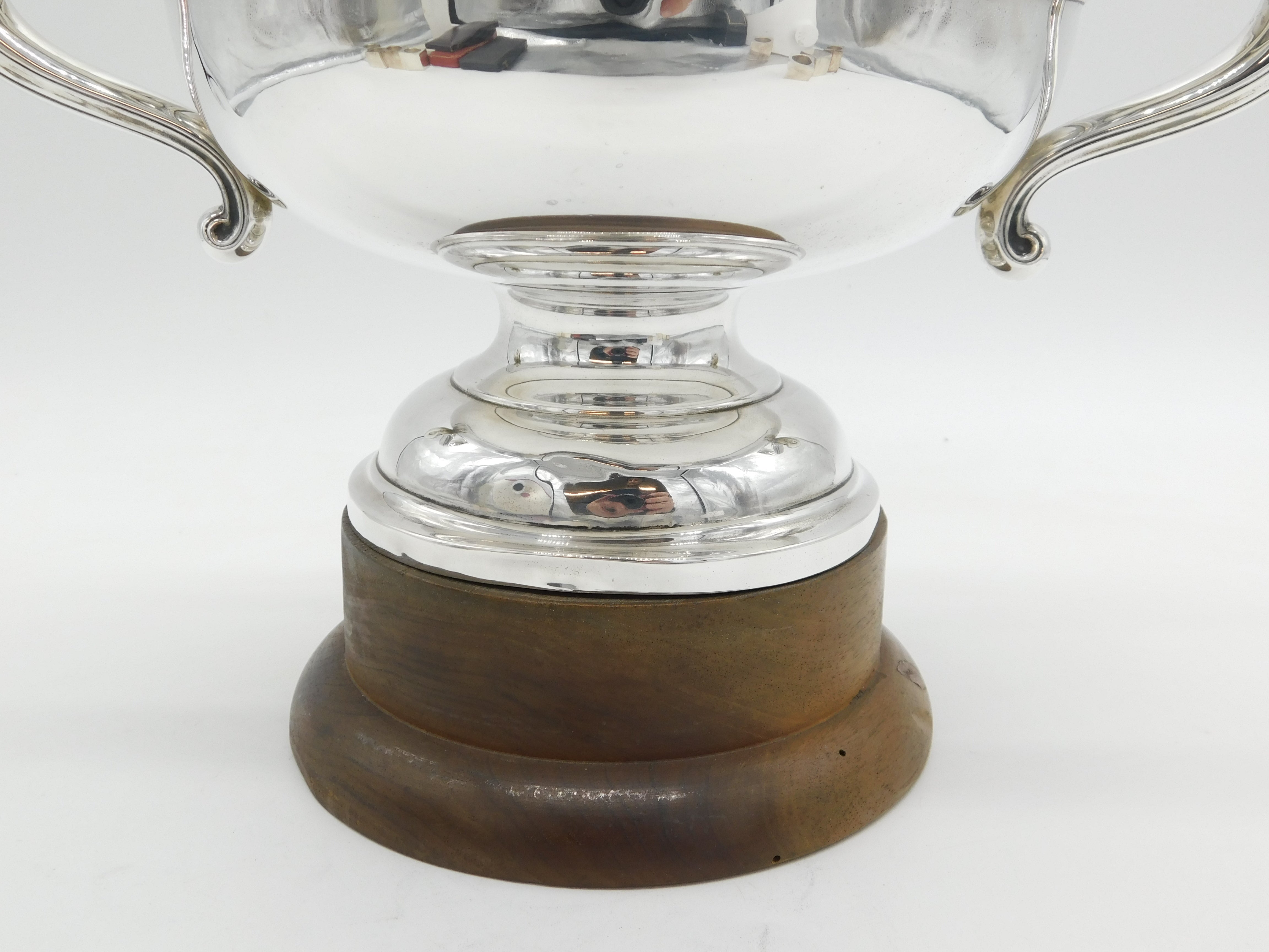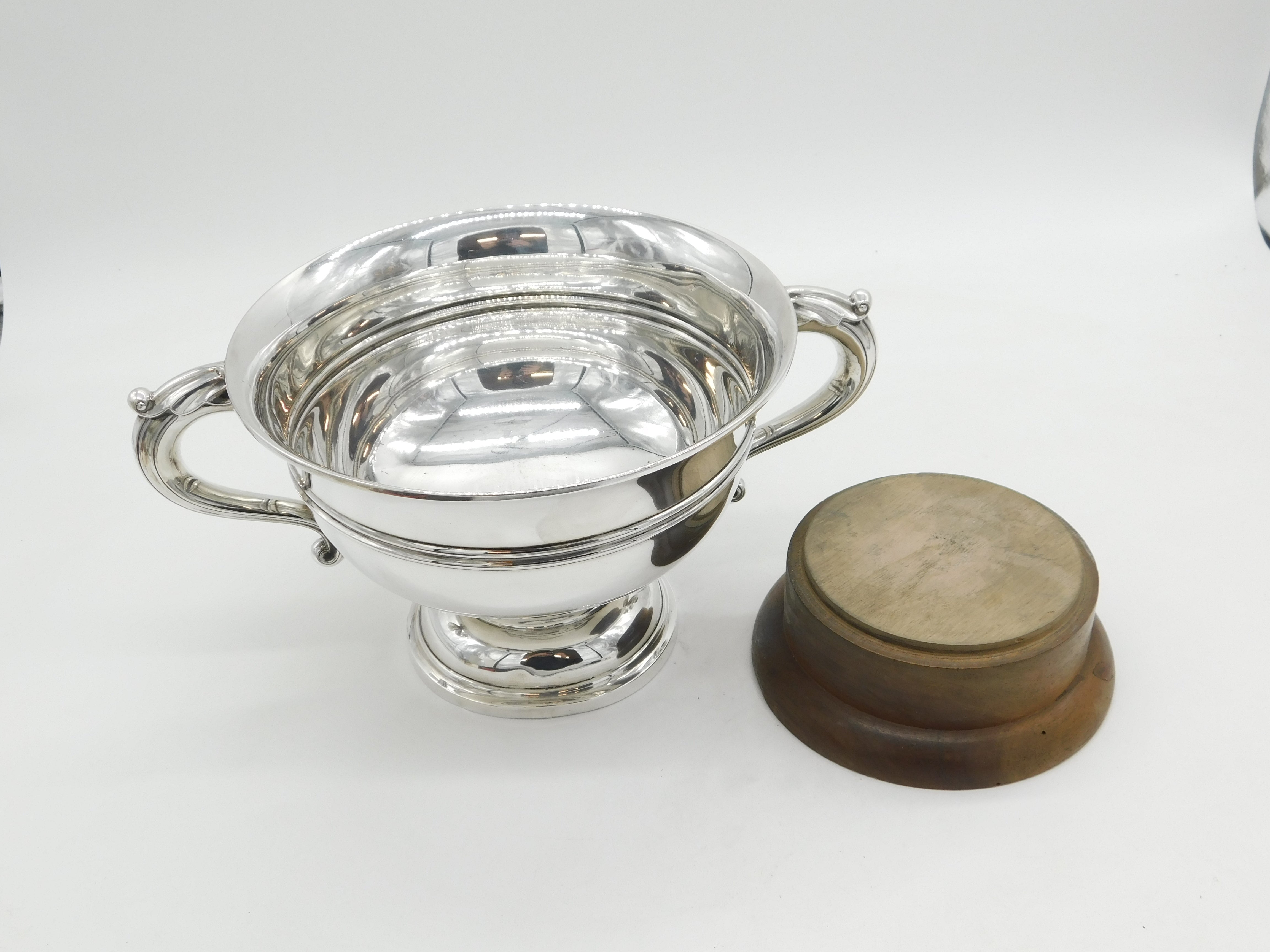 Details: A fantastic and wonderfully designed antique art deco large sterling silver two-handed sporting trophy with superb detailing to include lovely wooden base and no prior engraving so perfect for a sporting or other event, bold hallmarks Sheffield 1922 by Walker & Hall. This is a wonderful item that would make a perfect gift or addition to any collection.
