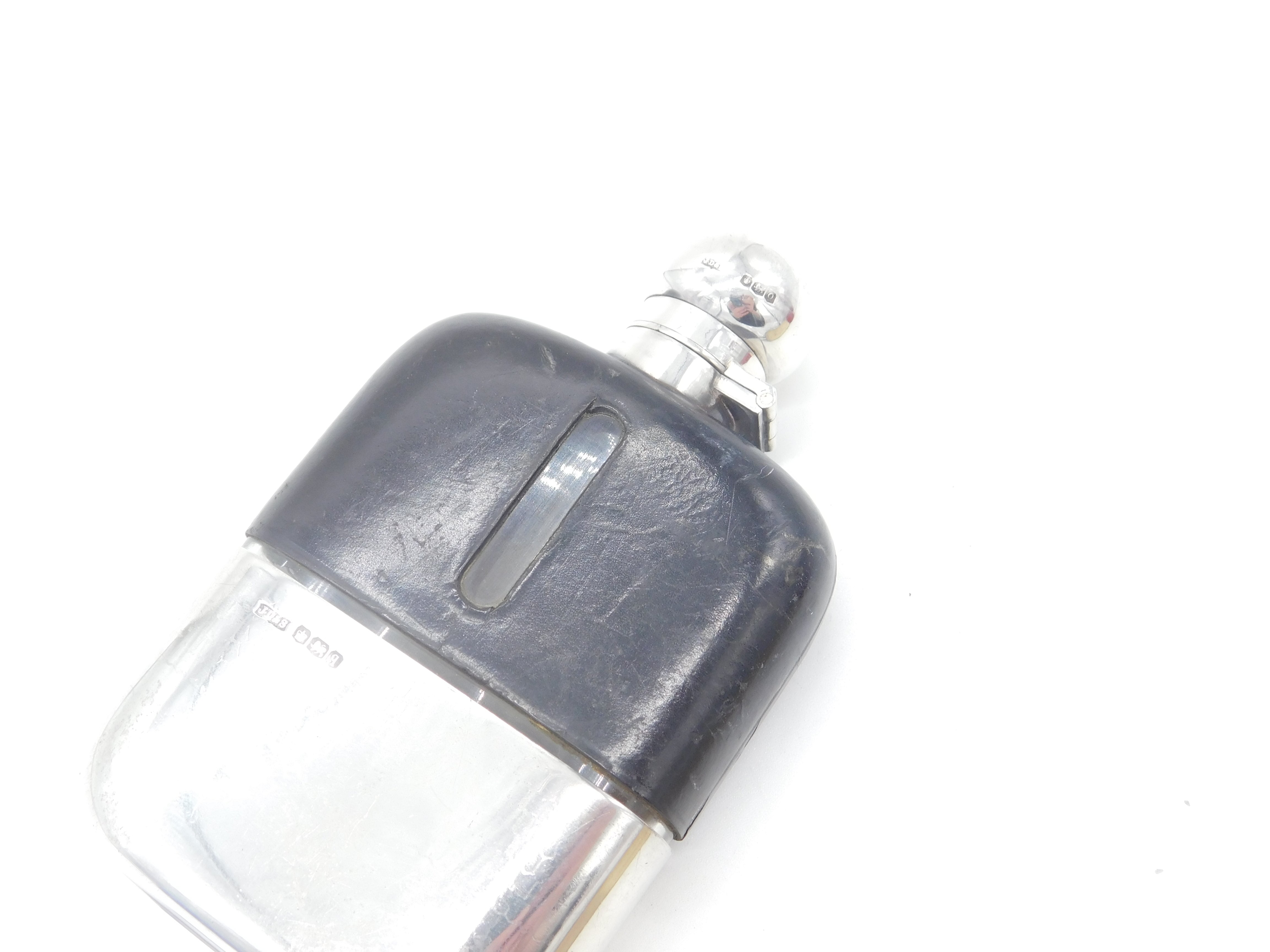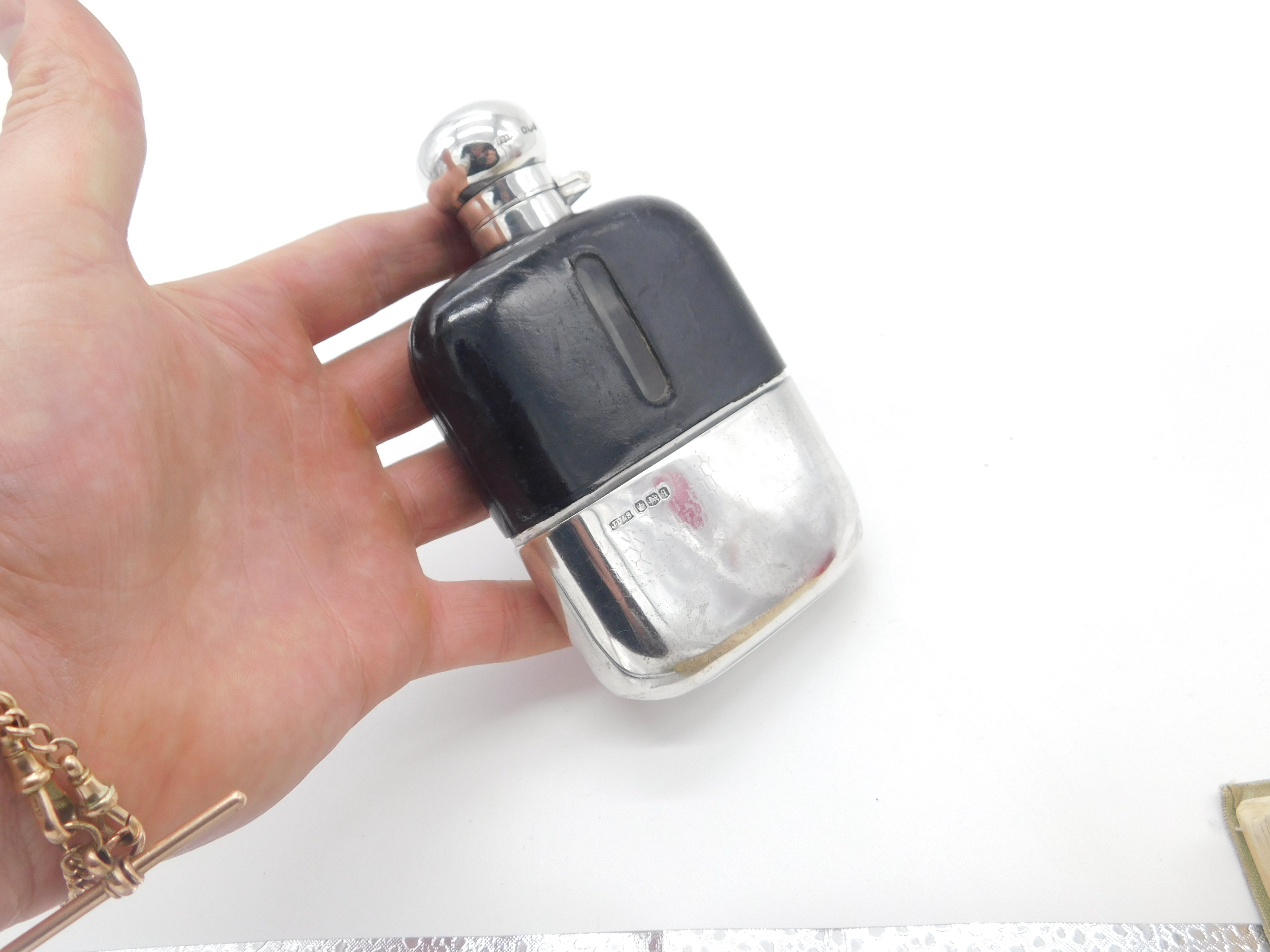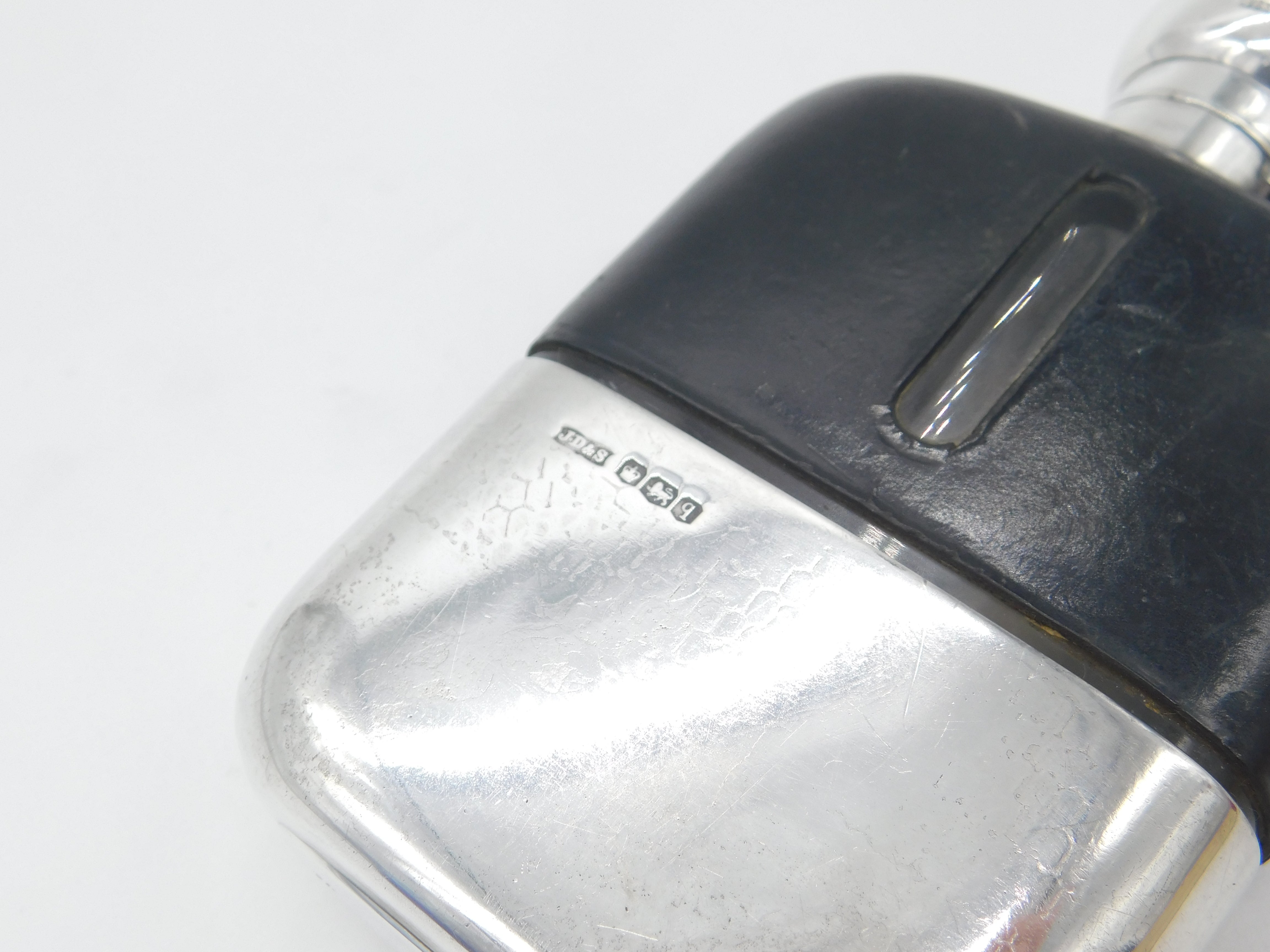Sterling Silver & Leather Hip Flask & Stirrup Cup Antique 1933 Sheffield Art Deco