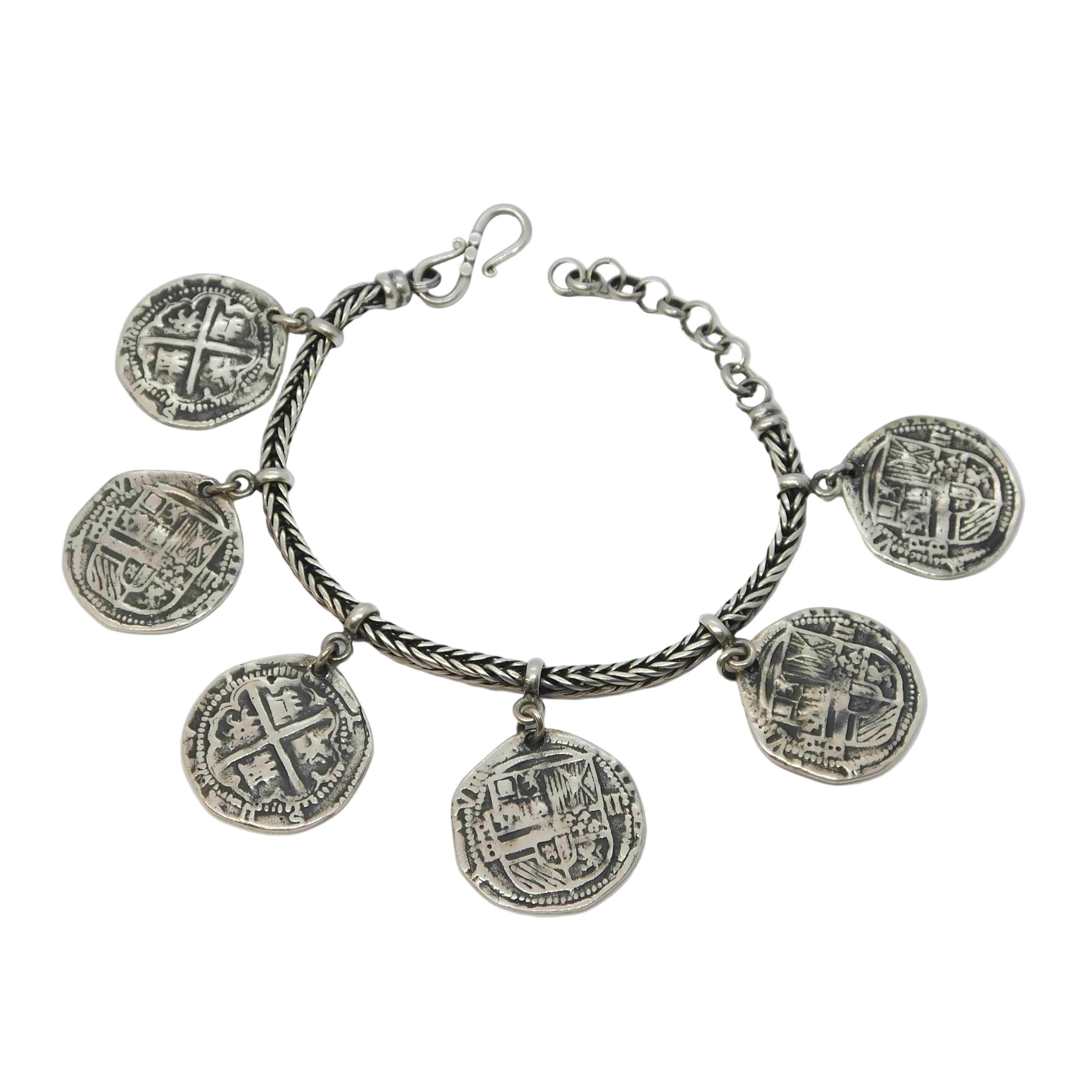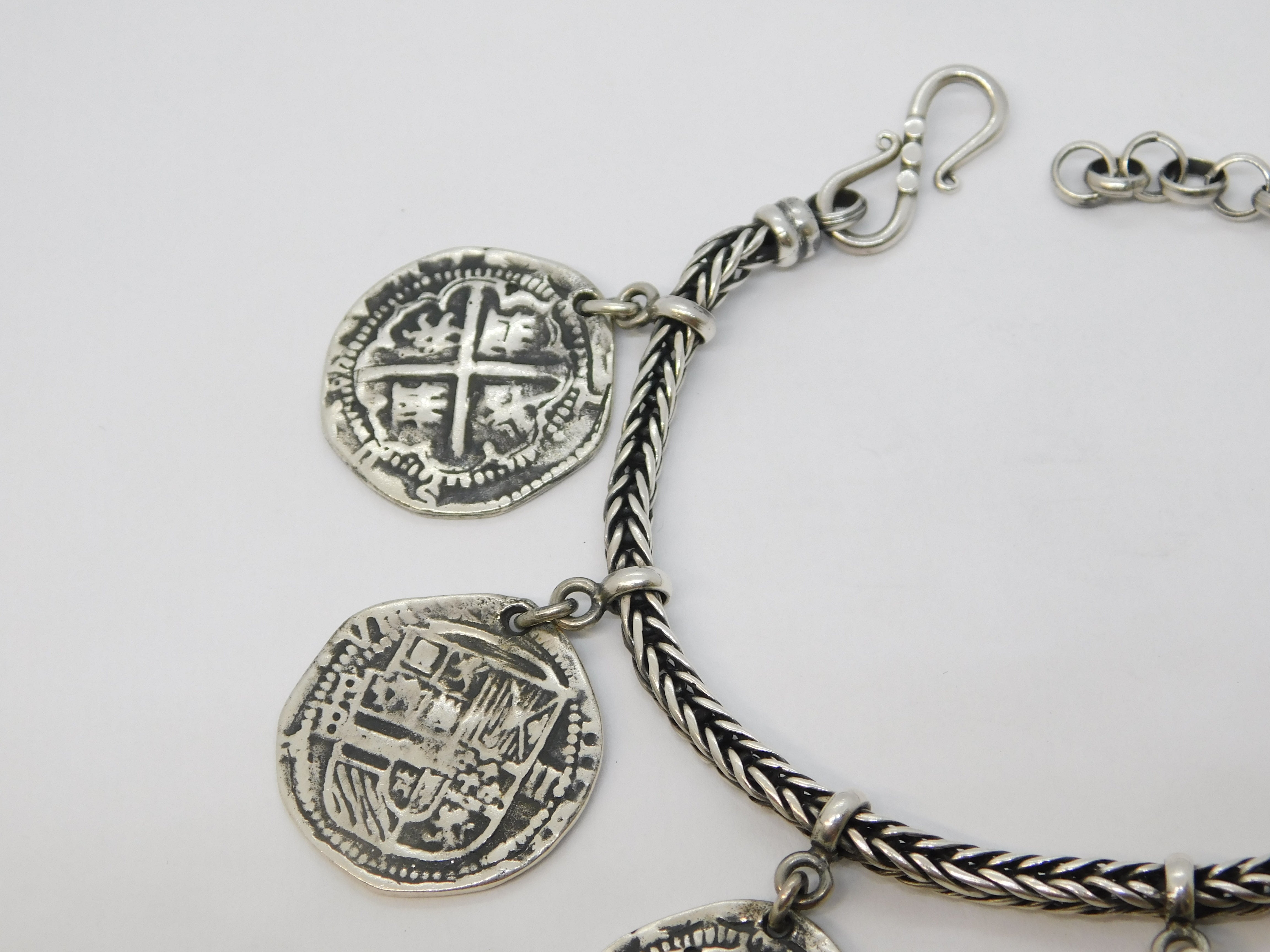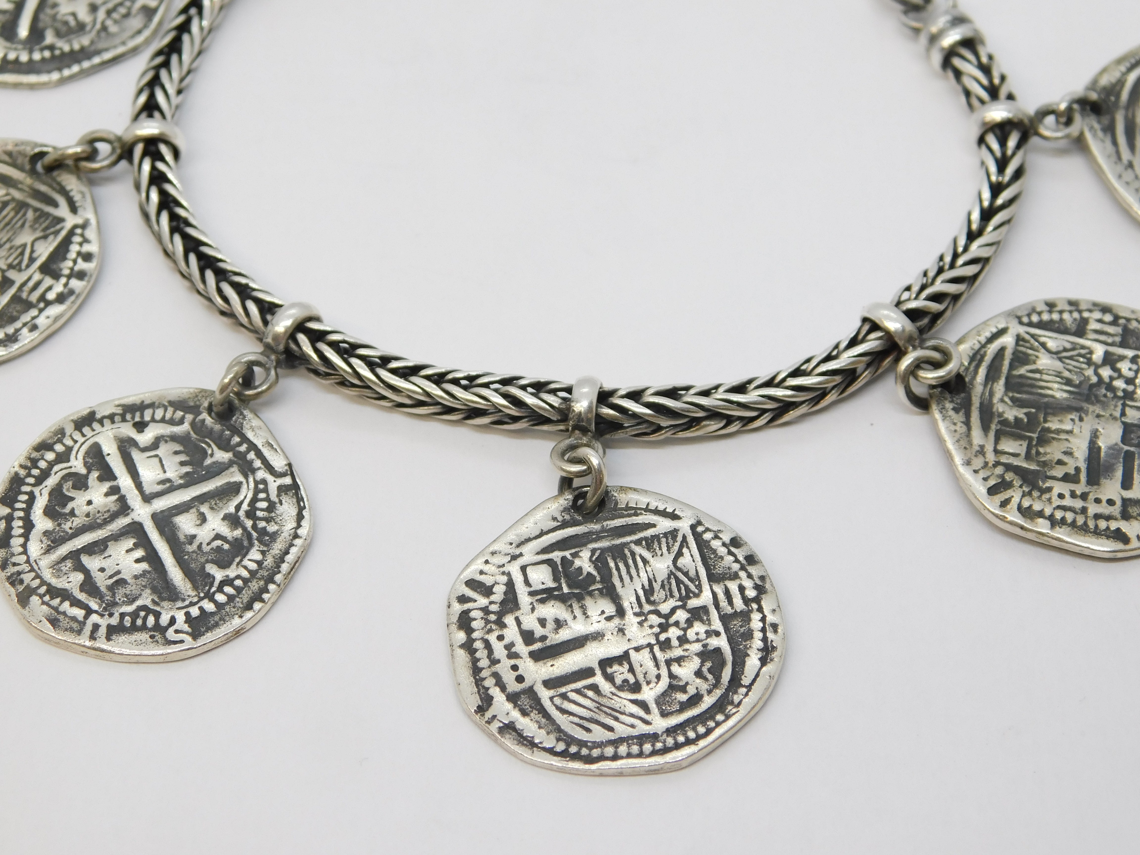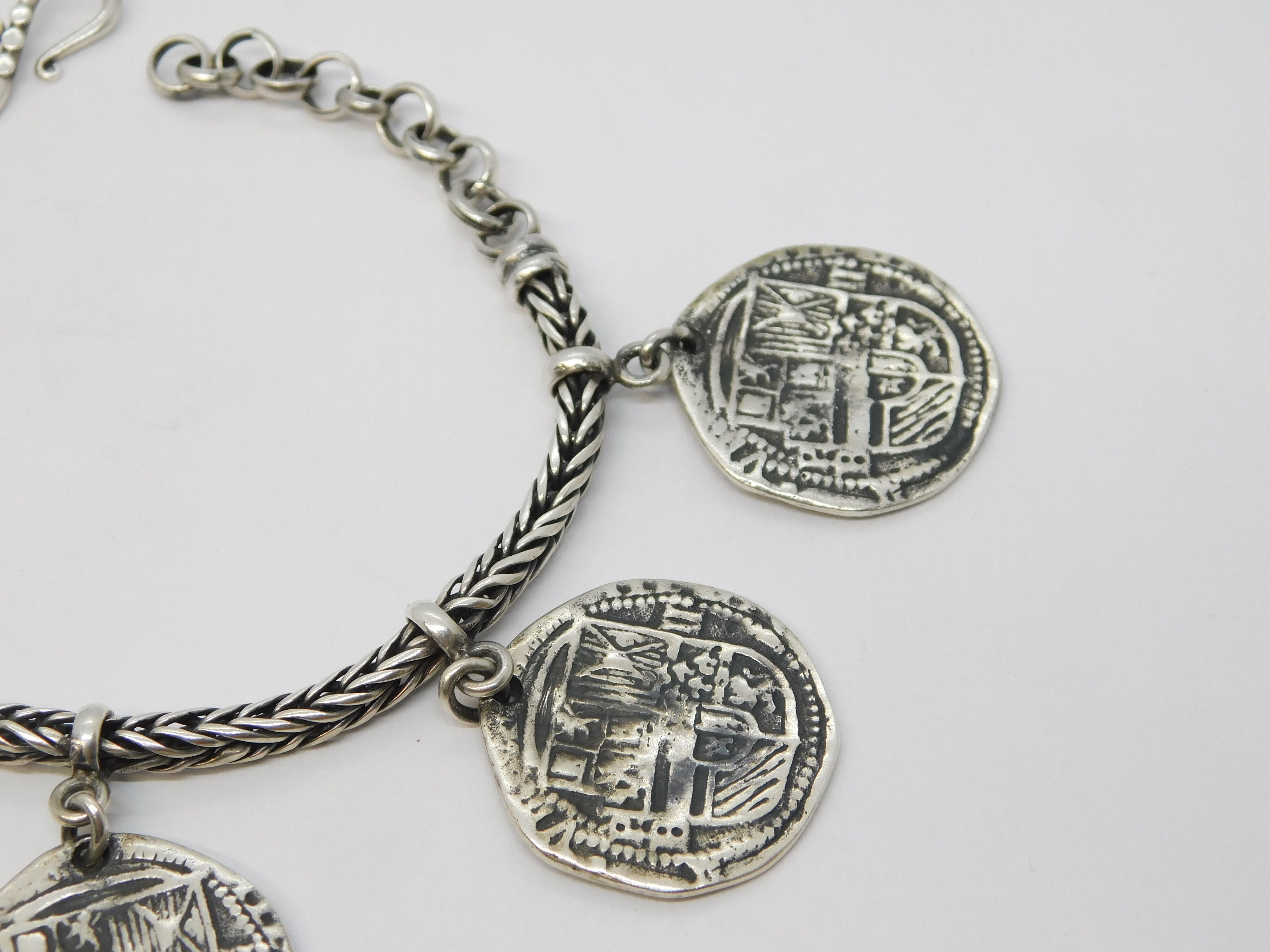 Sterling Silver Medieval Style Hammered Coin Byzantine Bracelet Vintage c1970s