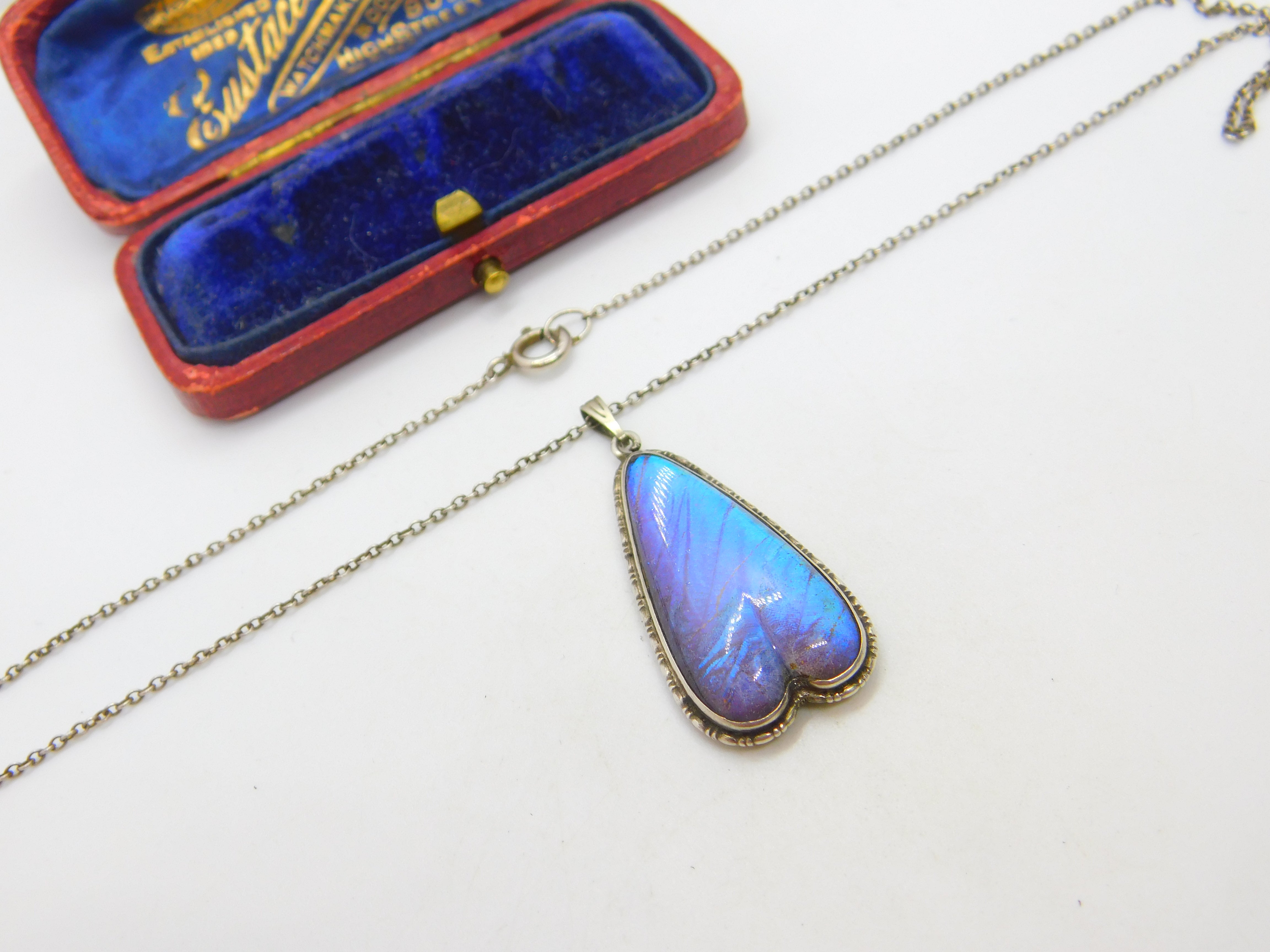 Details: A fantastic and wonderfully designed antique art deco sterling silver morpho butterfly wing upside down heart drop pendant necklace hallmarked to the reverse c1920. This is a wonderful item that would make a perfect gift or addition to any collection. The BOX pictured is for PRESENTATION ONLY and is NOT included in the listings but used to frame the pictures unless specifically stated otherwise.