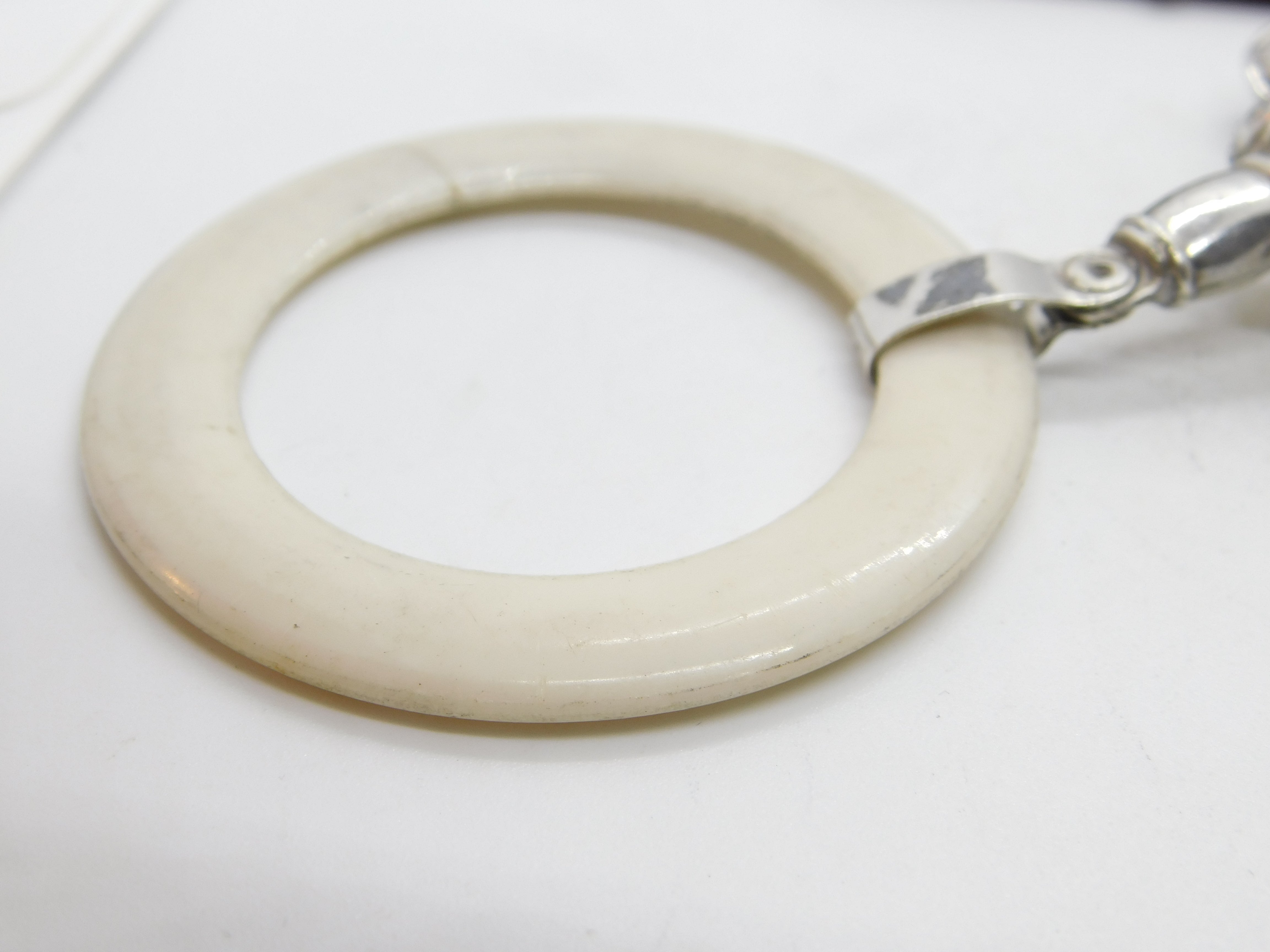 Sterling Silver, Mother of Pearl & Bakelite Baby Rattle & Teether 1930 Antique