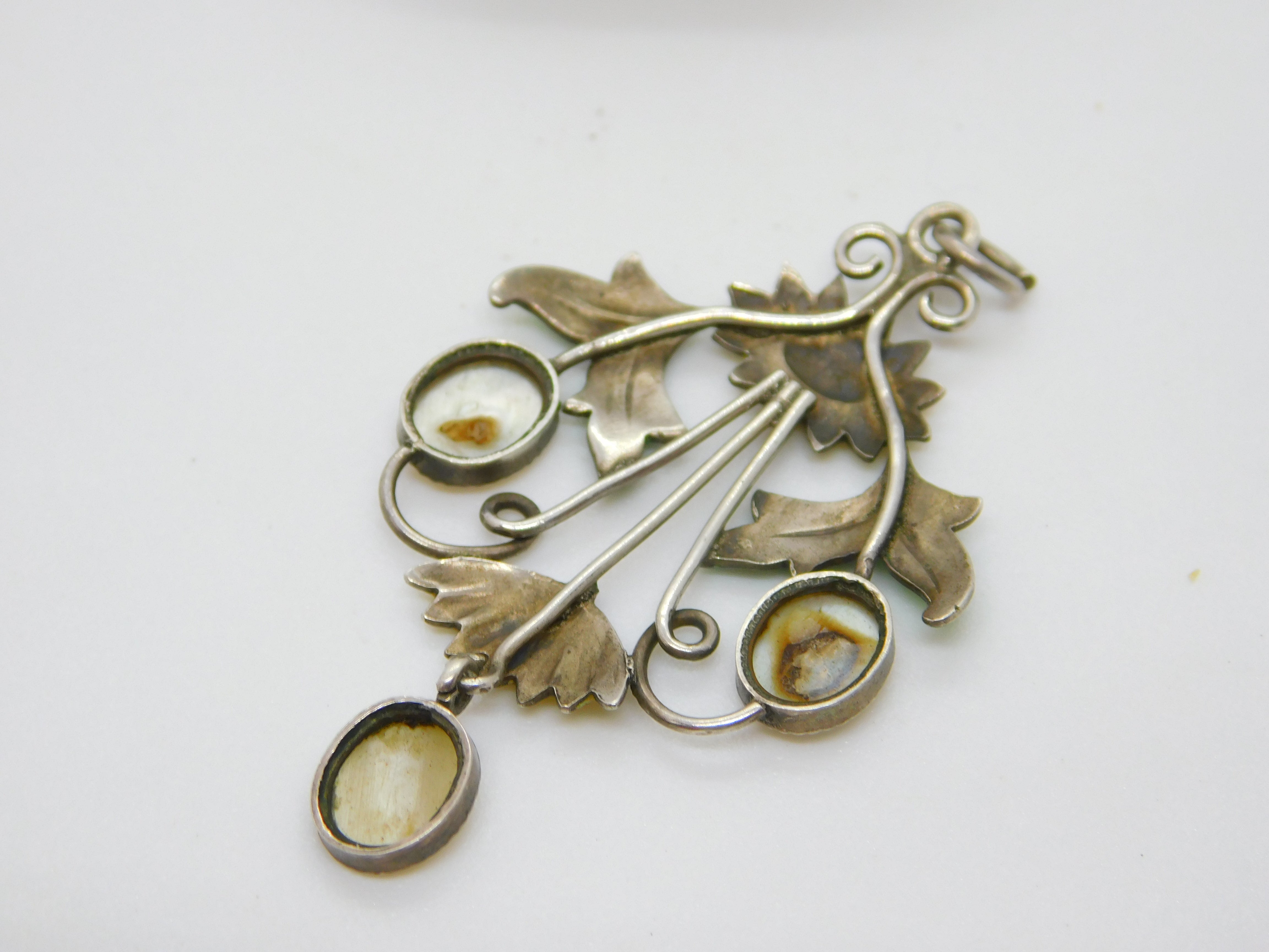 Sterling Silver, Mother of Pearl & Enamel Sunflower Pendant Antique c1920 Deco