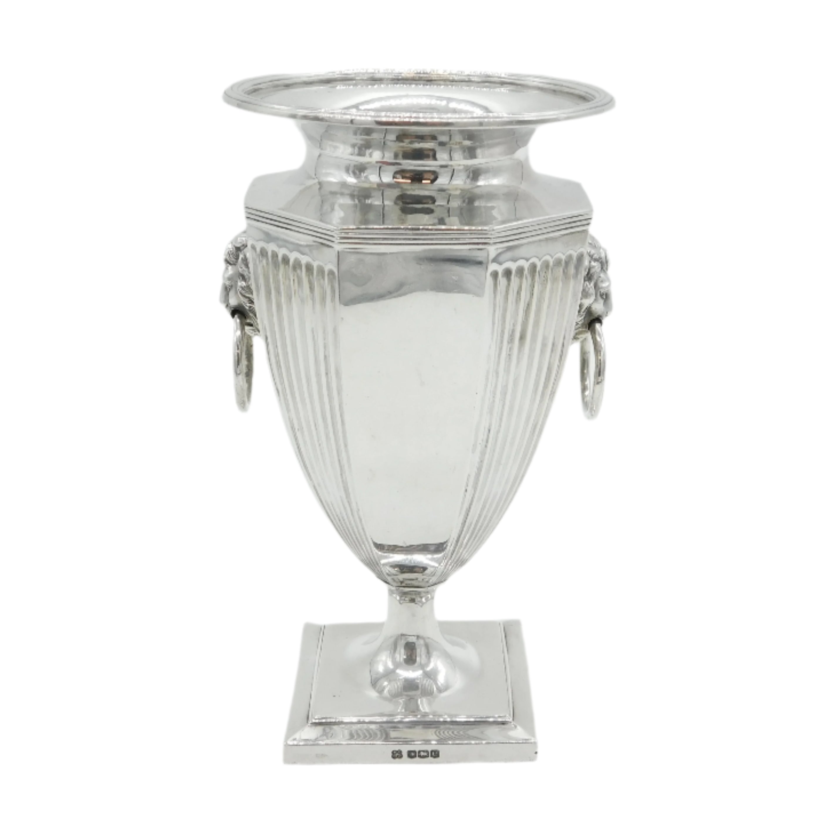 Sterling Silver Pedestal Flower Vase Lion Mask Handles Antique 1922 Sheffield