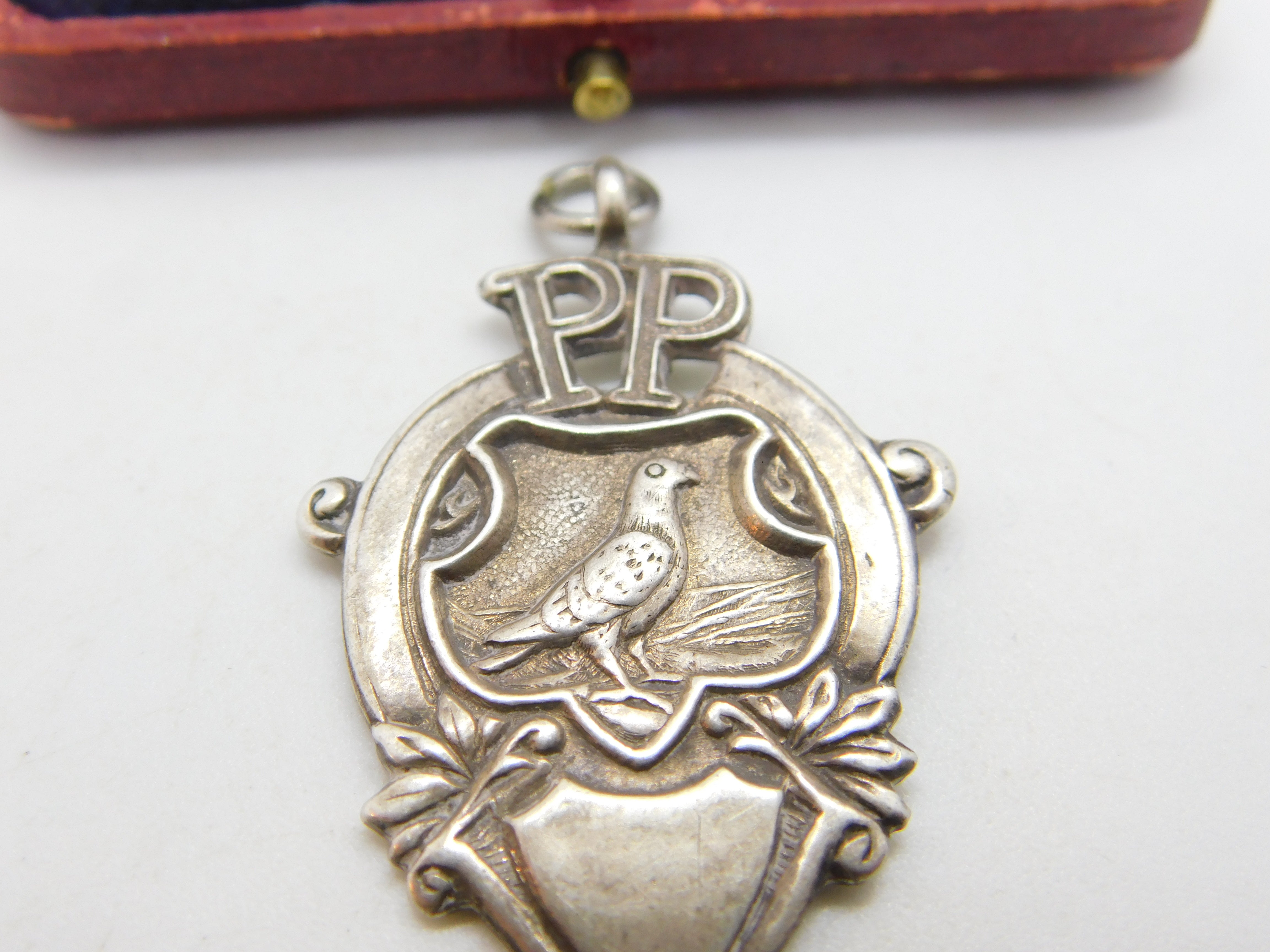 Sterling Silver Pigeon Fanciers Fob Medal 1925 Birmingham Antique Art Deco