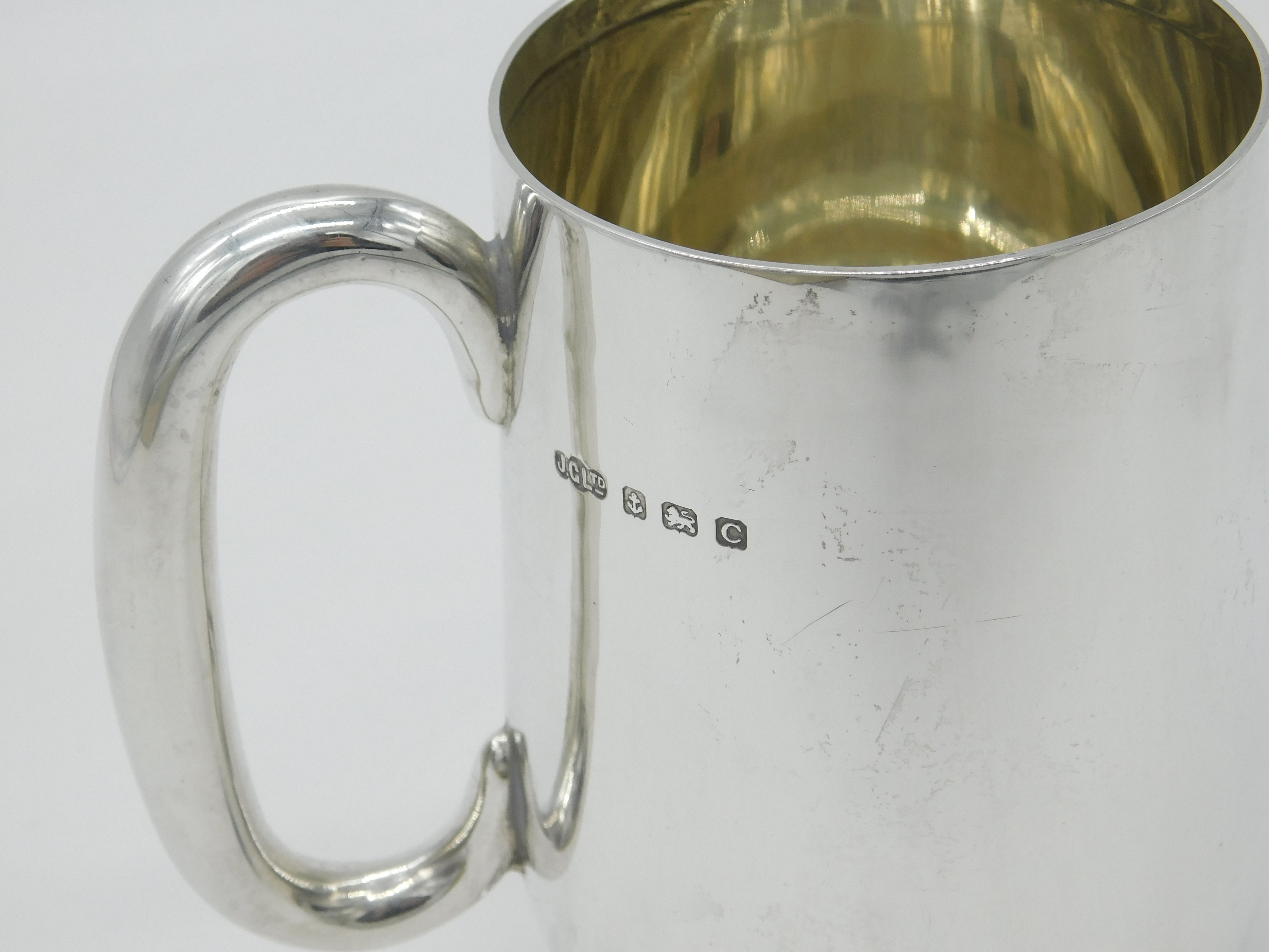 Sterling Silver Pint Tankard Mug Antique 1927 Birmingham Art Deco