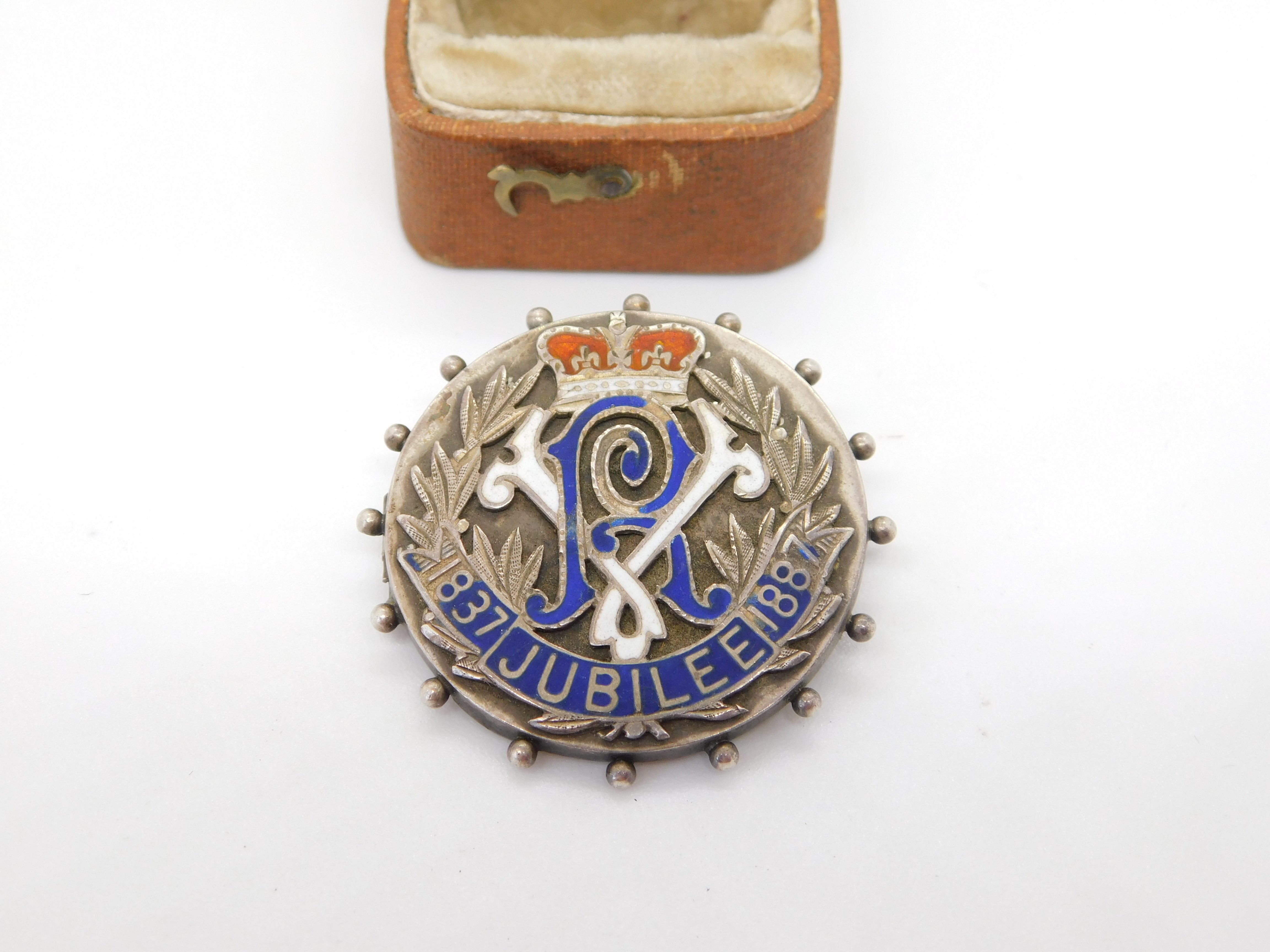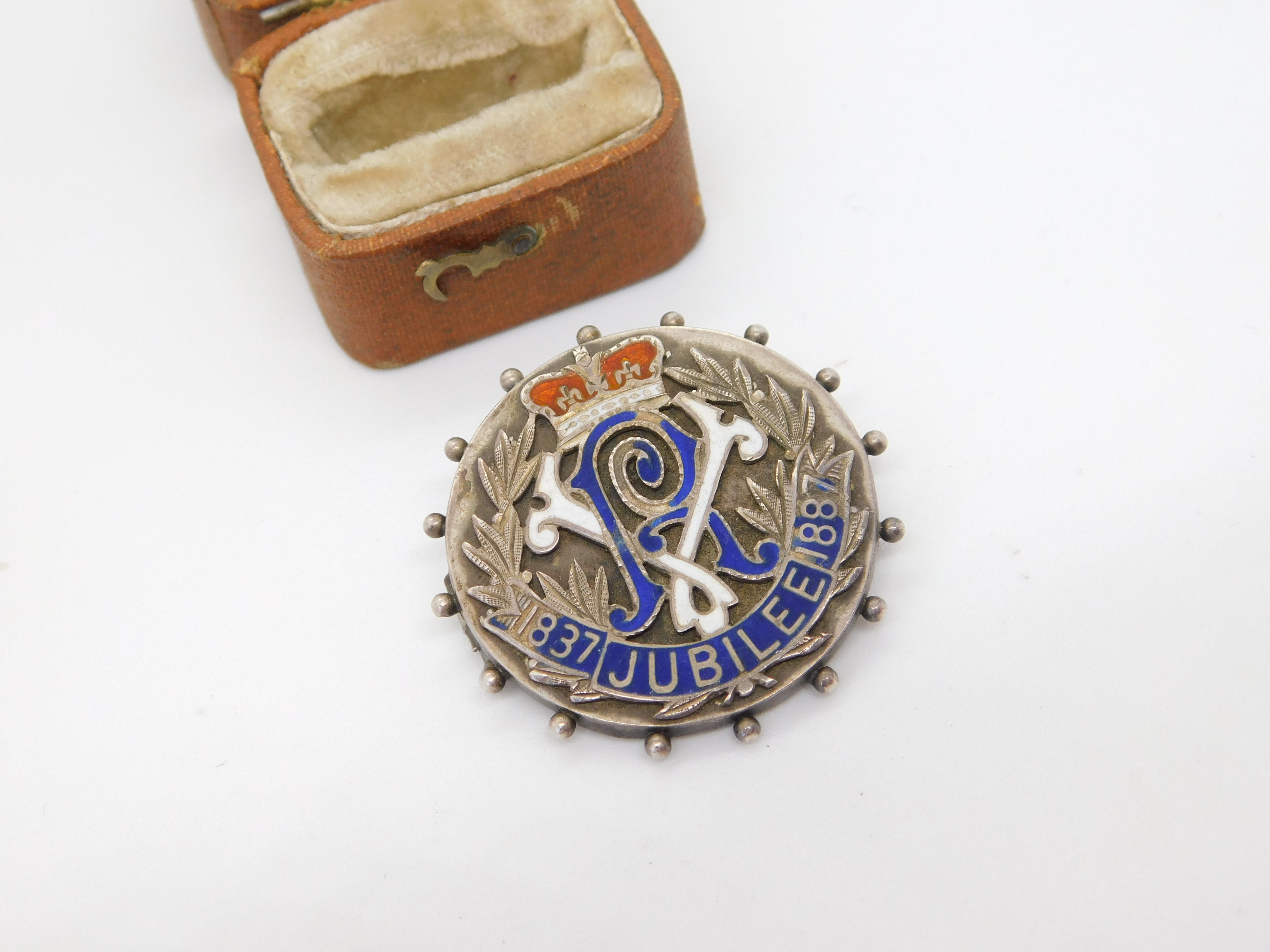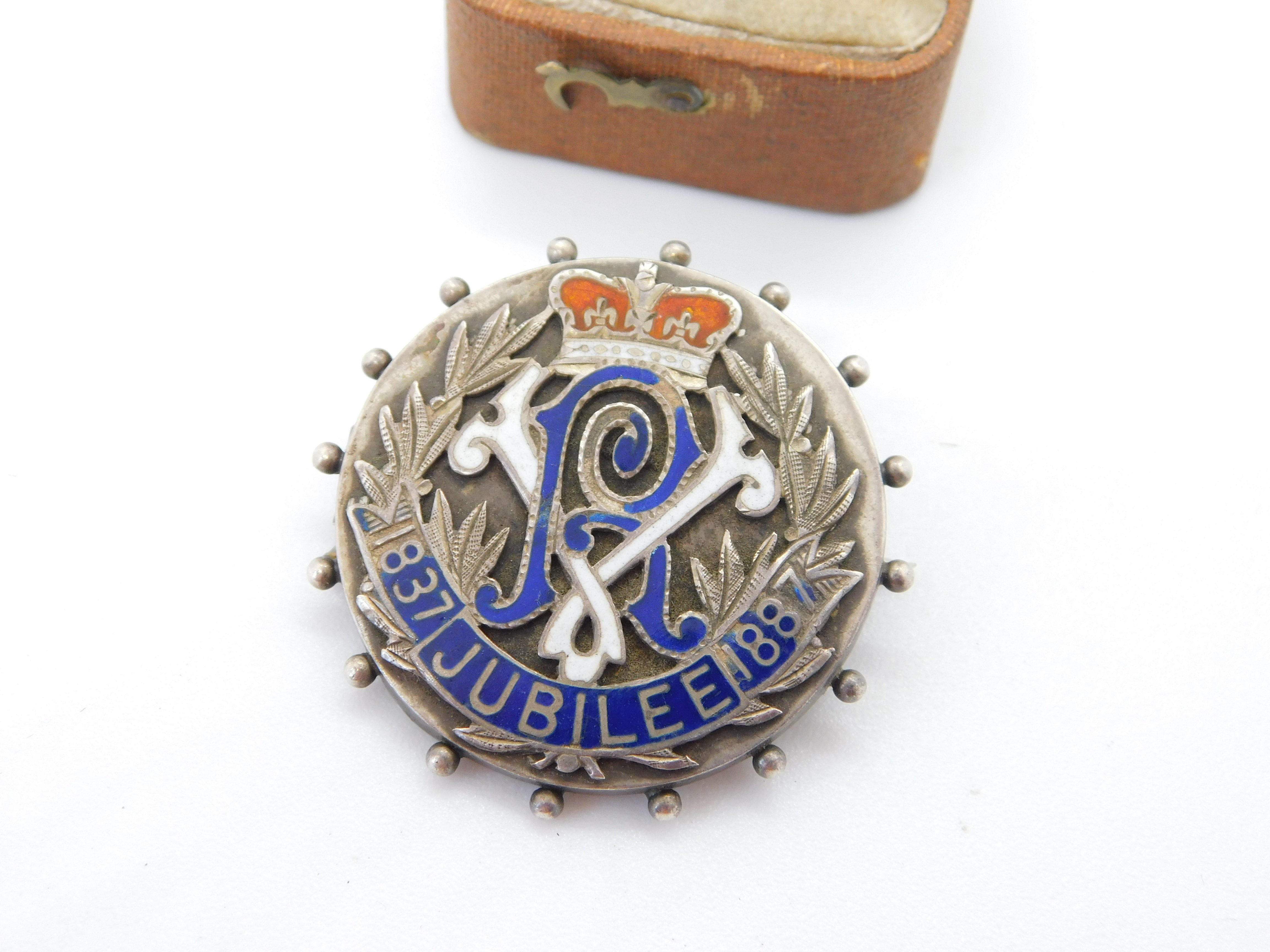 Sterling Silver Queen Victoria Golden Jubilee Enamel Brooch Pin Antique 1887