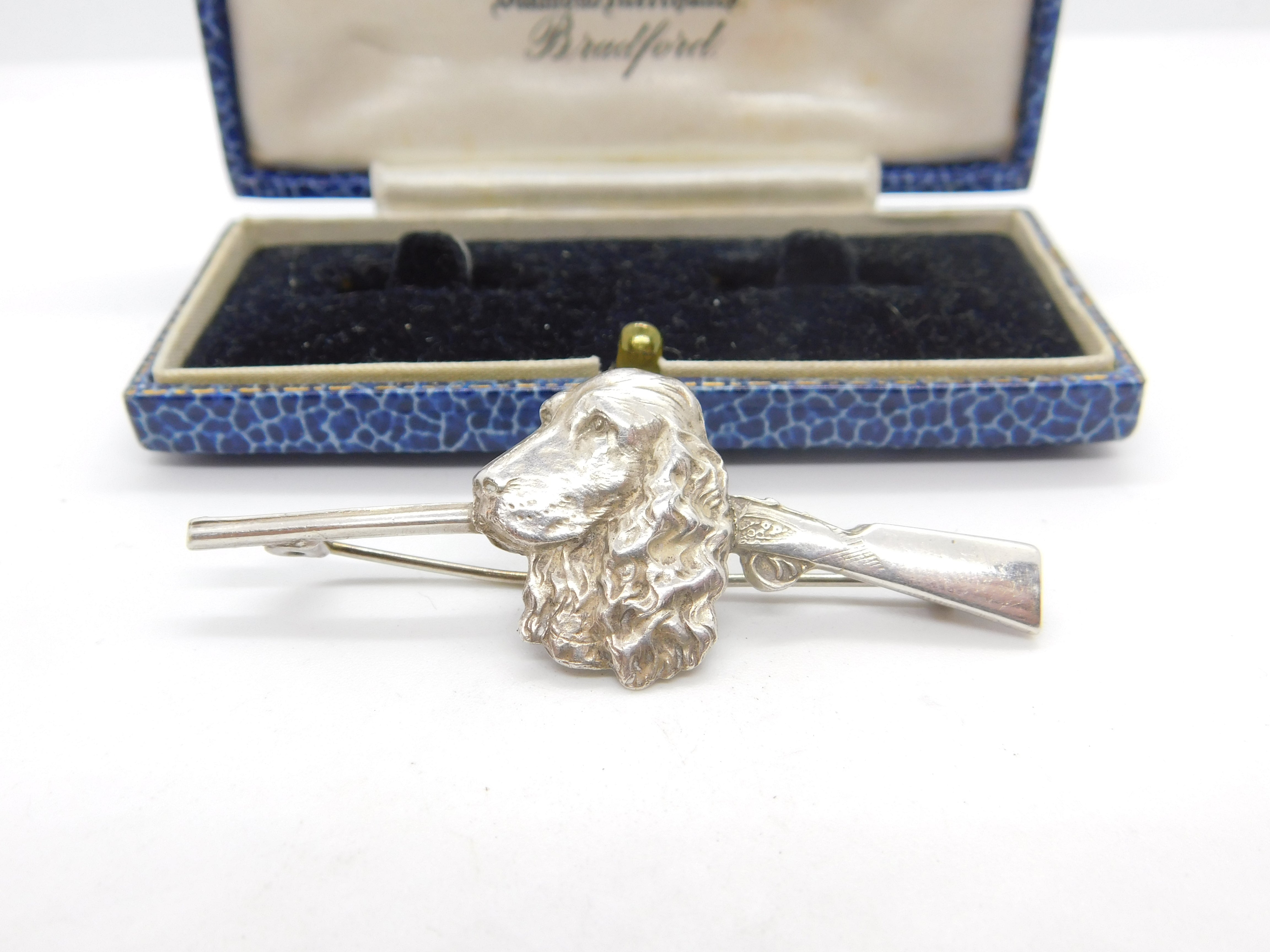 Sterling Silver Retriever Dog & Gun Shooting Interest Brooch Antique c1930 Deco
