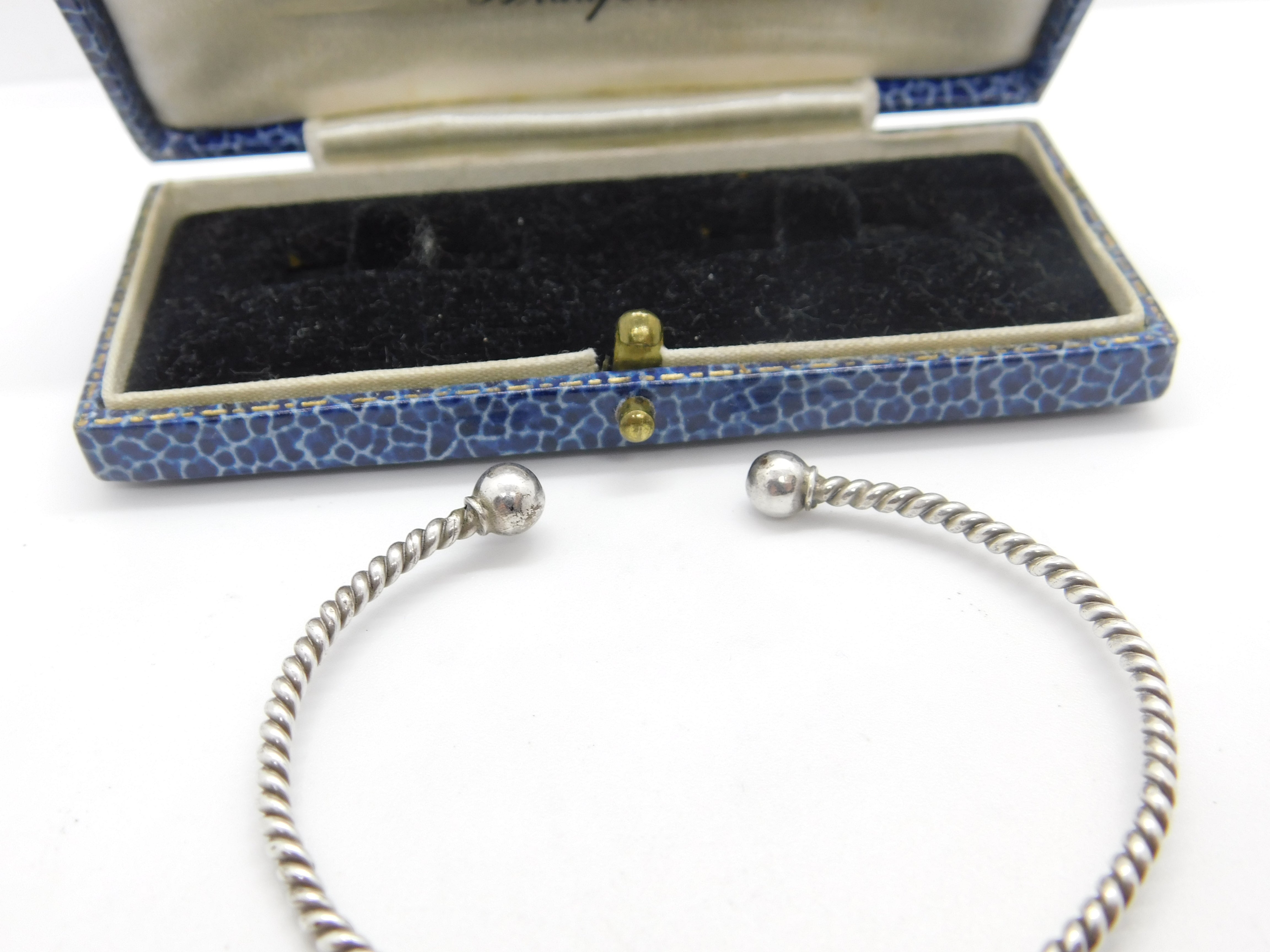 Sterling Silver Rope Twist Figa Hand Bangle Bracelet Antique c1920 Art Deco