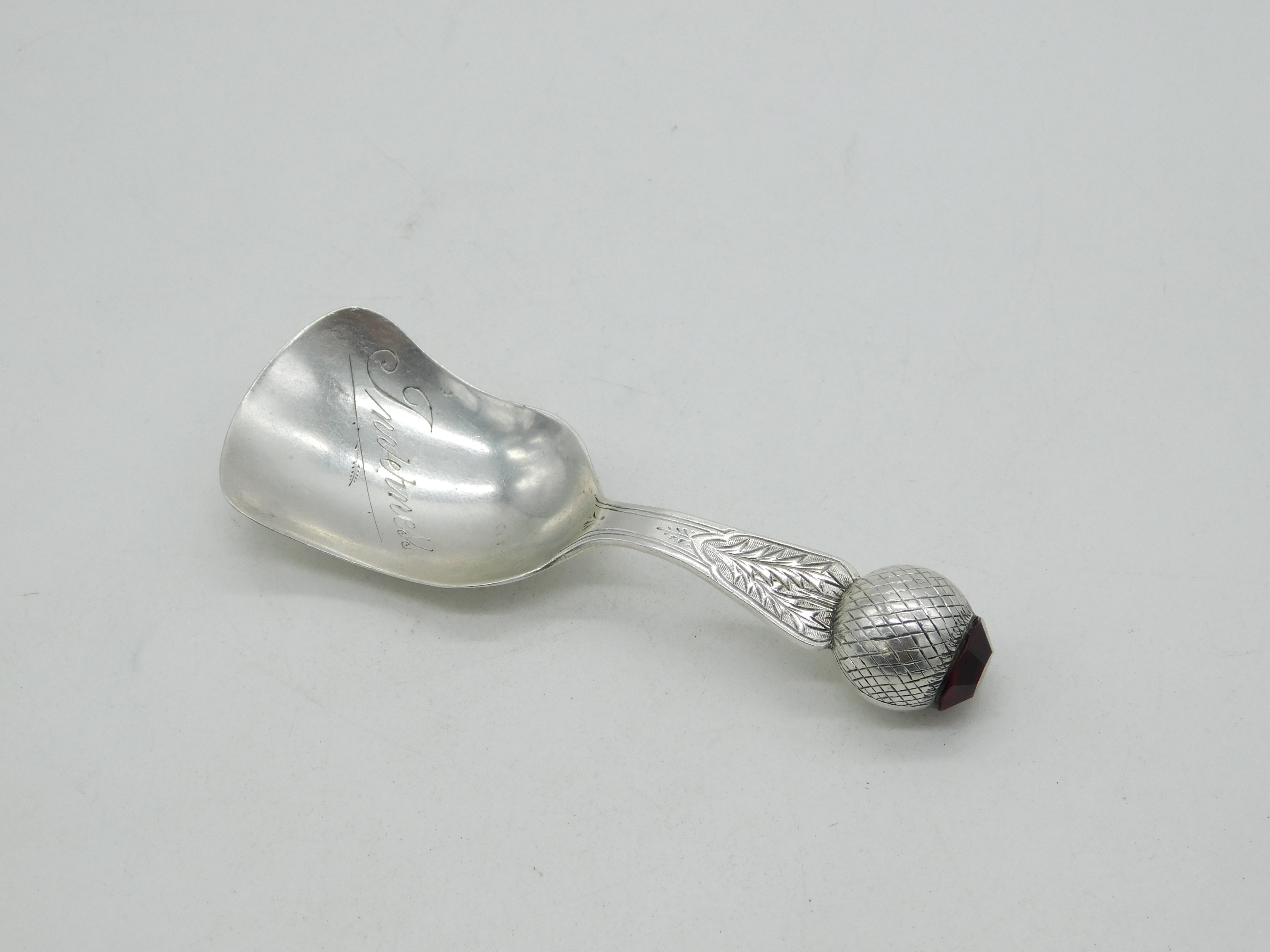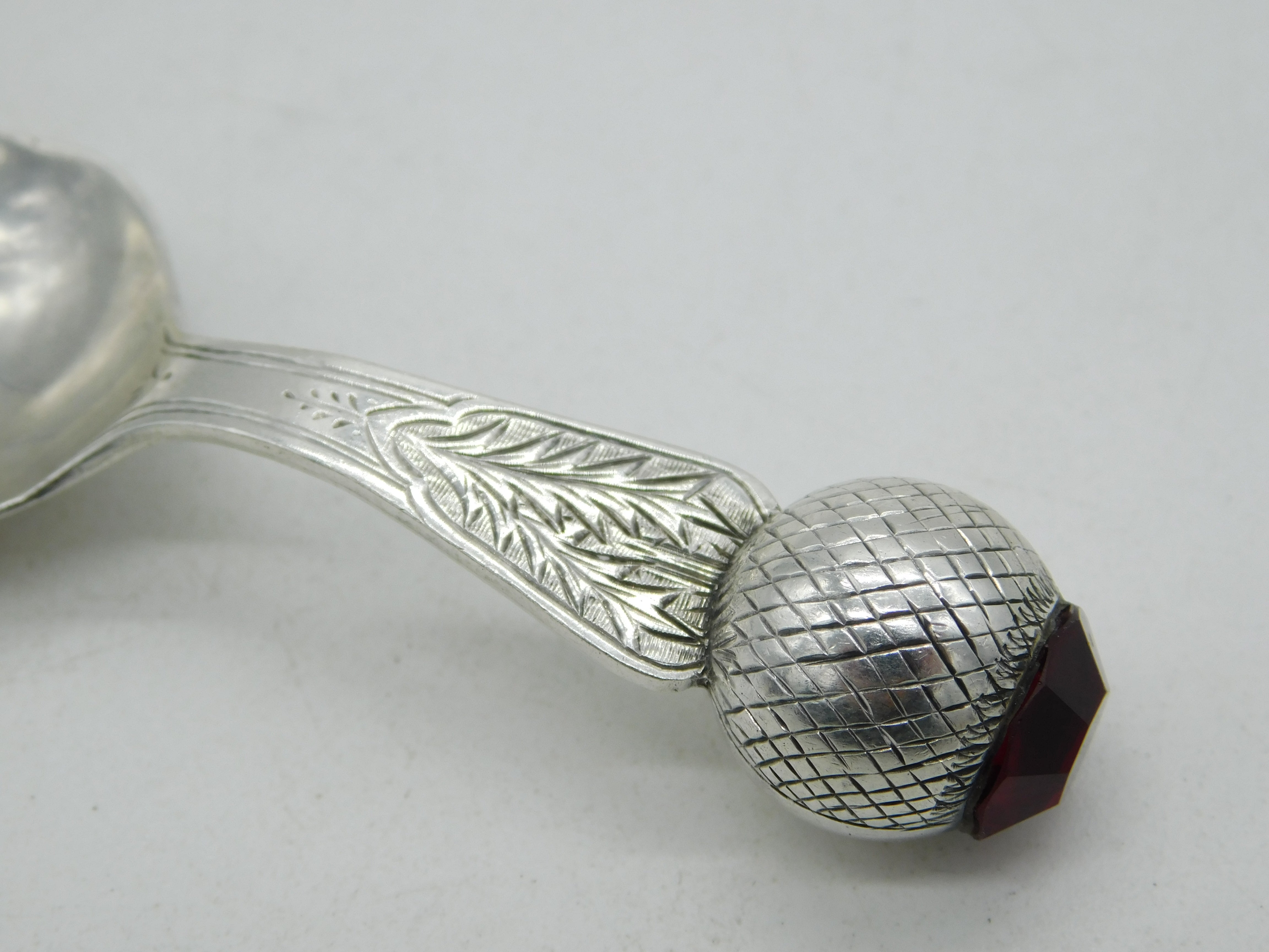 Sterling Silver Scottish Thistle Form Inverness Souvenir Tea Caddy Spoon Antique 1928 Birmingham
