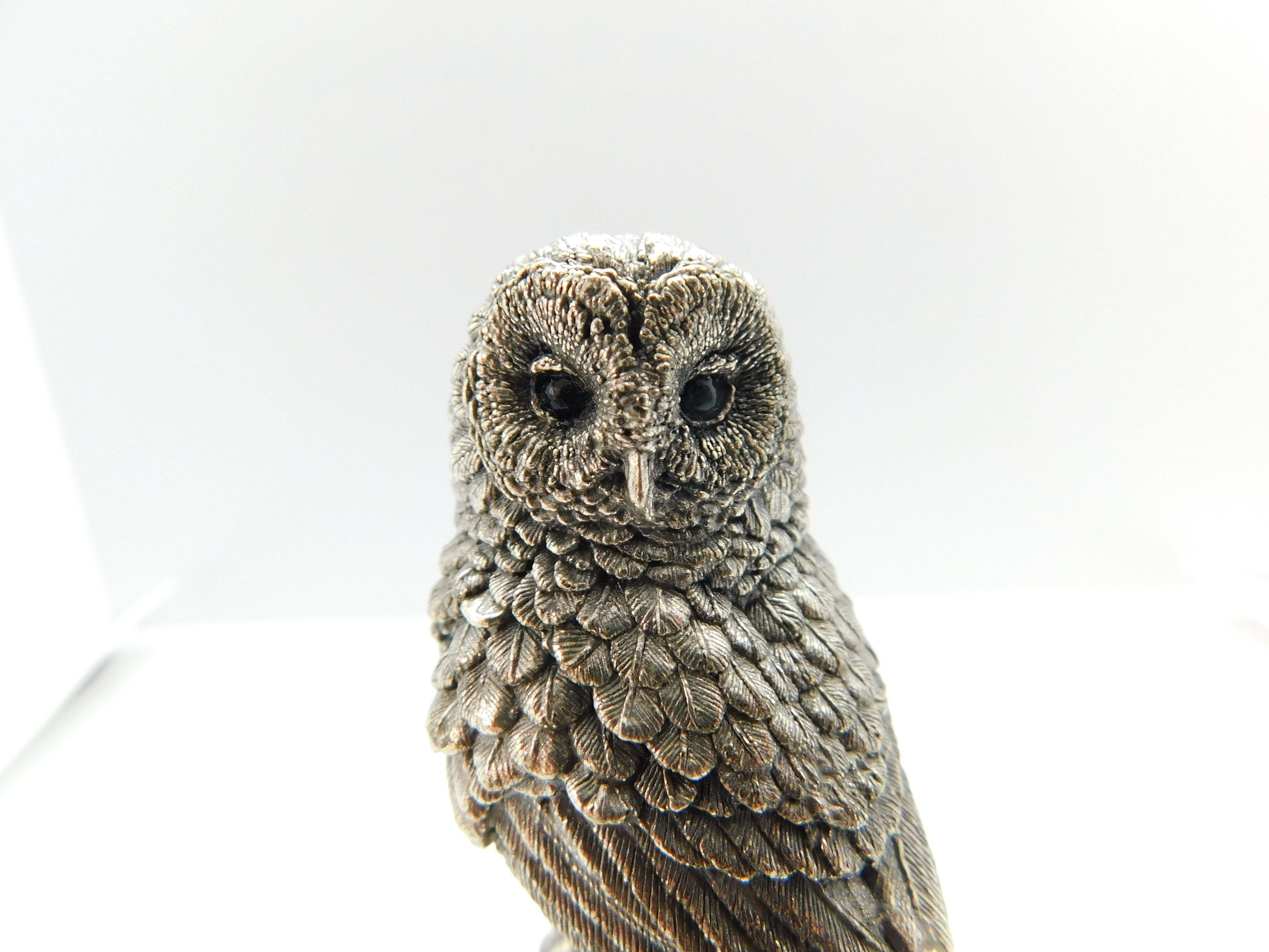 Sterling Silver Sitting Wise Owl Figurine Sculpture 1989 Birmingham Vintage