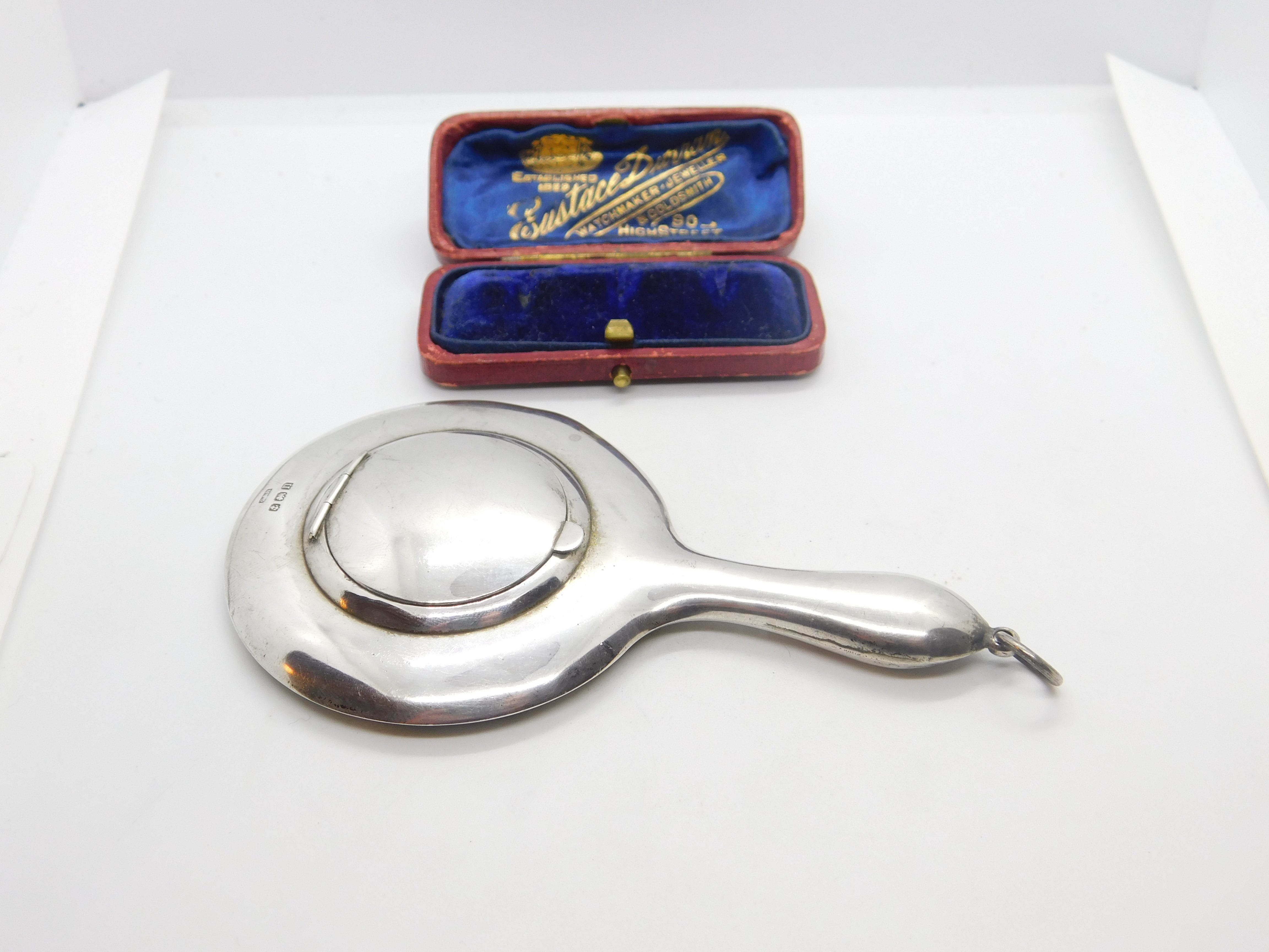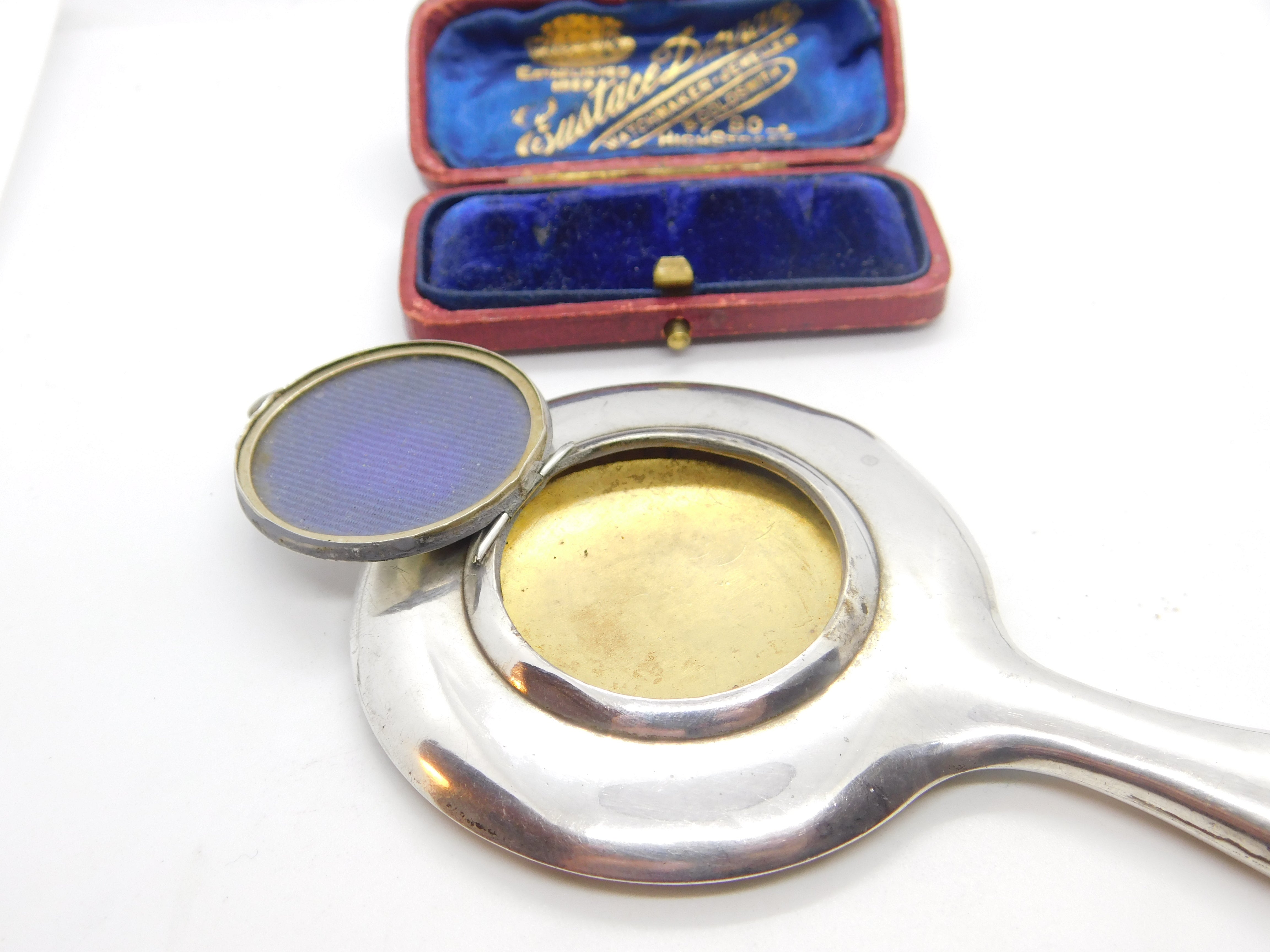 Sterling Silver Small Hand Mirror with Compact Back 1912 Birmingham Art Deco