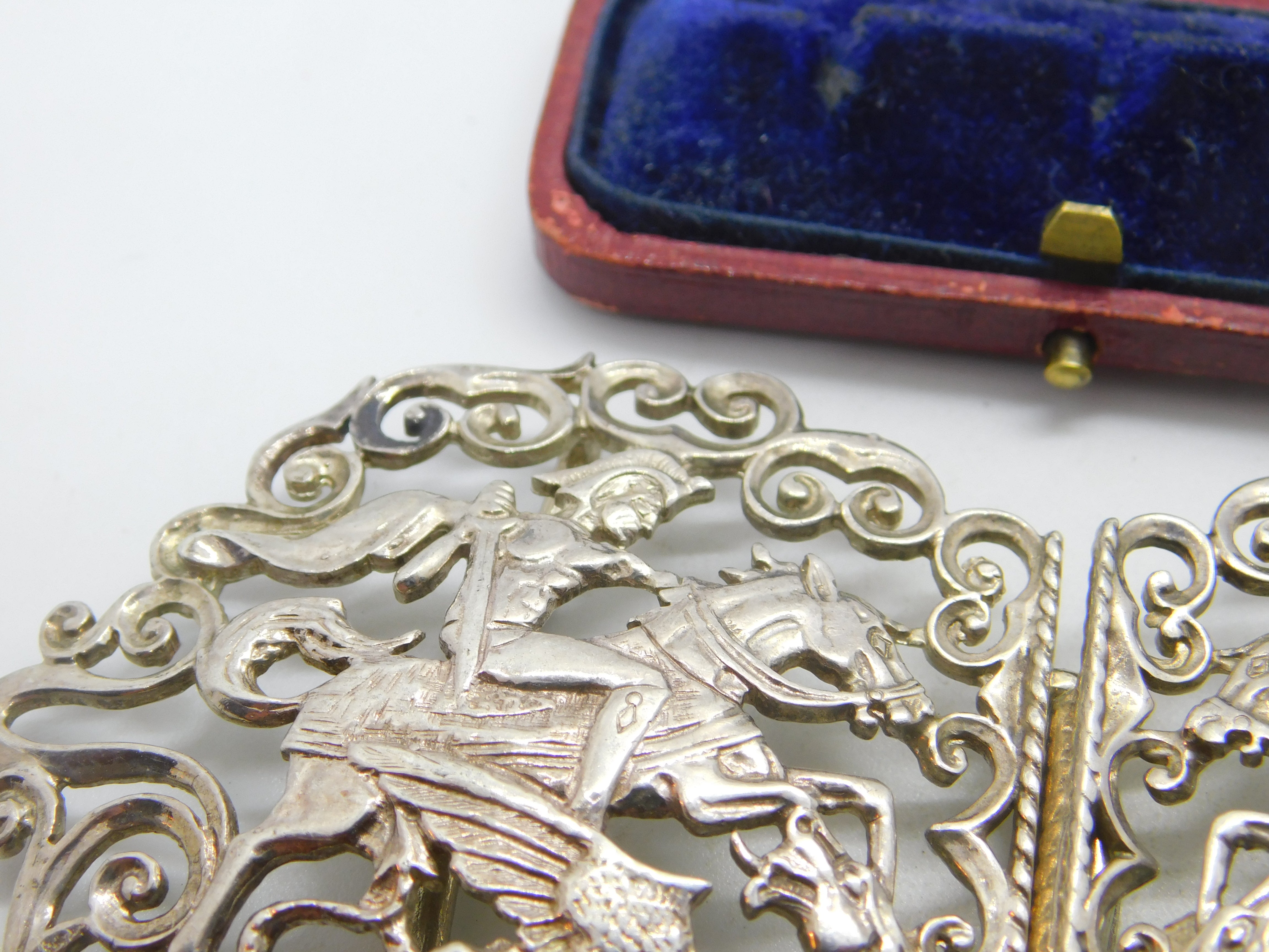 Details: A fantastic and wonderfully designed vintage sterling silver nurses buckle with St George slaying the dragon hallmarked Birmingham 1991 to the edge. This is a wonderful item that would make a perfect gift or addition to any collection. The BOX pictured is for PRESENTATION ONLY and is NOT included in the listings but used to frame the pictures unless specifically stated otherwise.