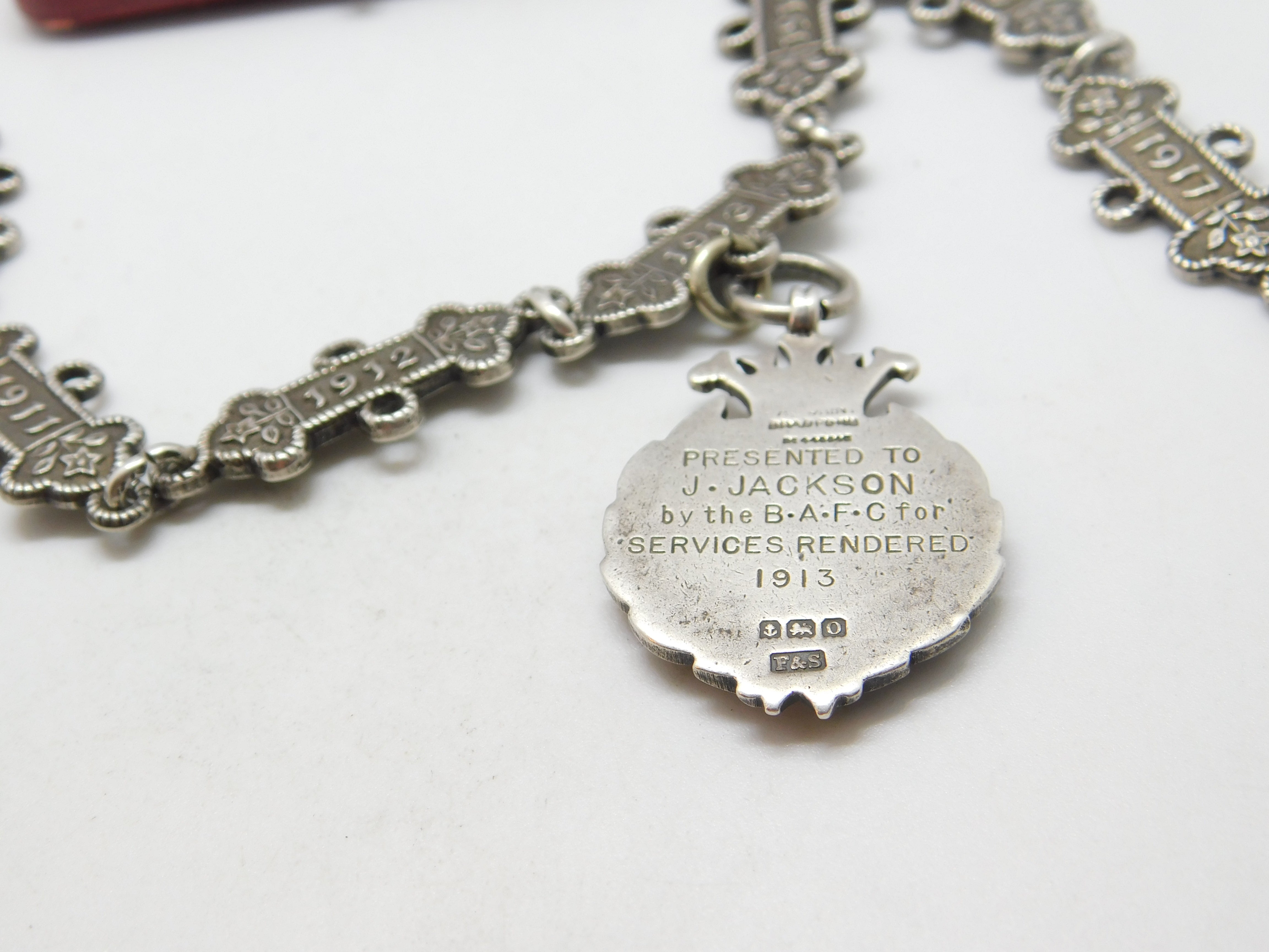Sterling Silver St. John's Ambulance 'Joseph Jackson' Watch Chain Antique 1909-1917 Fobs & Dates