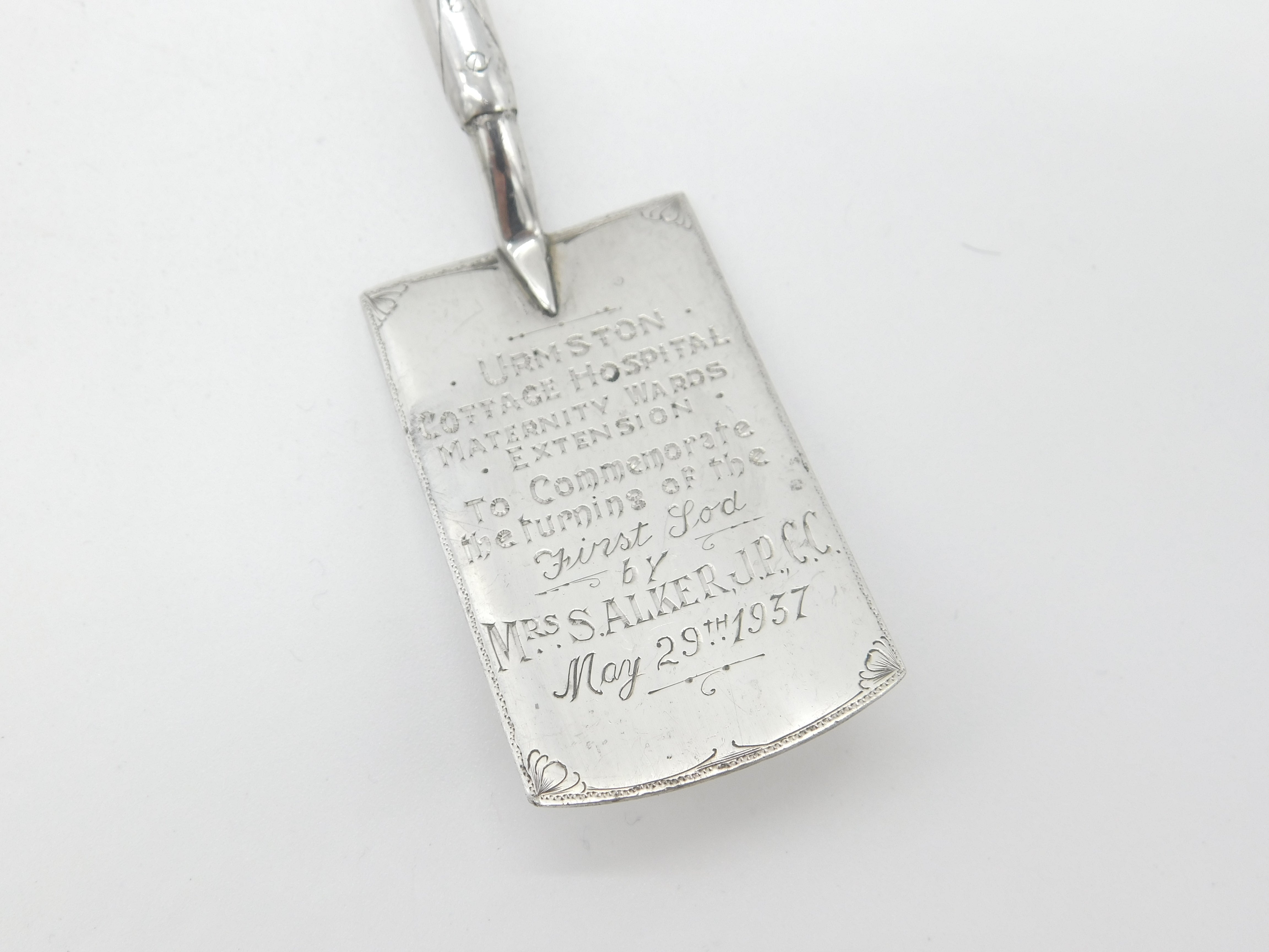 Sterling Silver Stone Laying Celebration Spade 'Urmston Hospital' 1937 Antique
