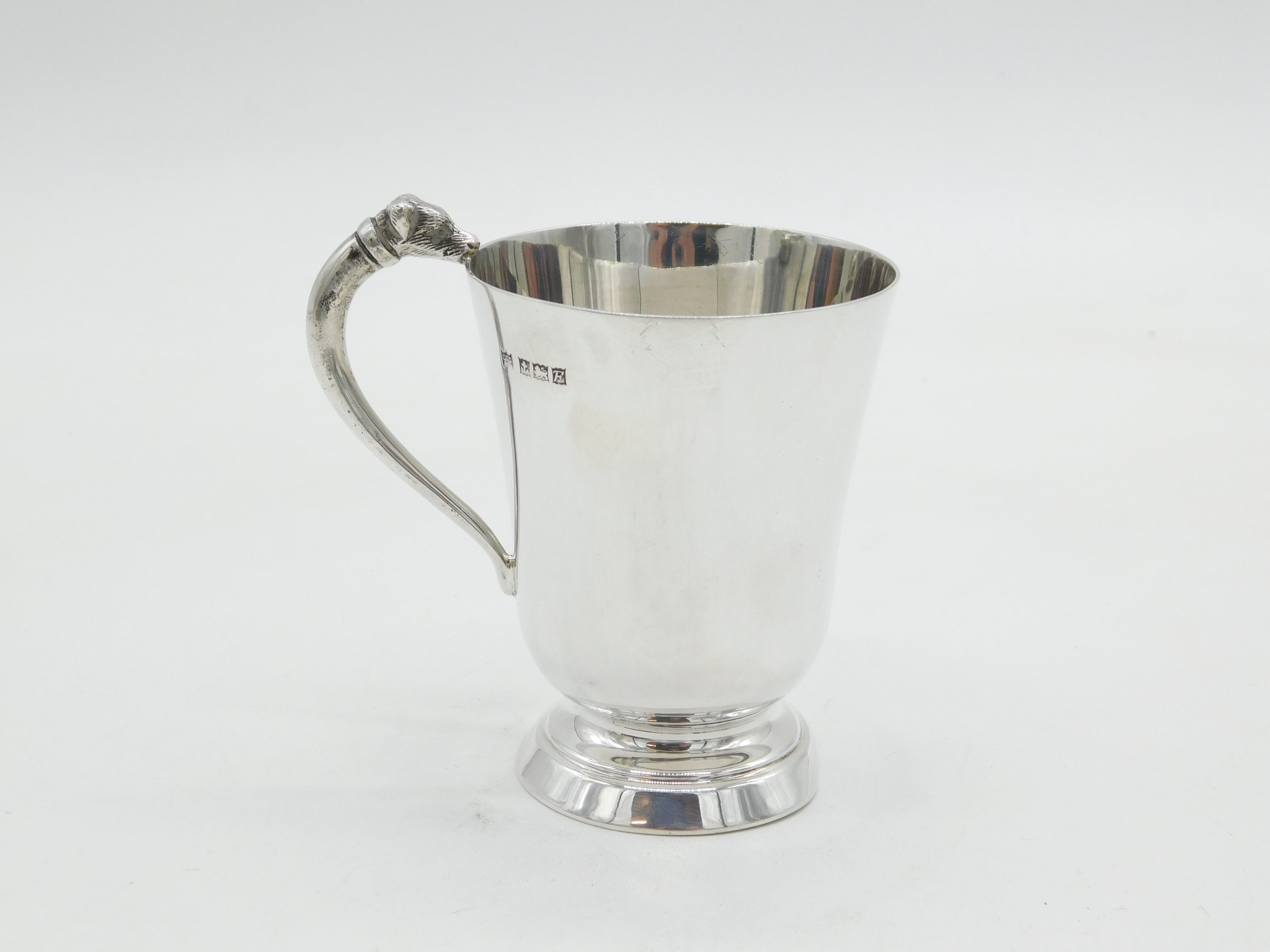 Details: A fantastic and wonderfully designed vintage sterling silver christening mug with lovely cast terrier dog handle hallmarked Birmingham 1966 by Charles S Green. This is a wonderful item that would make a perfect gift or addition to any collection.