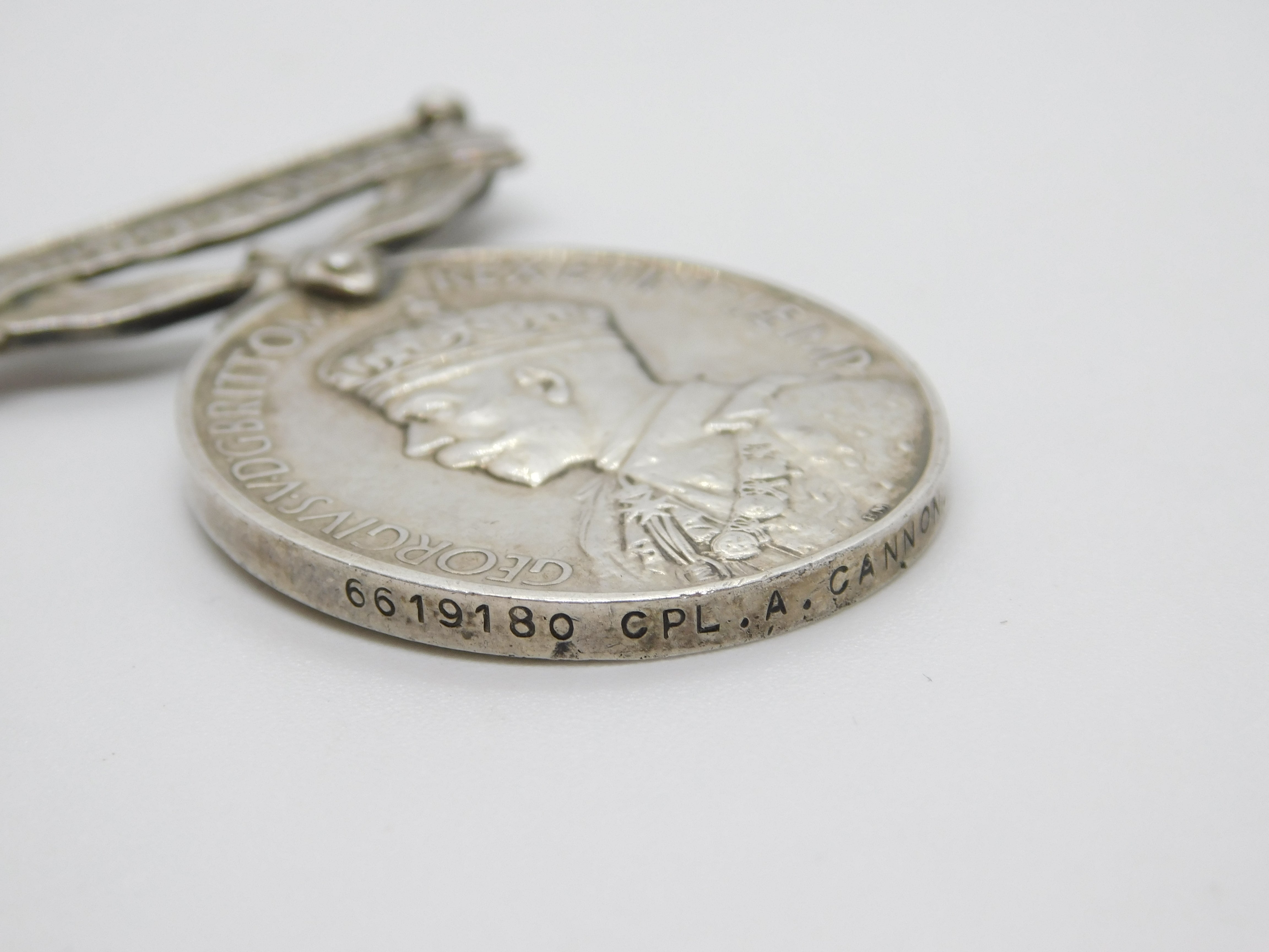 Sterling Silver Territorial Army Efficient Service Medal 'CPL A Cannon' c1930 Antique