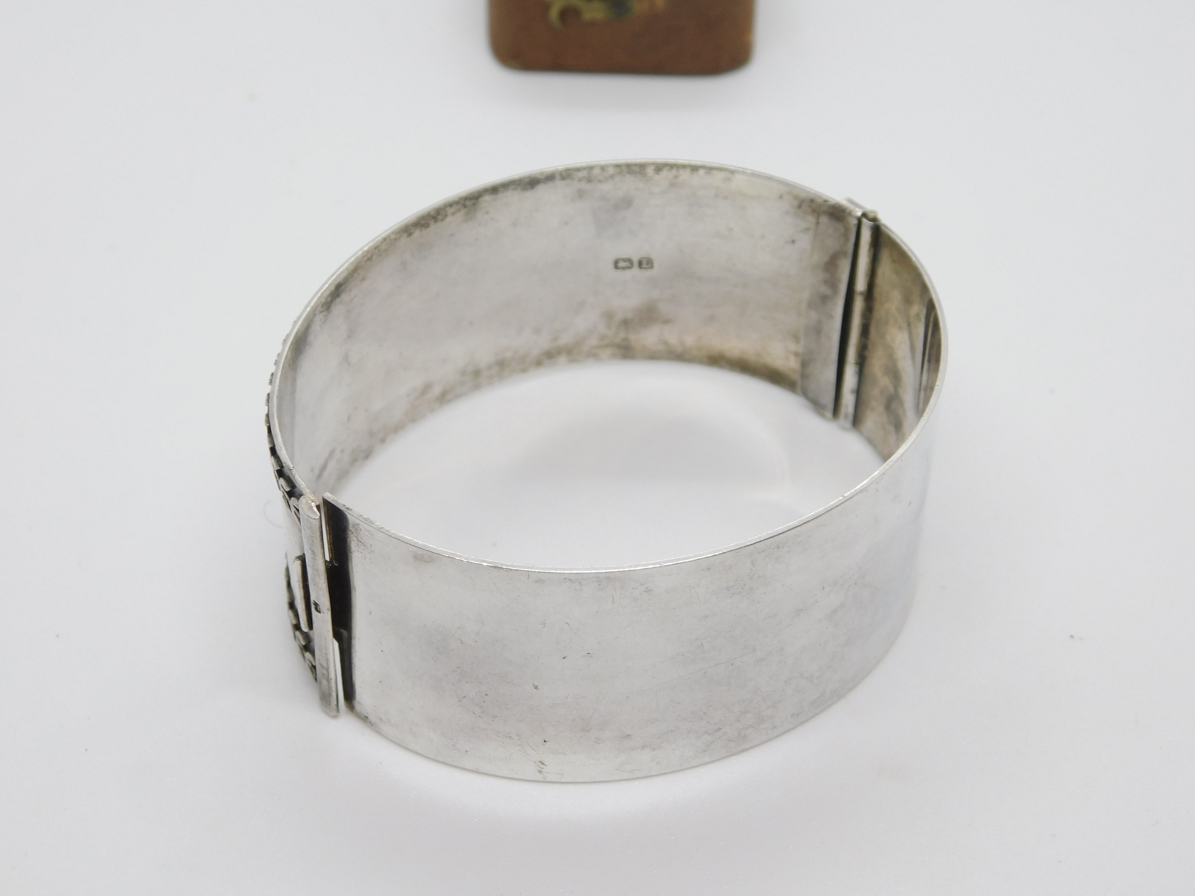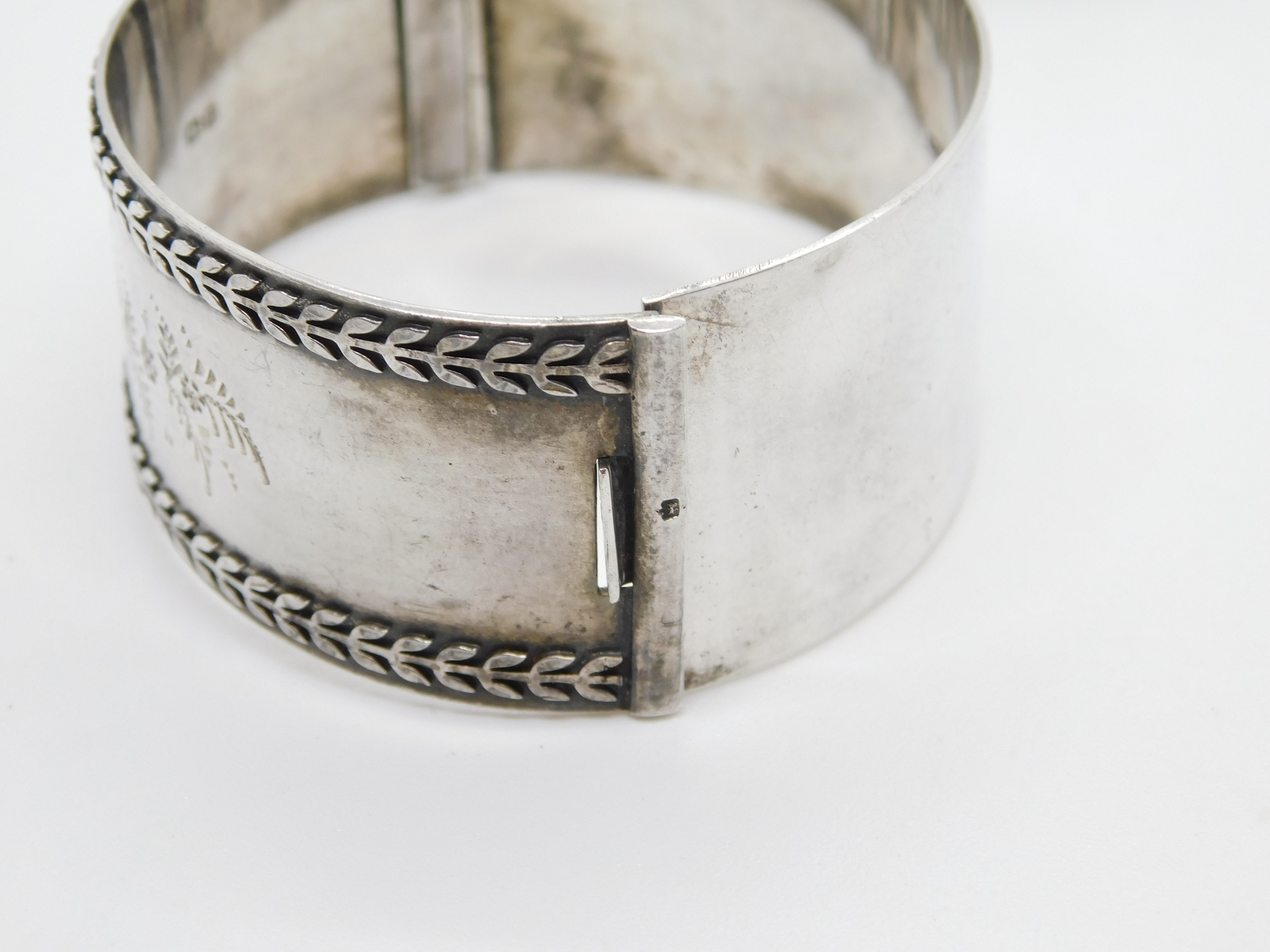 Sterling Silver Thistle & Floral Pattern Cuff Bangle Bracelet Antique 1935 Deco