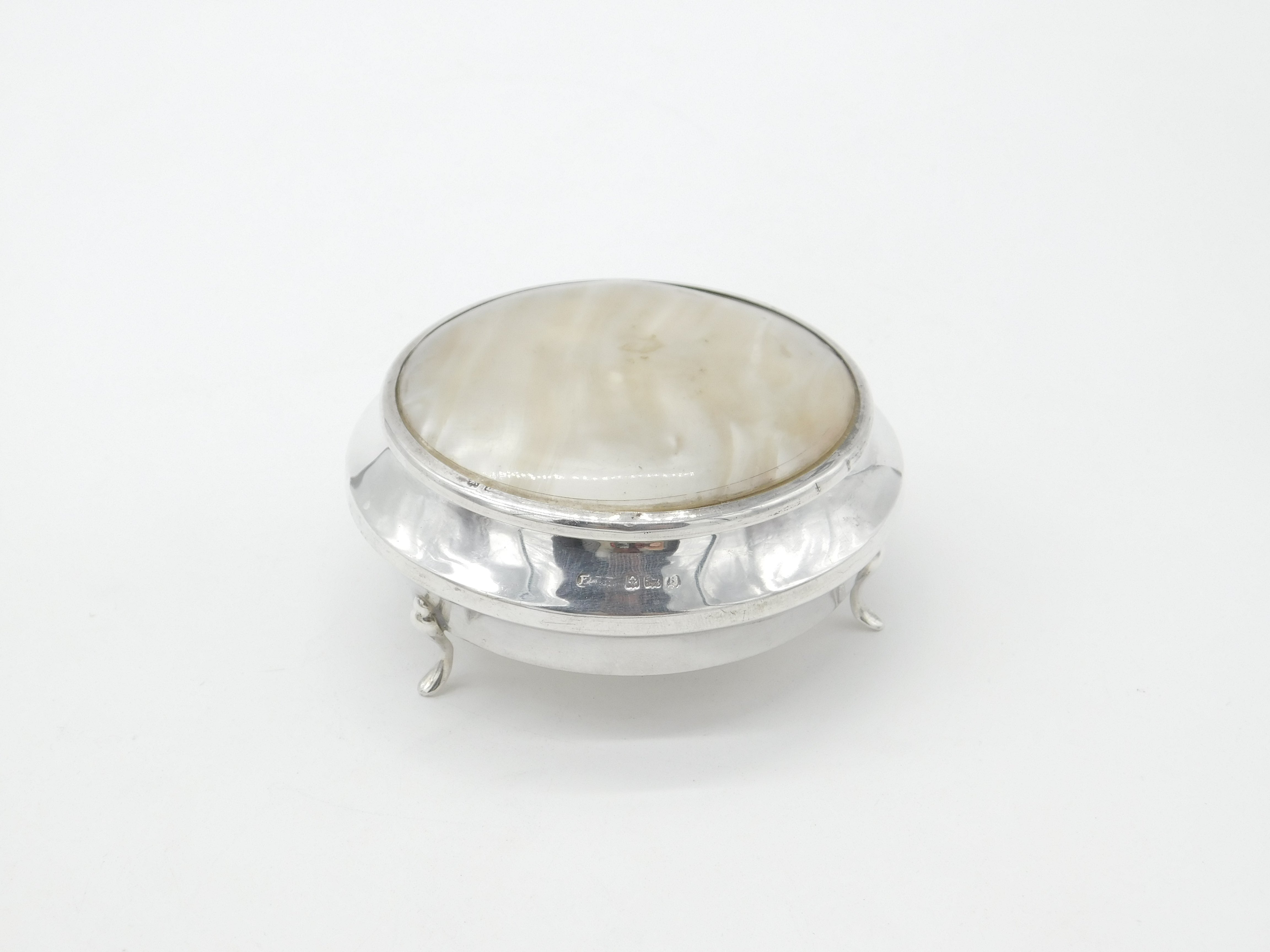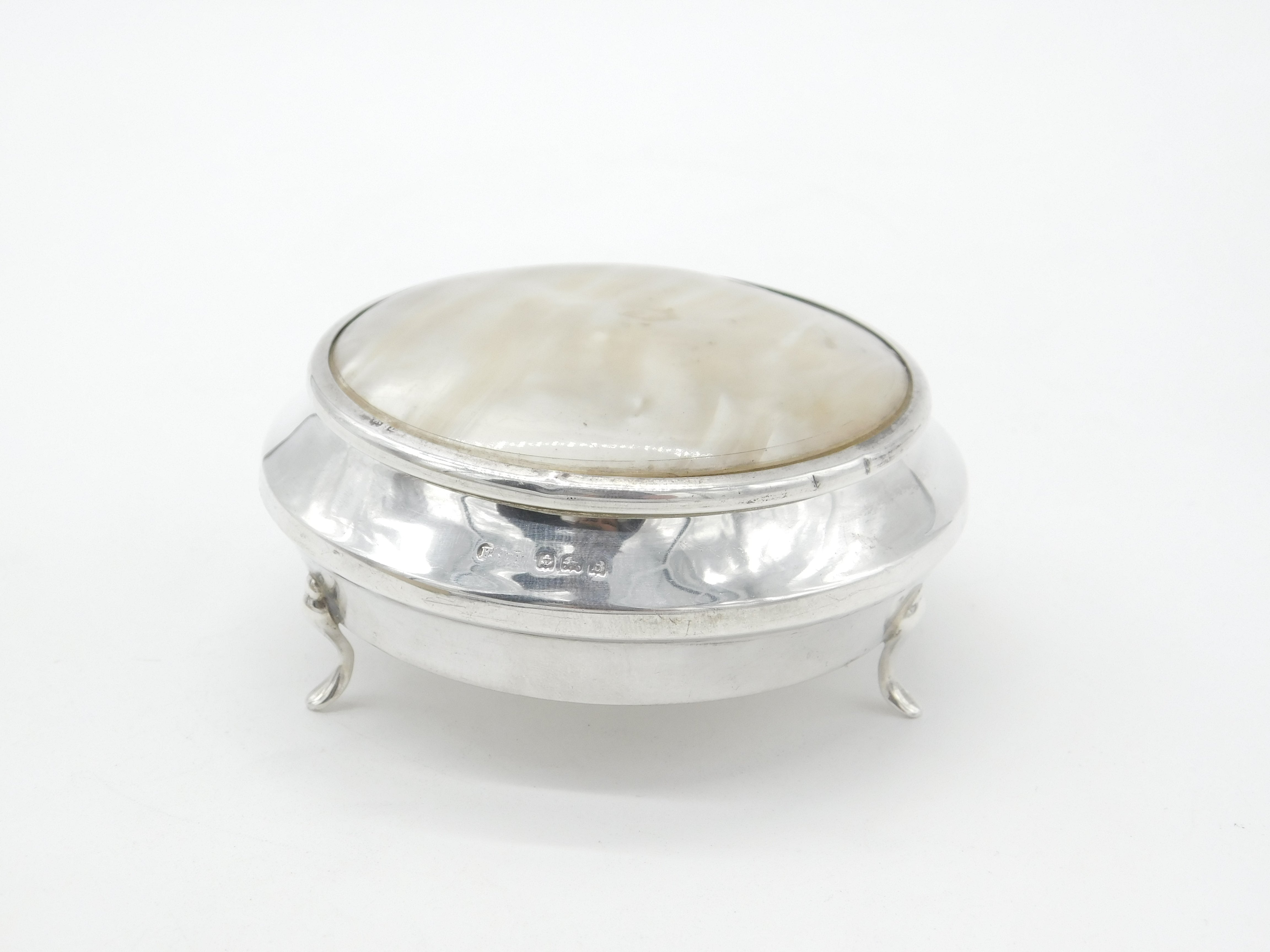 Sterling Silver Trinket Jewellery Box with Mother of Pearl Lid 1926 Birmingham