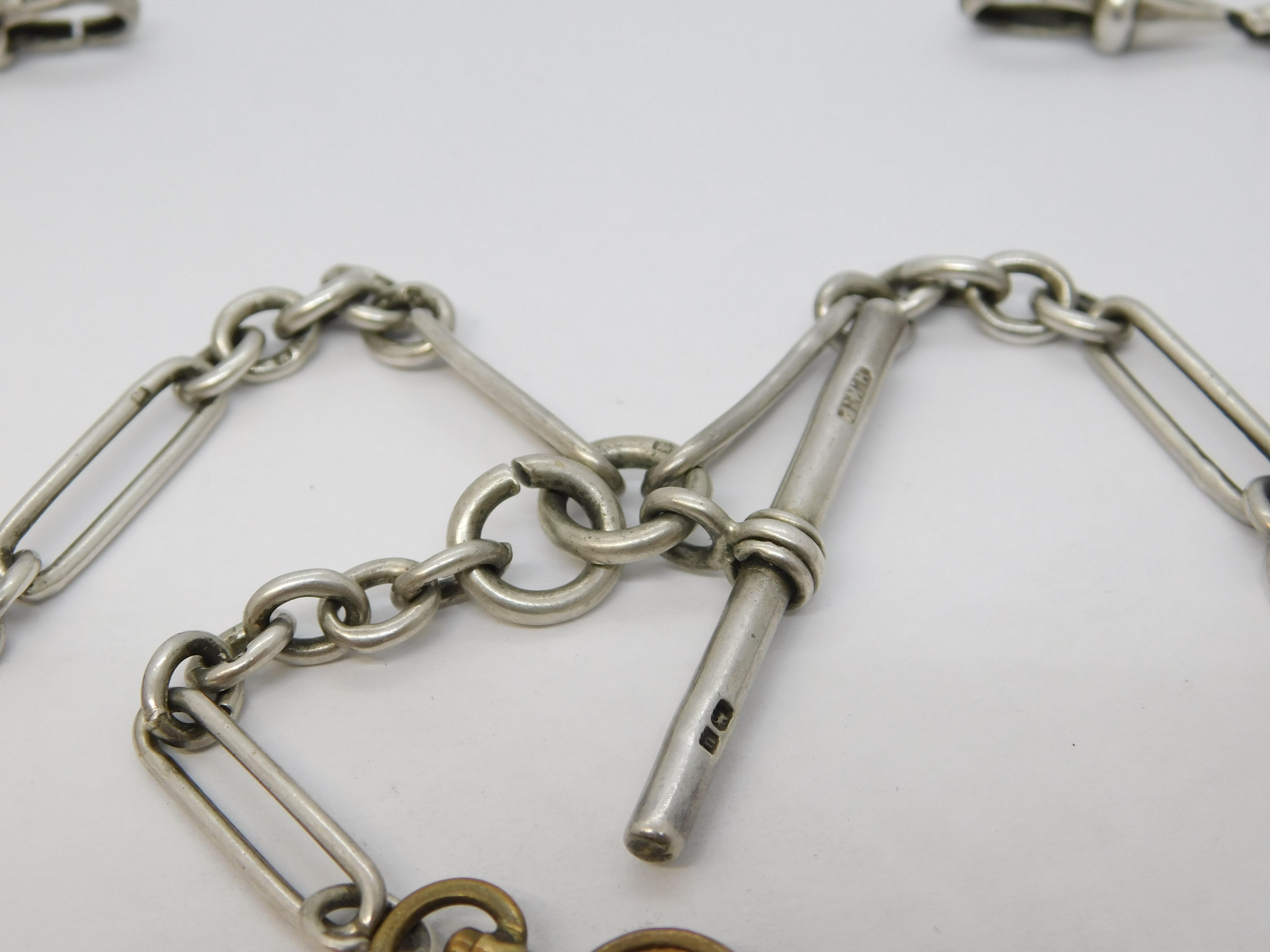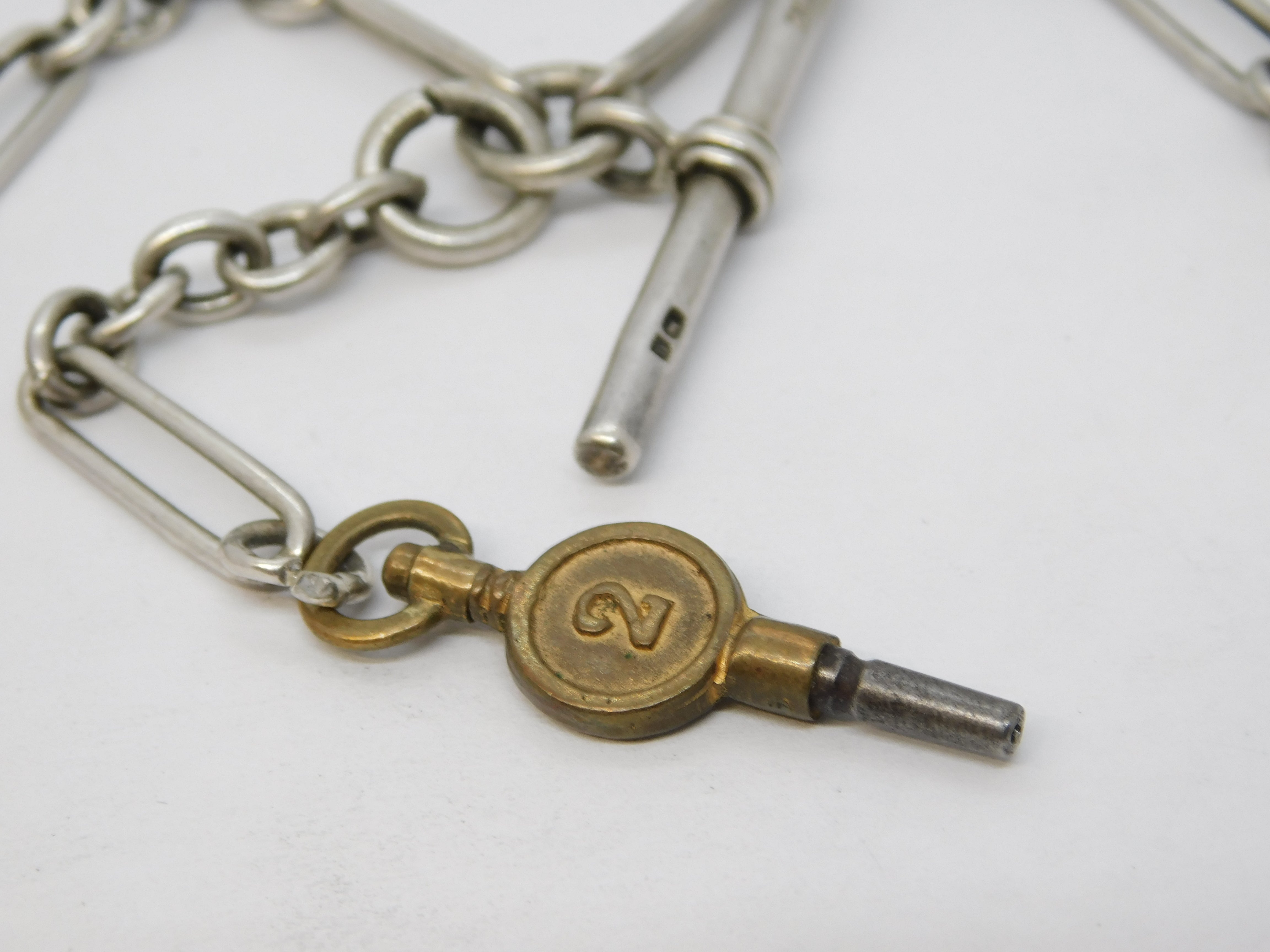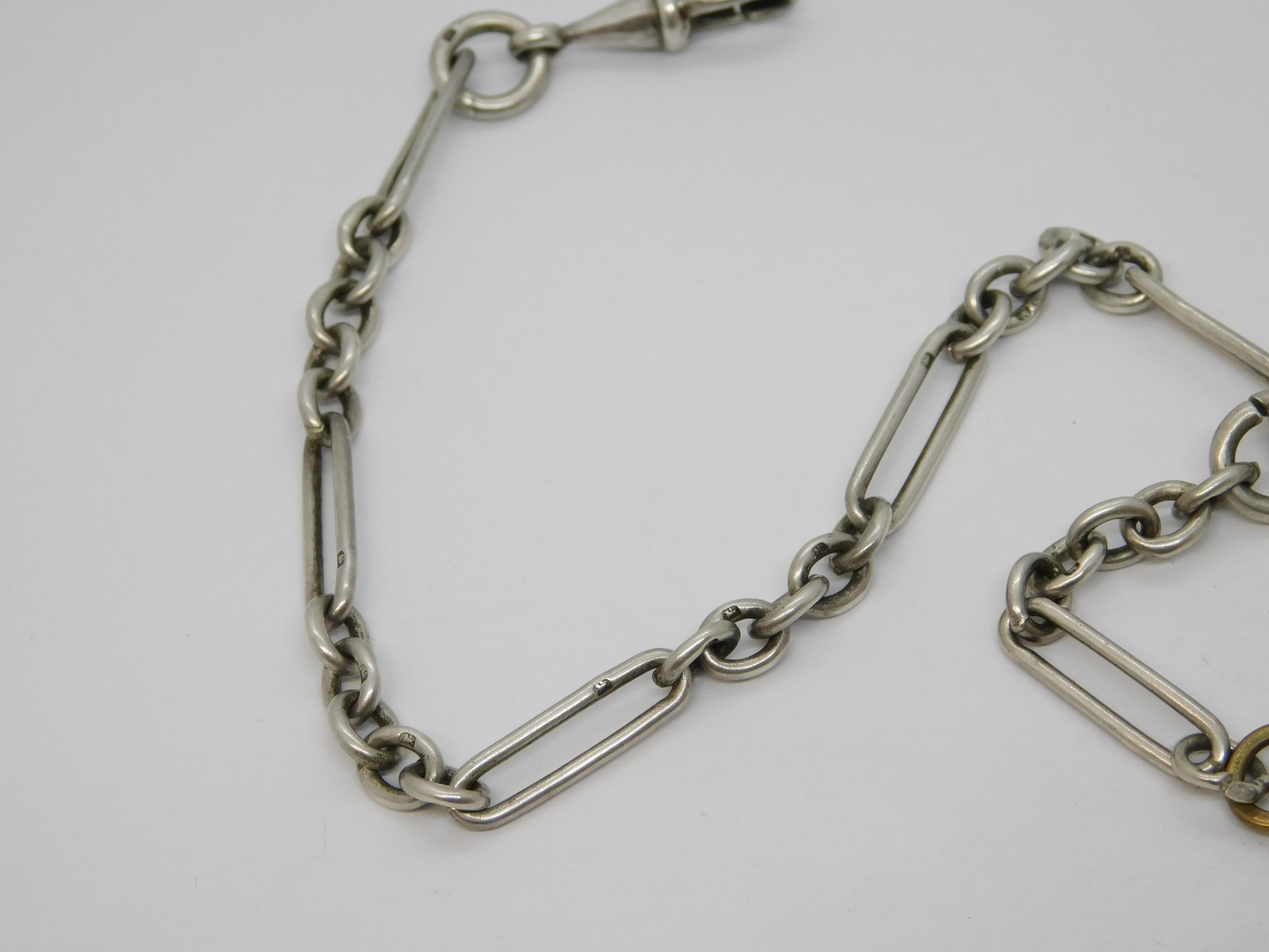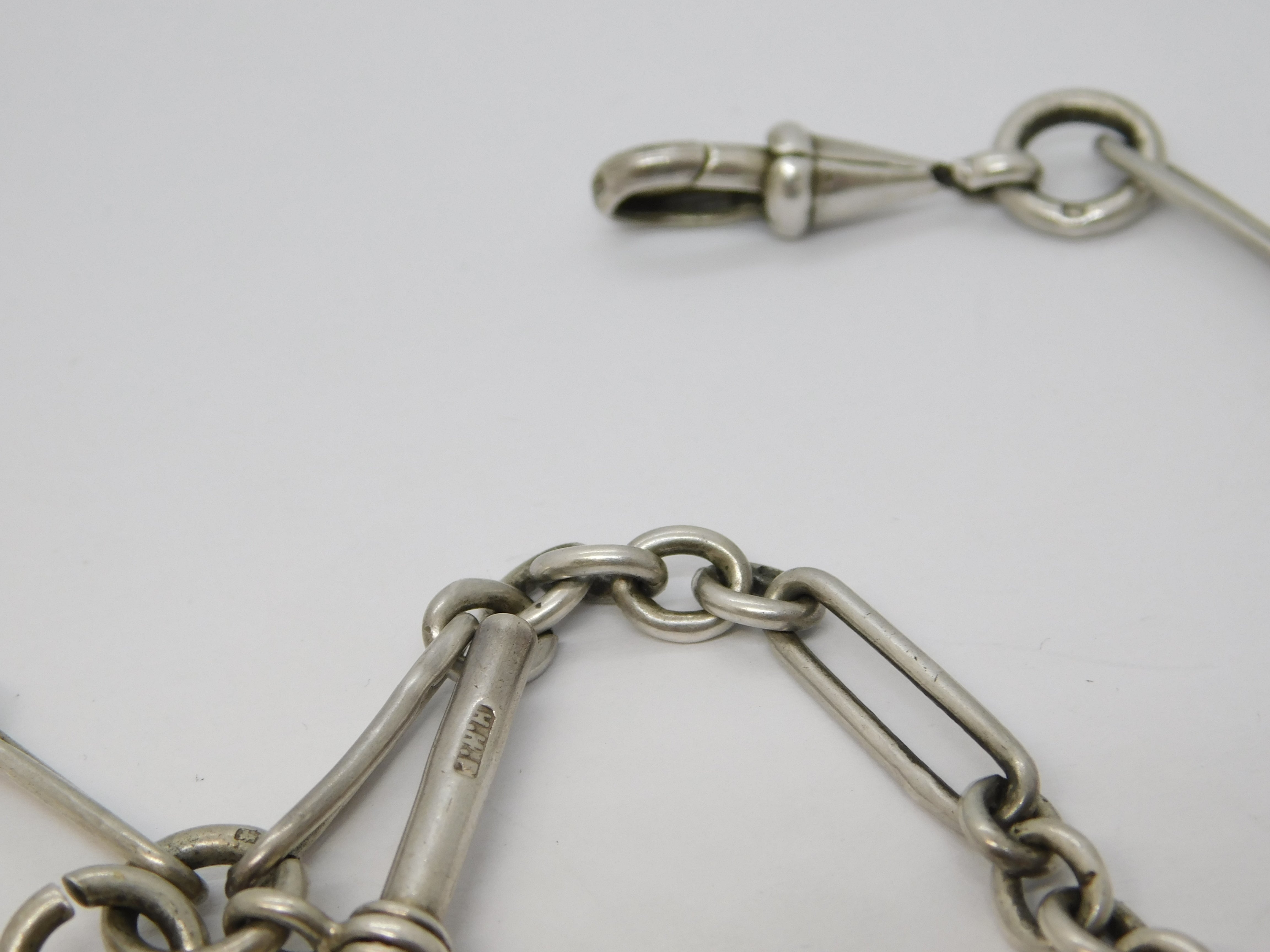 Sterling Silver Trombone Link Double Albert Watch Chain Antique 1919 Birmingham