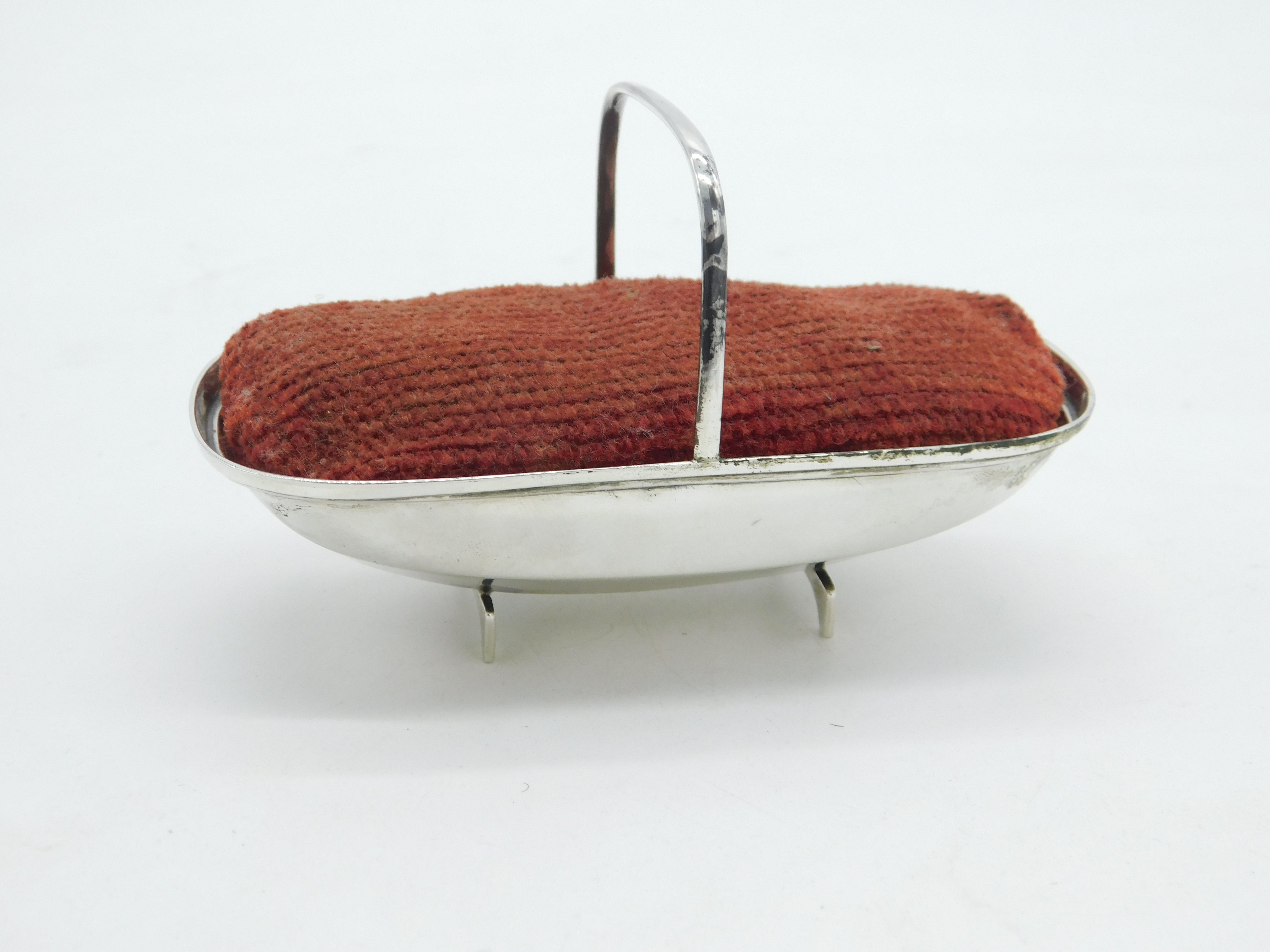 Sterling Silver Trug Basket Novelty Sewing Pin Cushion Antique 1911 Sheffield