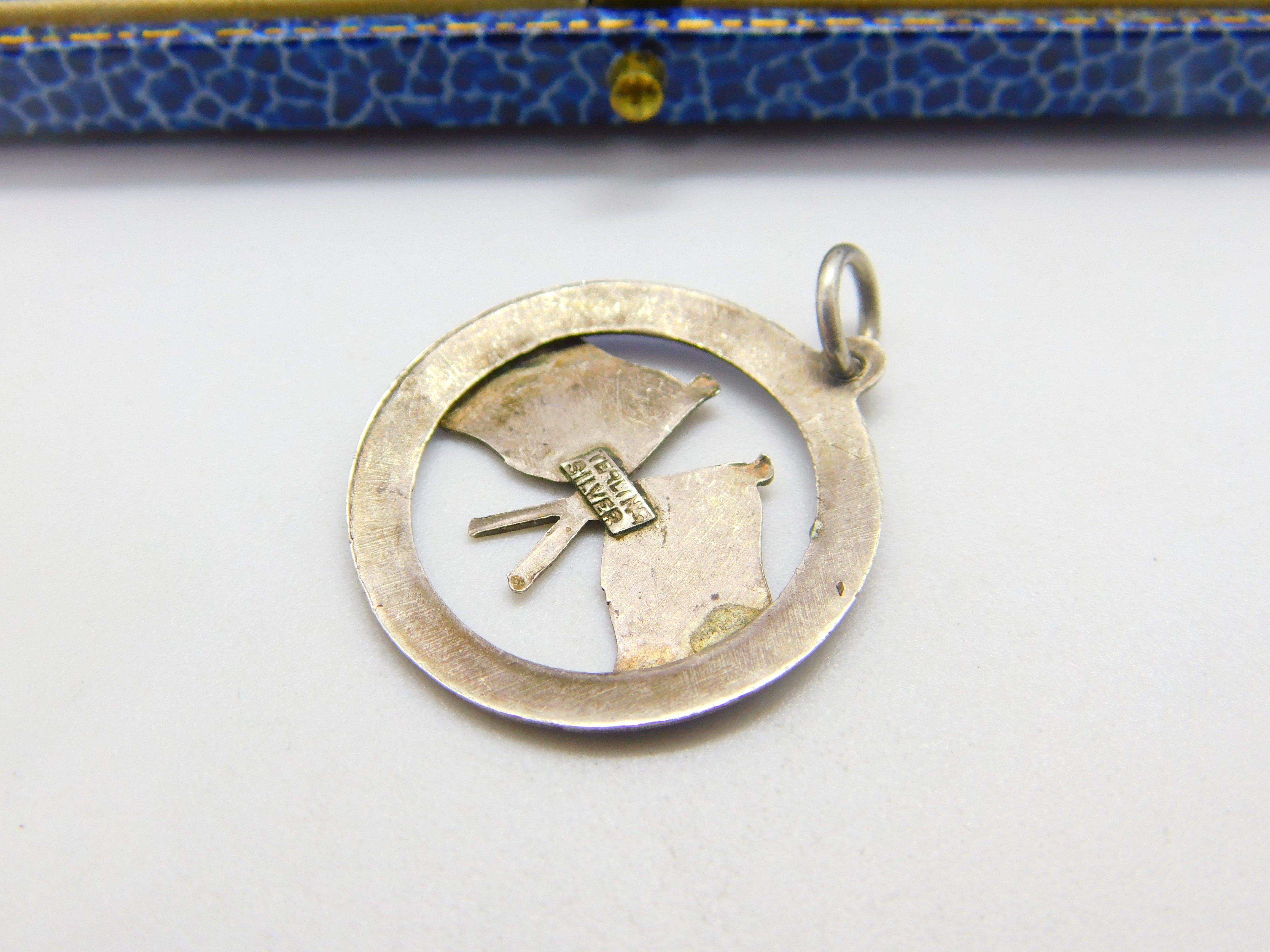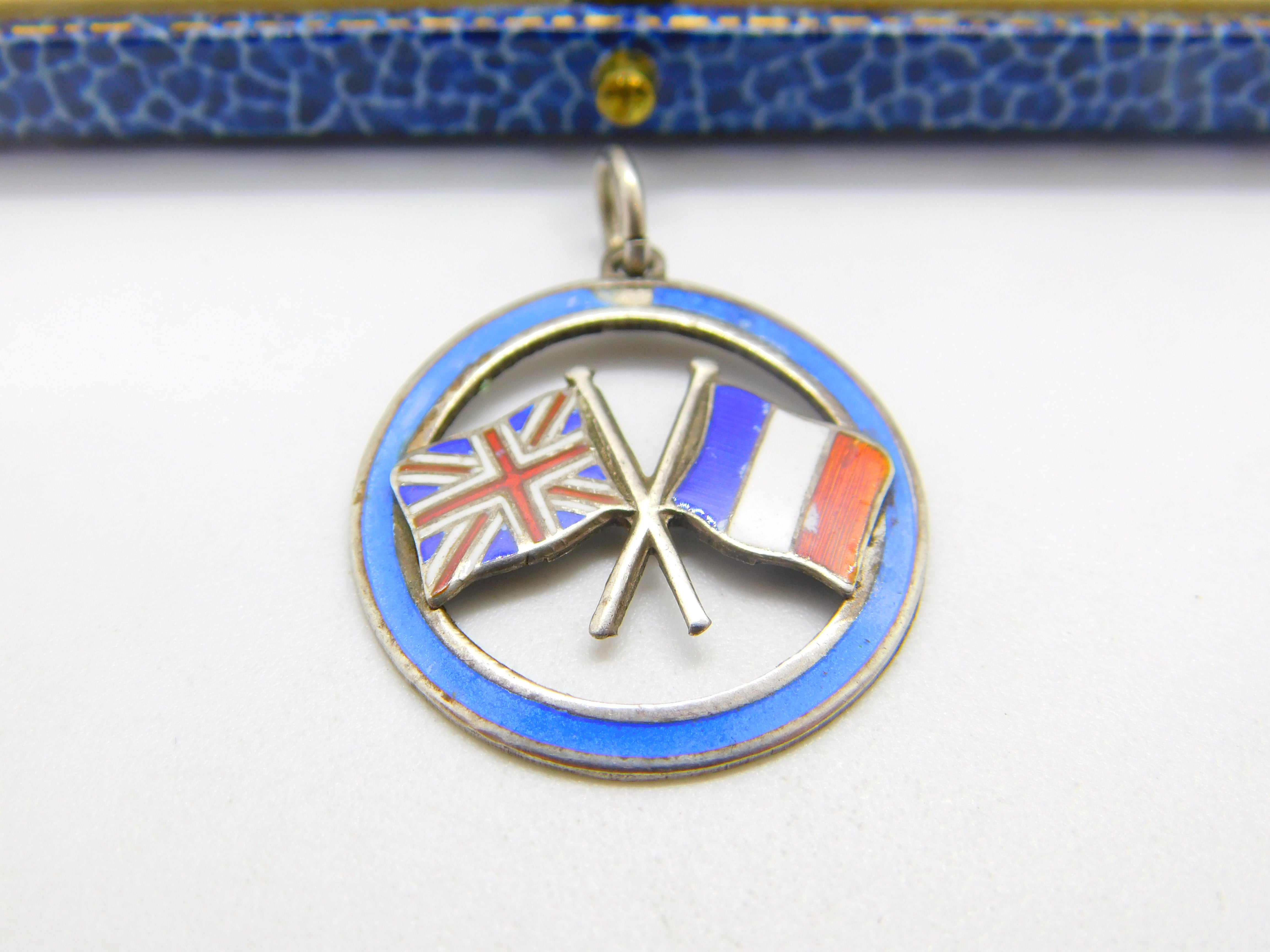 Sterling Silver WWI UK & France Colourful Enamel Pendant or Fob Antique c1918