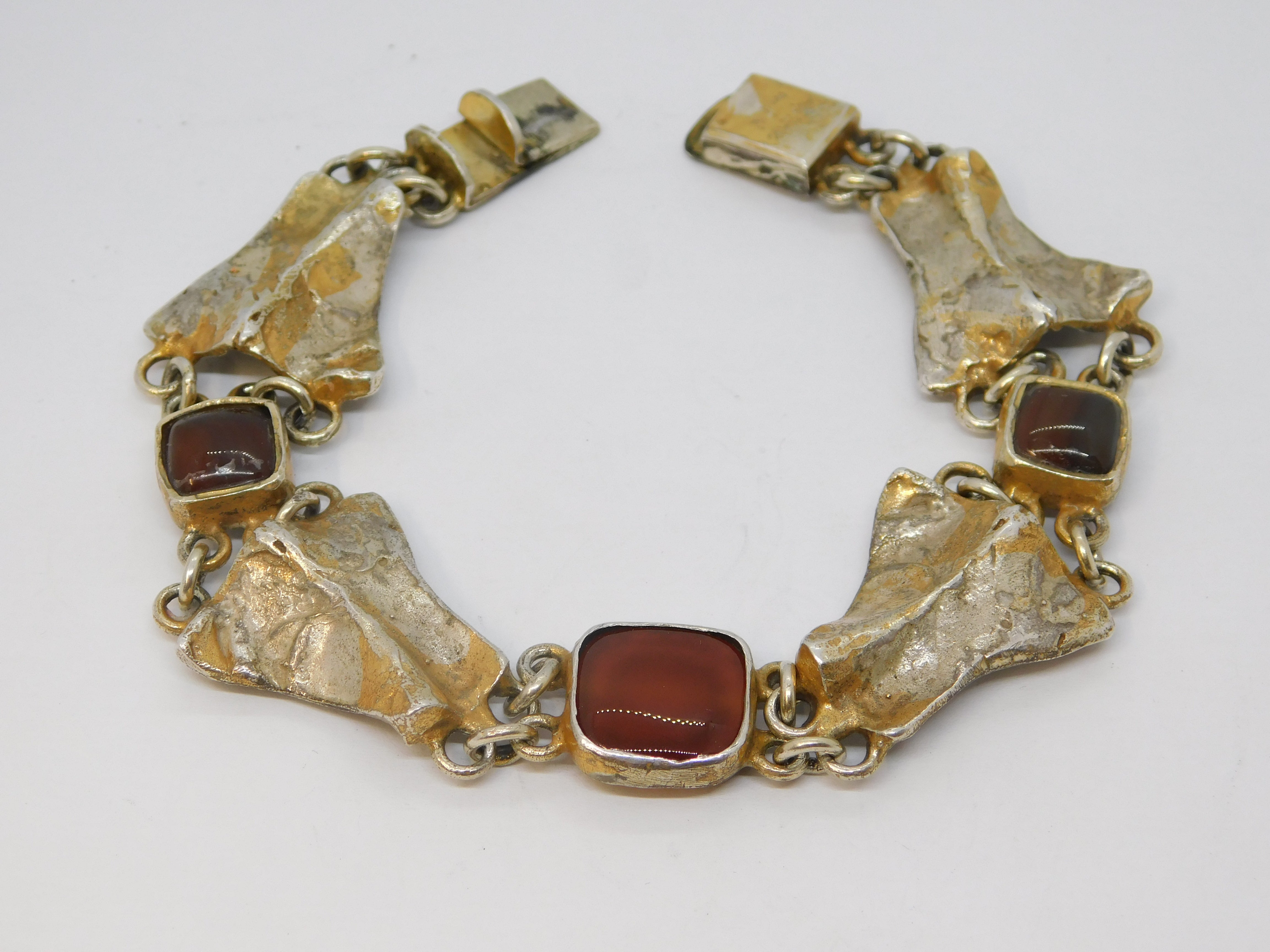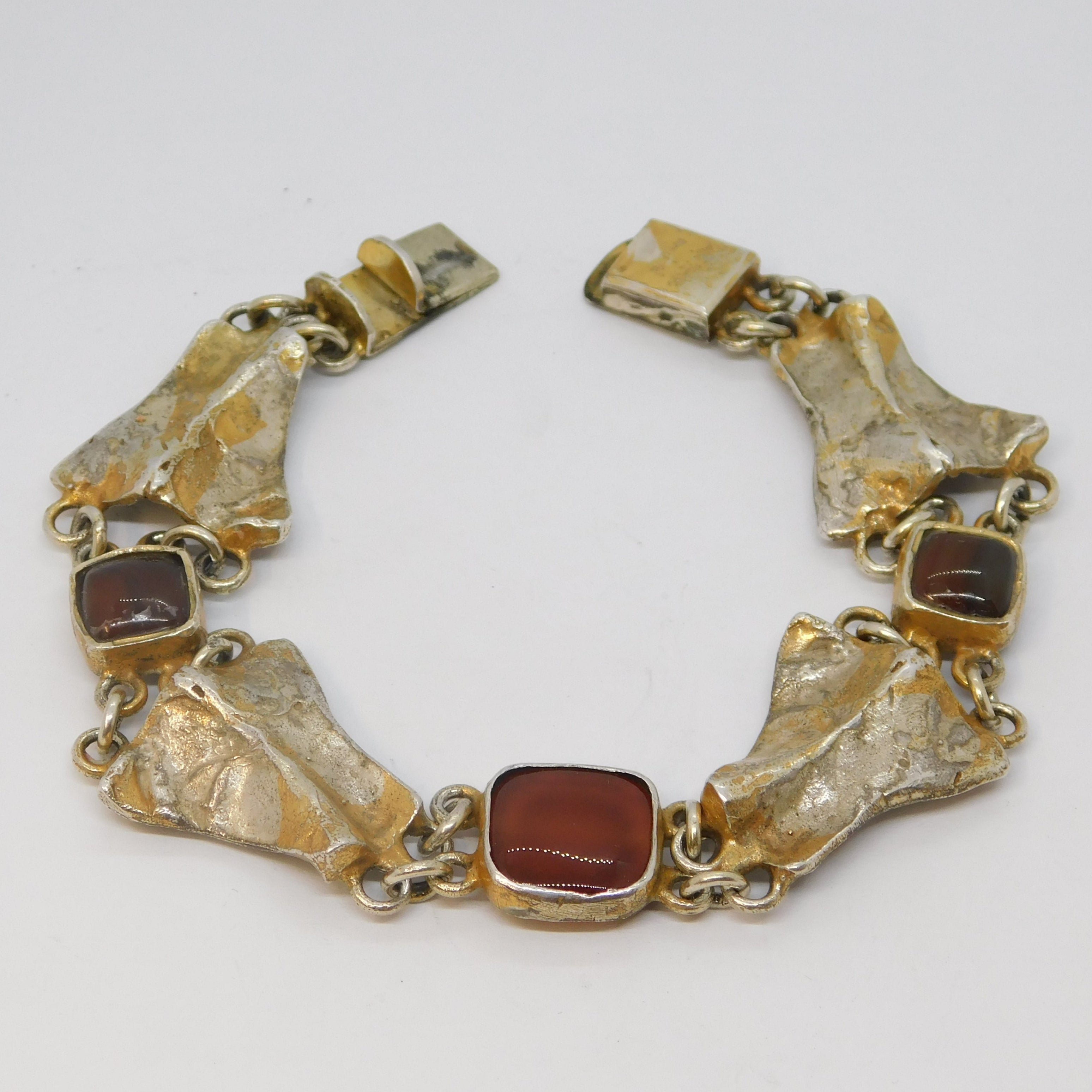 Details: A fantastic and wonderfully designed vintage large sterling silver studio jewellery panel bracelet with red agate panels c1990, the silver has been XRF tested as it is unmarked. This is a wonderful item that would make a perfect gift or addition to any collection. The BOX pictured is for PRESENTATION ONLY and is NOT included in the listings but used to frame the pictures unless specifically stated otherwise.