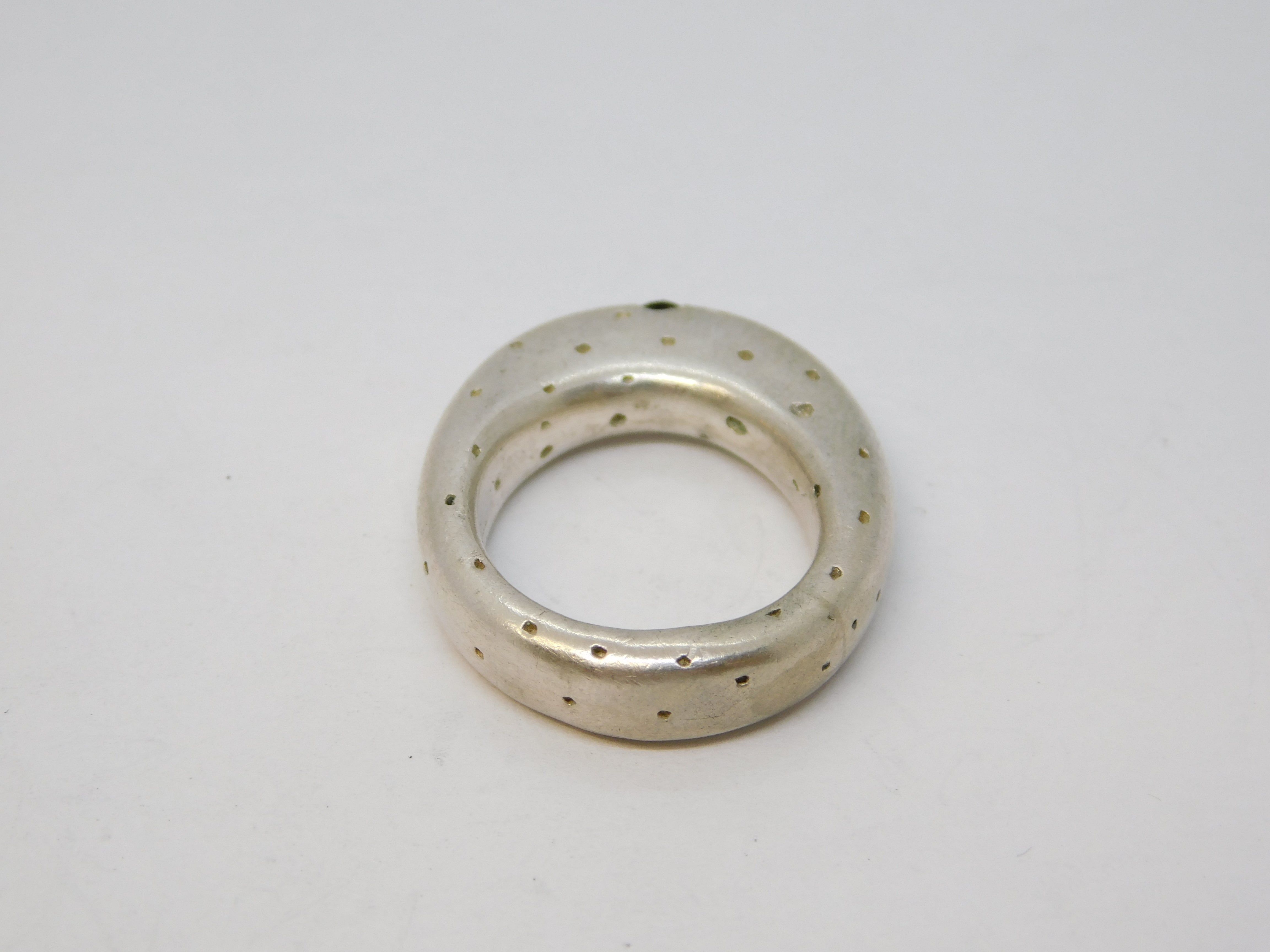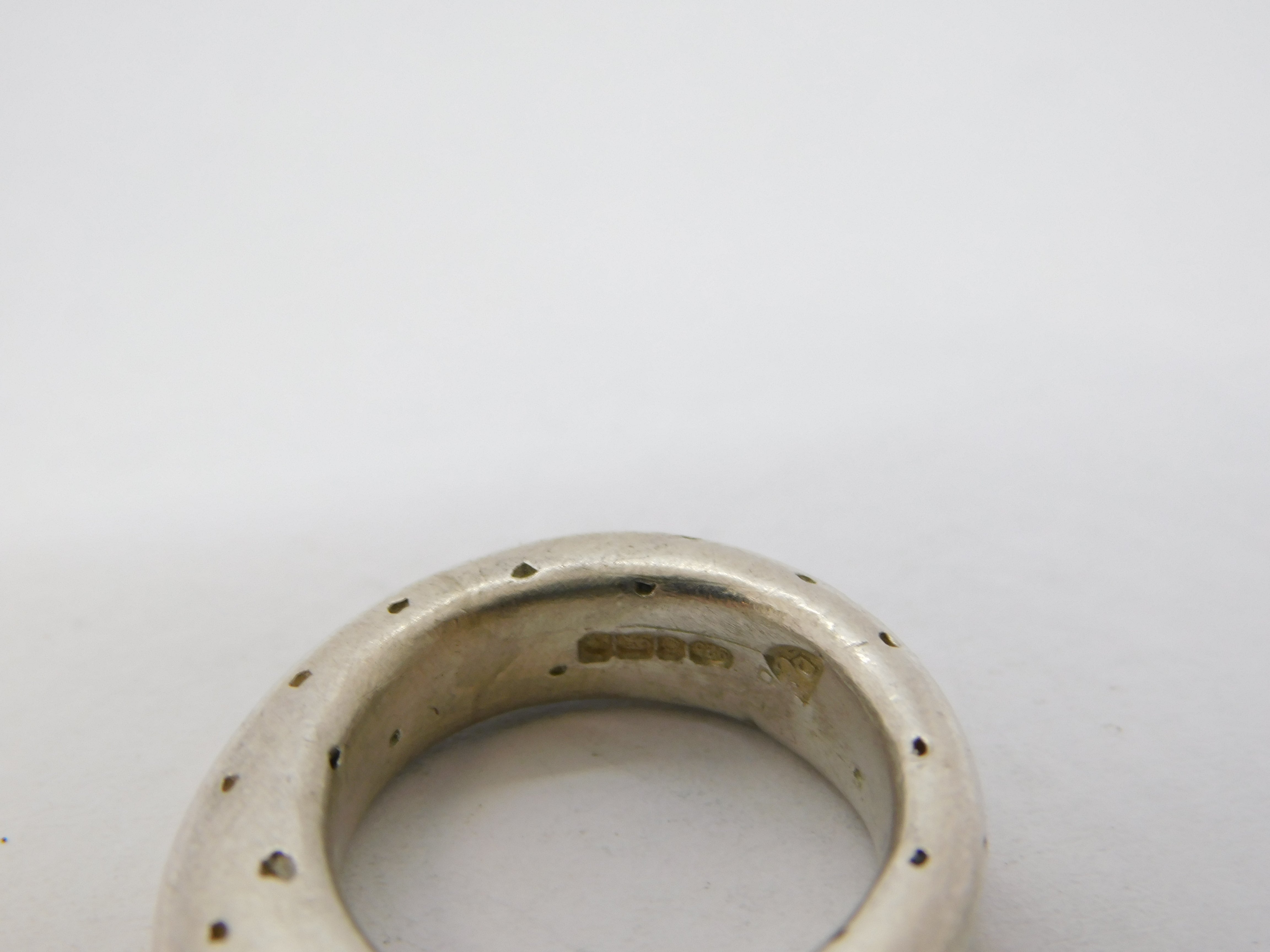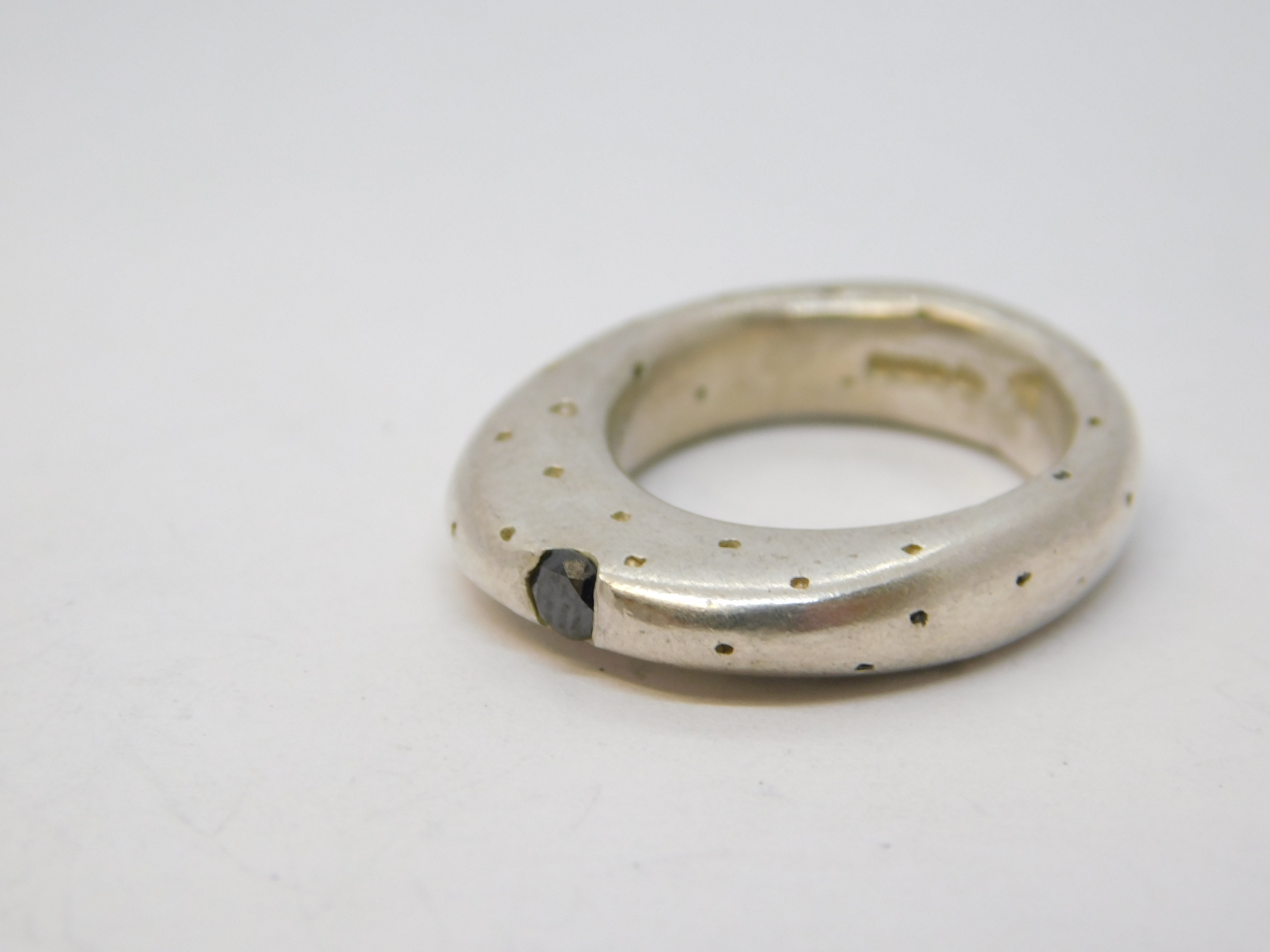 Details: A fantastic and wonderfully designed vintage studio jewellery sterling silver dimpled statement ring set with a central black diamond hallmarked Sheffield 2006 to the interior, the stone has been tested. This is a wonderful item that would make a perfect gift or addition to any collection.