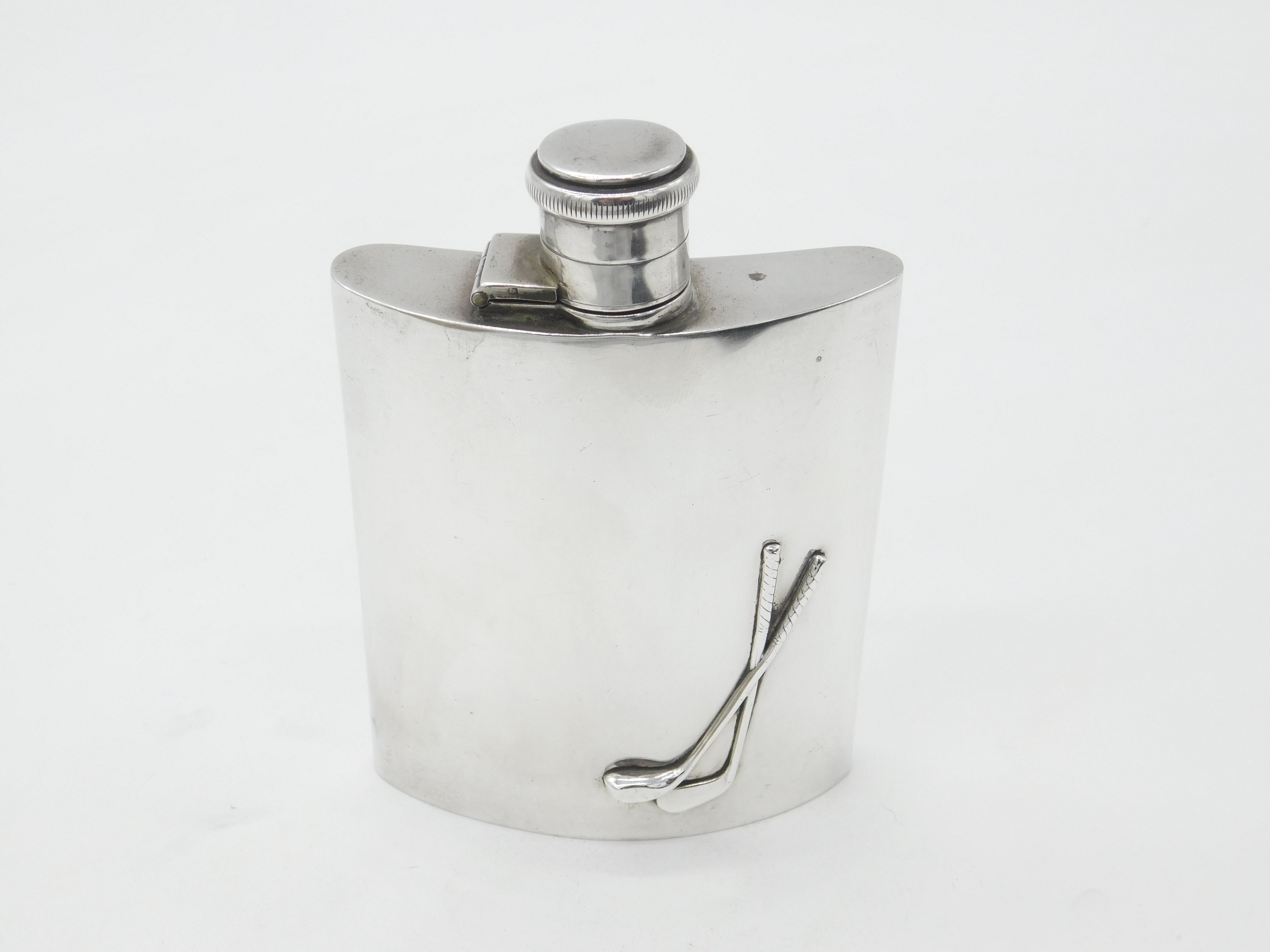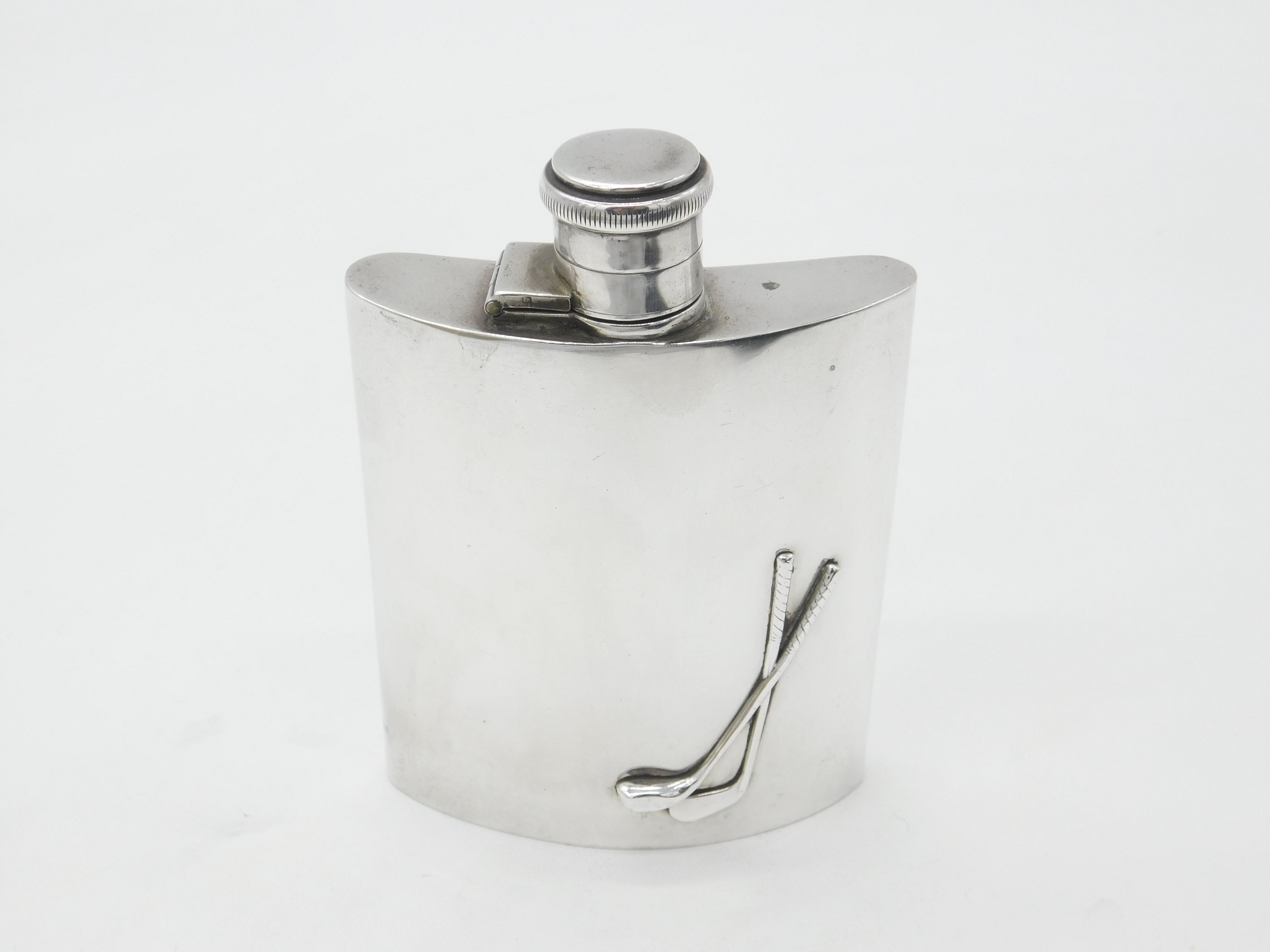 Swaine Sterling Silver Golf Club Hip Flask 1921 Birmingham Antique Art Deco