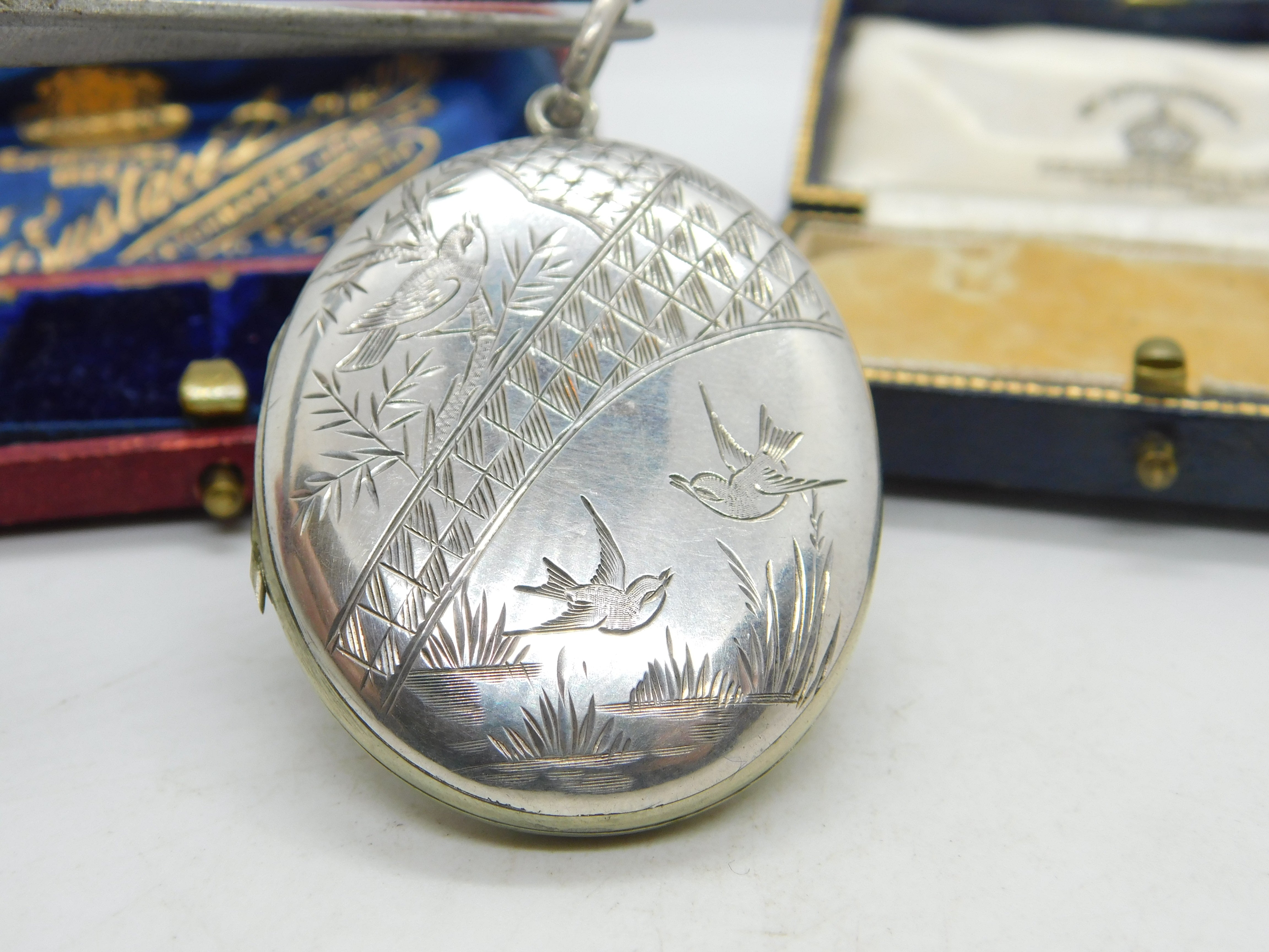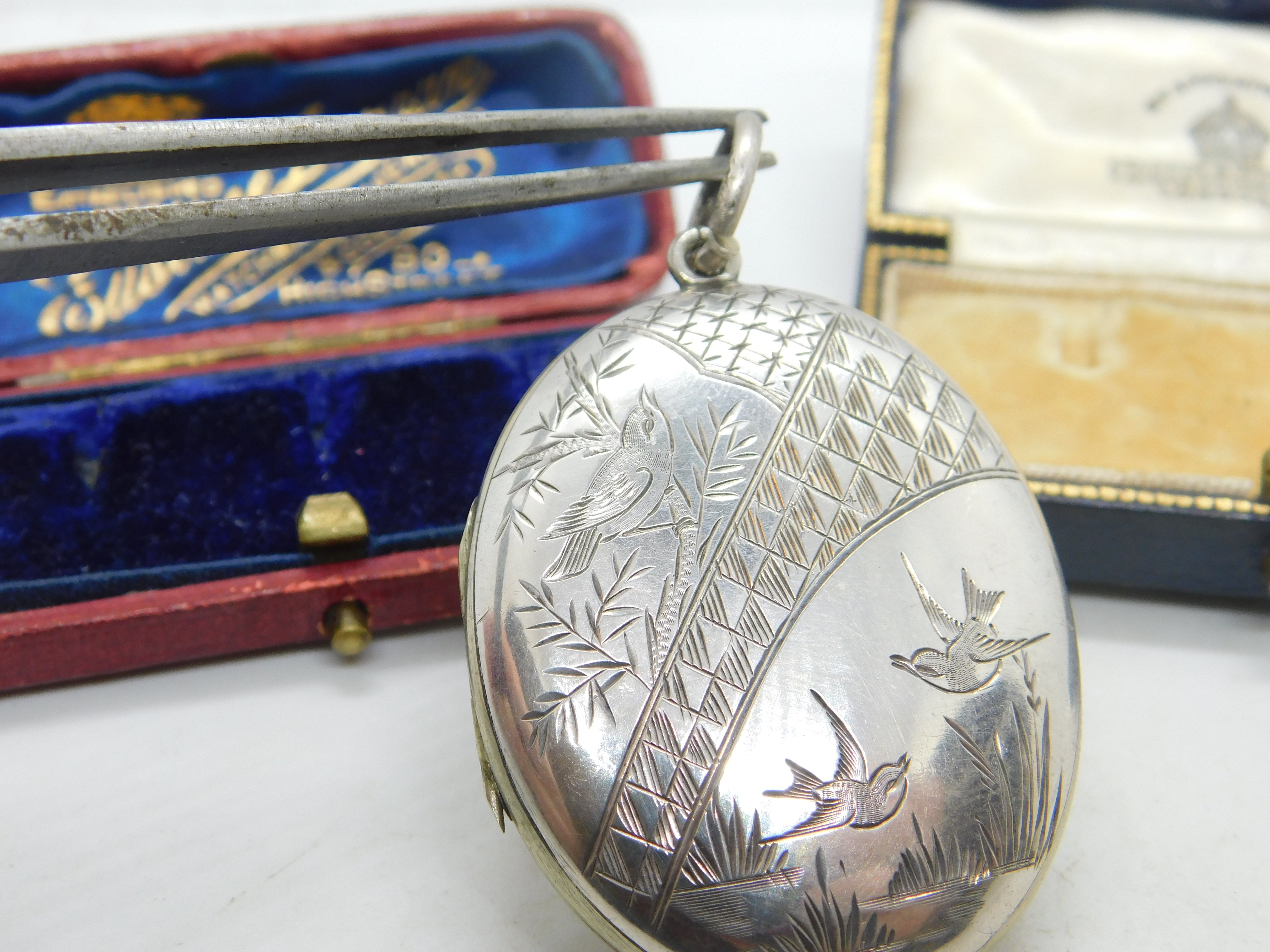 Swallow Birds Aesthetic Sterling Silver Double Locket Pendant Antique Victorian c1880