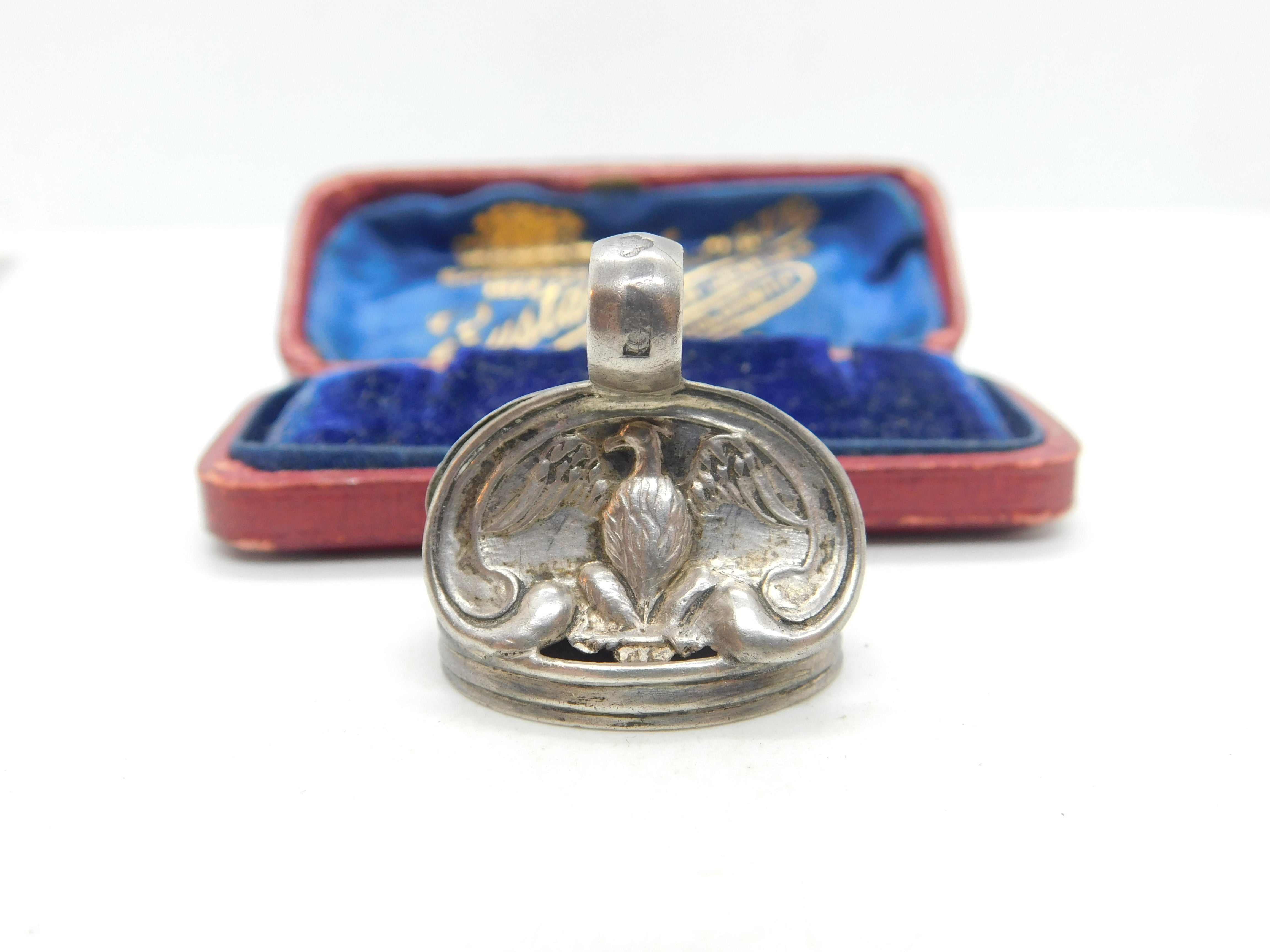 Swedish Georgian Sterling Silver Eagle Form Initial Seal Fob Antique c1820